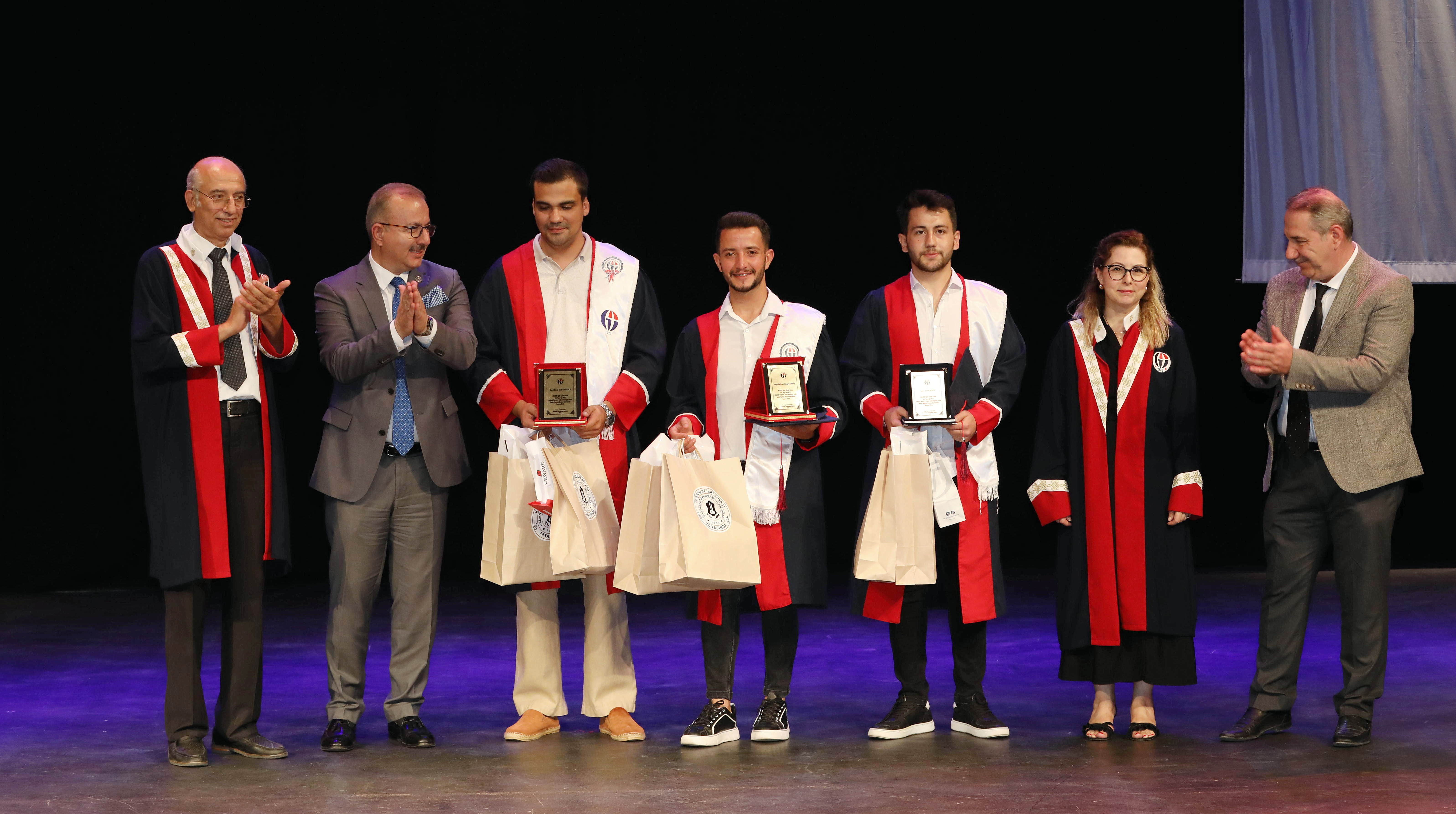 Açılış konuşmaları sonrasında dereceye giren ve mezun olan öğrencilere sektör temsilcilerinin hediye takdimi ve mezuniyet belgelerinin verilmesinin ardından öğrencilerin kep atmasıyla son buldu.