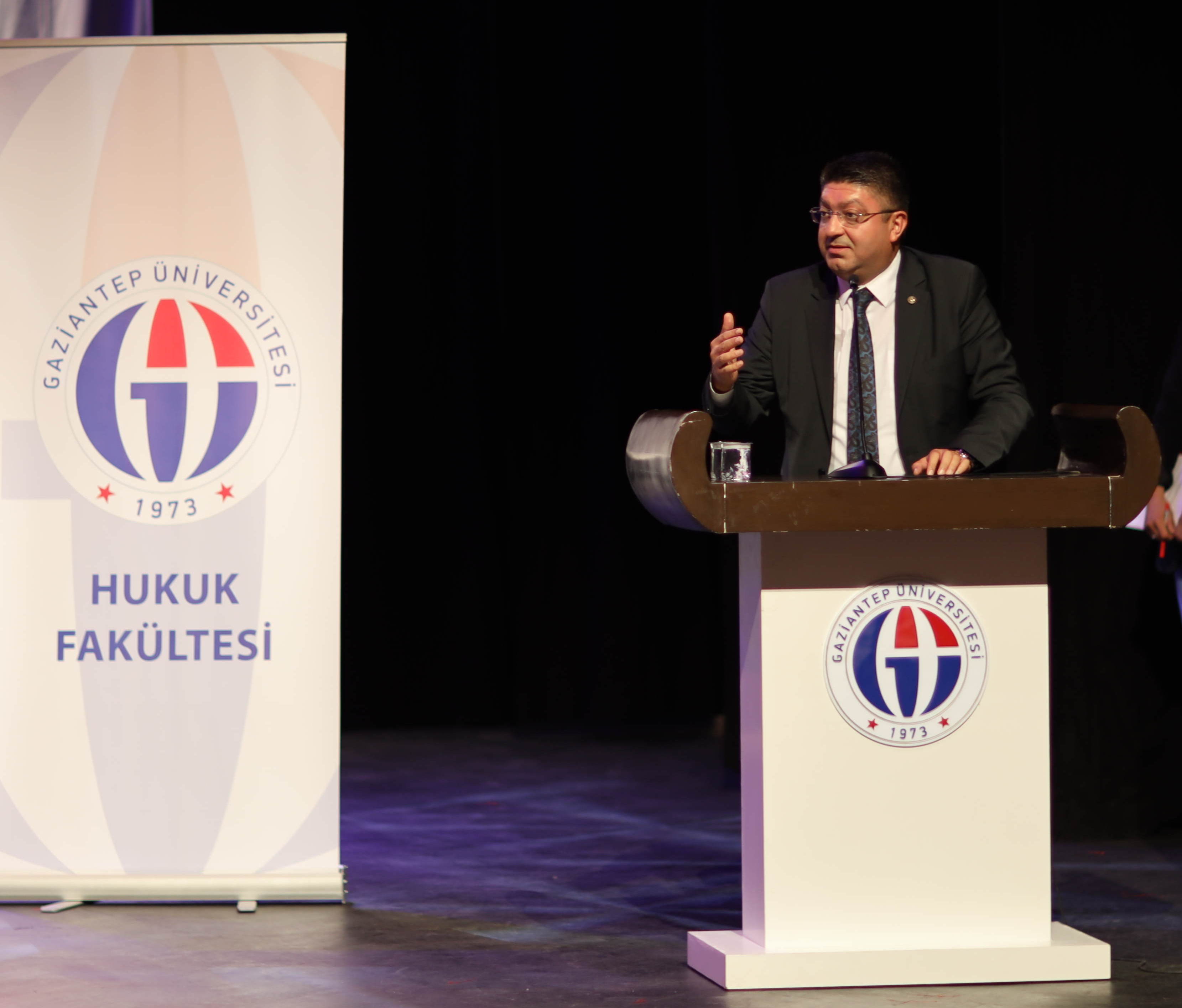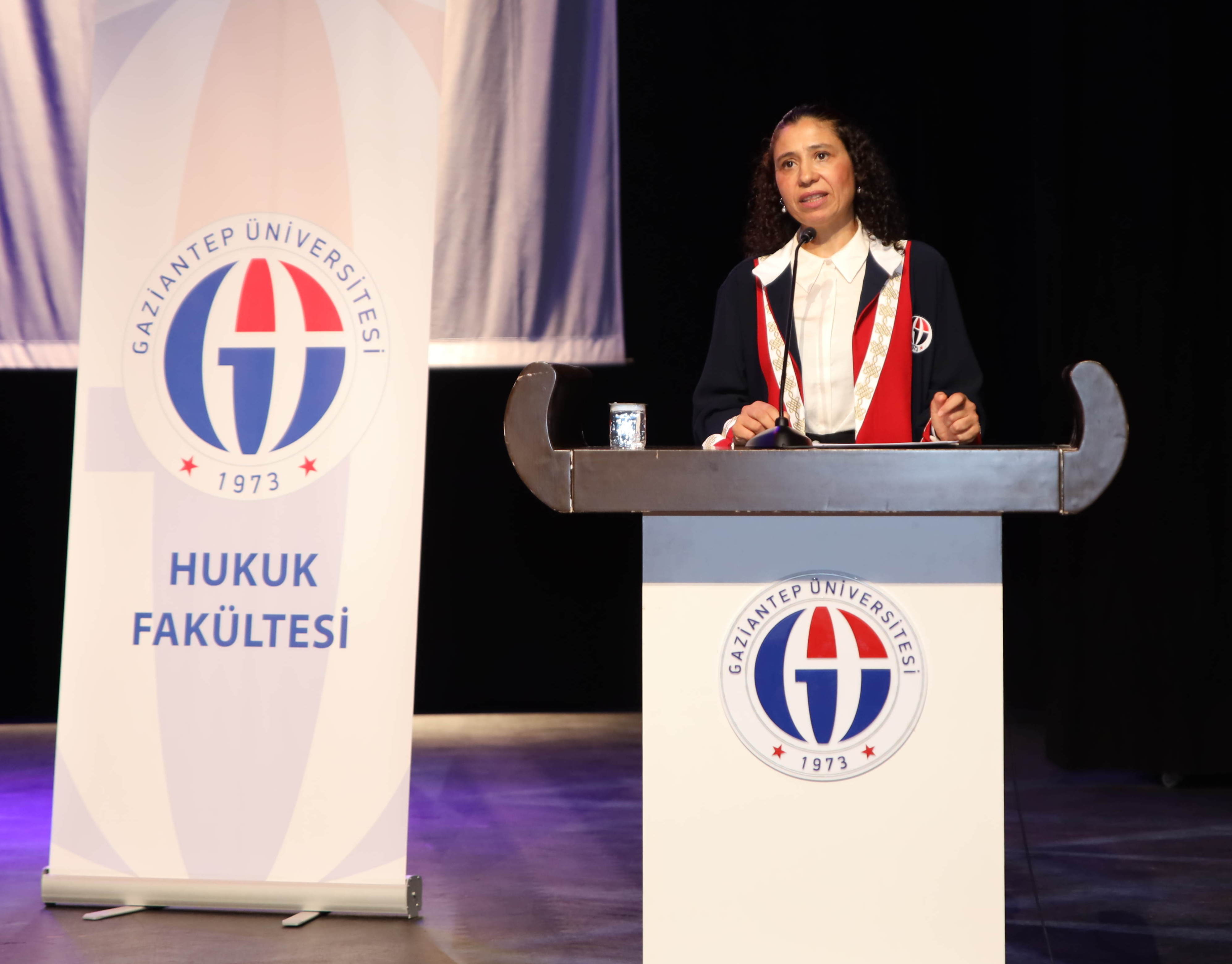 GAÜN Rektör Yardımcısı Prof. Dr. Mustafa Sarıbıyık, Gaziantep Üniversitesinin Türkiye’de sayılı üniversiteler arasında, marka üniversiteler arasına girmiş değerli bir eğitim öğretim yuvası olarak gençlerimize eğitim verdiğini belirtti. Prof. Dr. Sarıbıyık, “Hukuk Fakültemizden mezun olan öğrencilerimizin kendilerini iyi yetiştirdiklerini düşünüyoruz. Bizi yaratan yüce yaratıcının en önemli isimlerinden birisi ‘Hak’ ismidir. Hakkı, hukuku ayağa kaldırmak, hakkı, hukuku ikame etmek hukukçularımızın öncülüğünde bütün bir toplumun, bir toplumun bütün bireylerinin  temel görevleri arasındadır. İnsanın en temel yaşam hakkından tutun da alınacak kararlar hukuku ihlal edilirse toplum zedelenir, mutlulukları kaybeder, huzuru kaybeder. Onun için hak ve hukuku ayağa kaldırmak ve ikame etmek sadece hukukçuların değil, belki onların öncülüğünde bütün toplumun bireylerinin görevleridir” şeklinde konuştu.