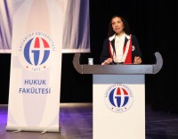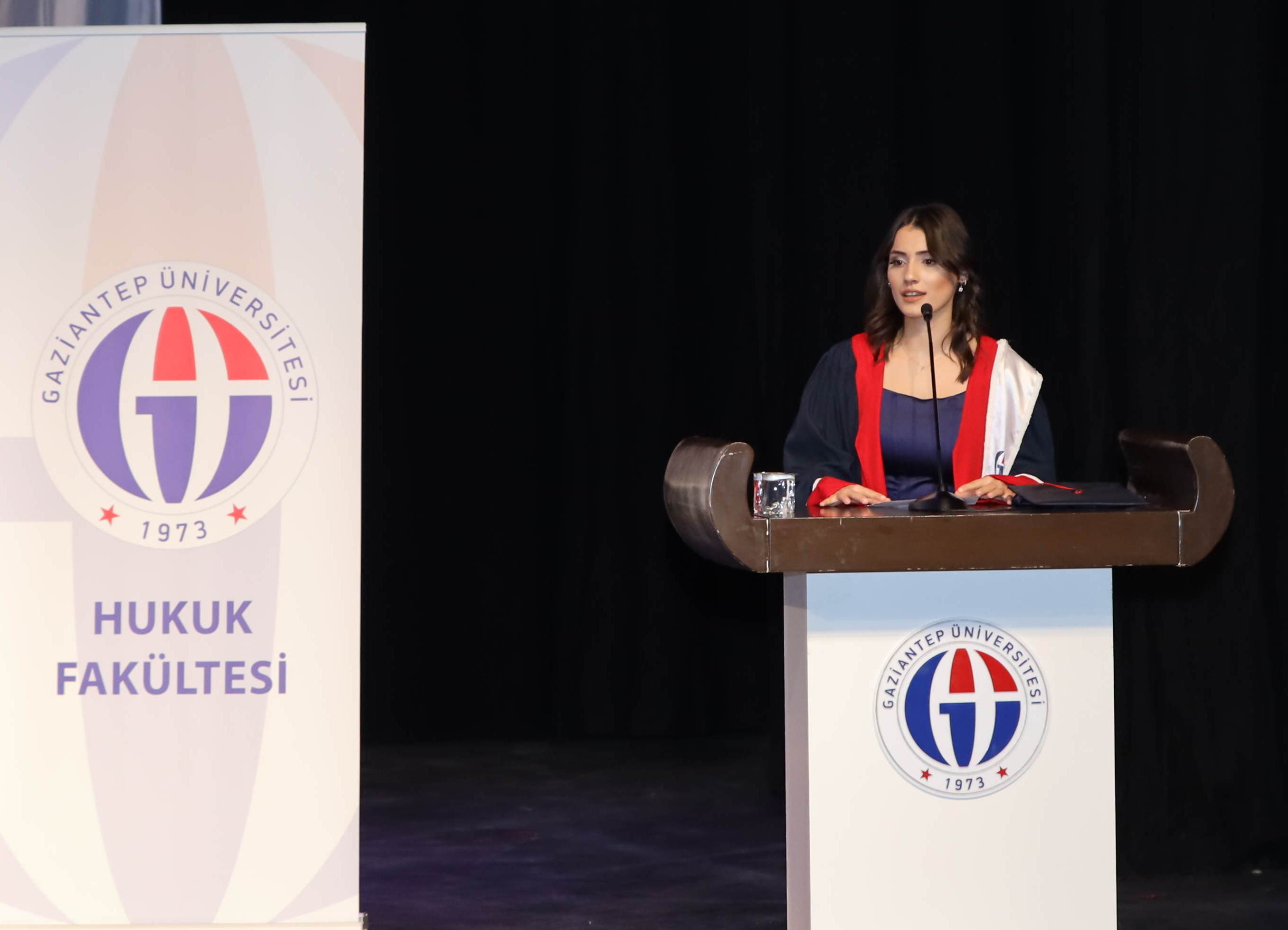 GAÜN Hukuk Fakültesi Dekanı Prof. Dr. Esra Siverekli ise mezunlara seslendiği konuşmasında şunları söyledi: “Gelecek yollarınızda ilerlerken ışığınız varlığınız olsun, varlığınız çalışkan, dürüst, adaleti en küçük detaylarda dahi arayan kişiliğiniz olsun. Hayata ve sizden adalet bekleyen insanlara tüm emeklerinizle en doğrusunu en içtenini verin ki, onlara açtığınız yol ile sizin de yolunuz açık olsun. Doğruluk yegane rehberiniz, iyilikler üzere yaşamınız hayat anlayışınız olsun, Yarışınız iyilikte ve güzellikte olsun. Bu yolda ve yolculuklarınızda size yol gösteren, eğitim hayatınıza destek sağlayan büyükleriniz olarak güveniyoruz.”