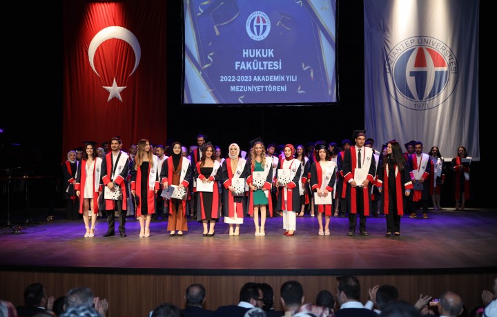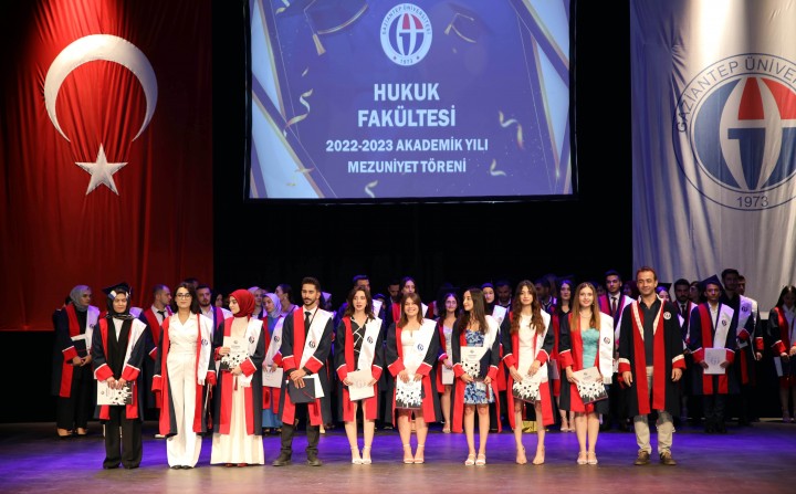 Gaziantep Üniversitesi Hukuk Fakültesi’nin 2022-2023 Akademik yılı 9. dönem mezuniyet töreninde mezun olmaya hak kazanan 166 öğrenci düzenlenen tören ile belgelerini aldı. Dört yıllık eğitimin ardından mezun olan öğrenciler, diplomalarını alarak meslek hayatına ilk adımlarını attı.