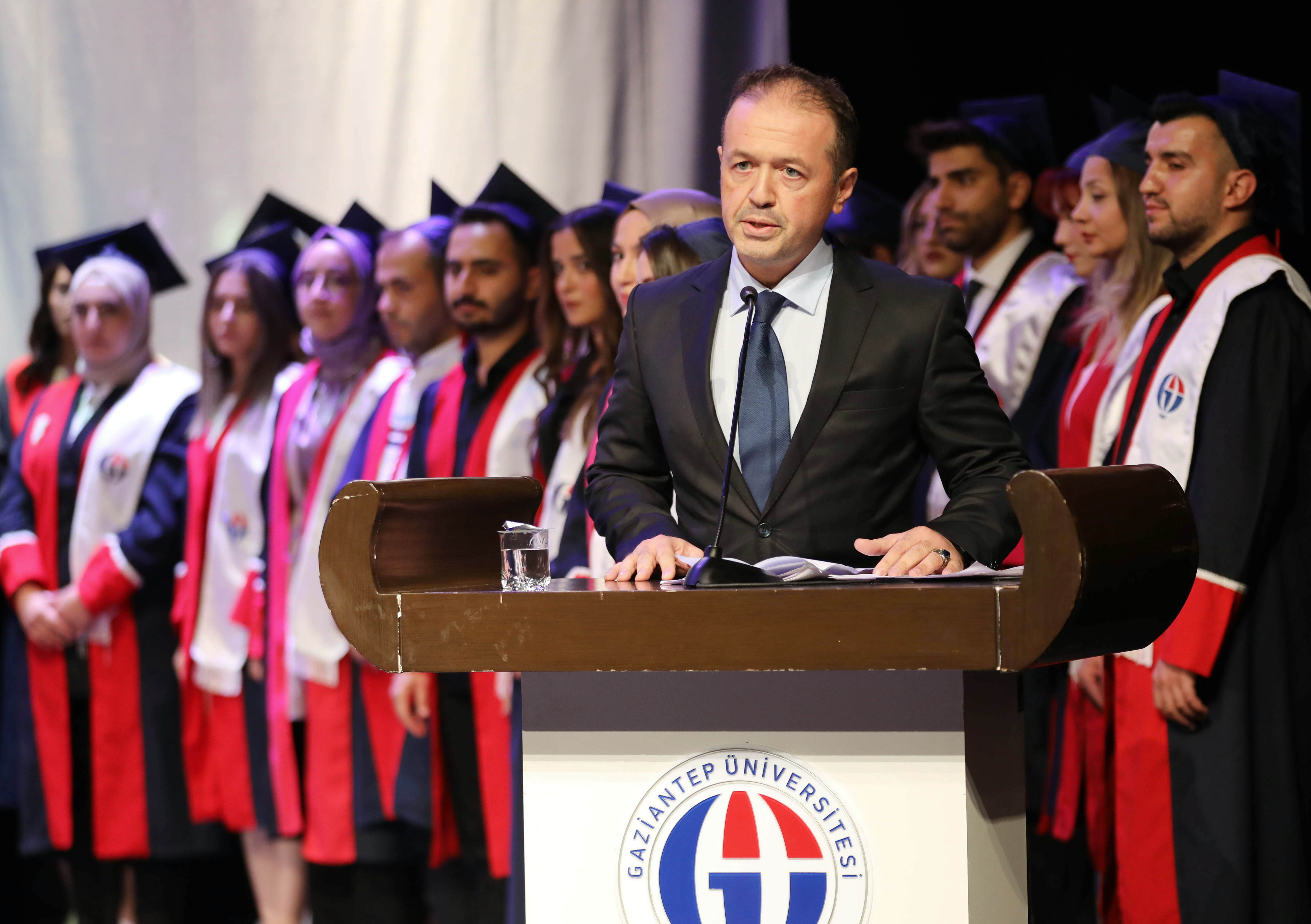 GAÜN Atatürk Kültür Sahnesi’nde düzenlenen mezuniyet töreninin açılışında konuşan Diş Hekimliği Fakültesi Dekanı Prof. Dr. Uğur Aydın,  mezun öğrencileri tebrik ederek, bundan sonraki yaşamlarında başarılar diledi. Prof. Dr. Aydın öğrencilere seslendiği konuşmasında şu ifadeleri kullandı: “Zordur diş hekimliği eğitimi, zahmetlidir, yorucudur. Özellikle, sizlerin dönemi, pandemi, deprem felaketi gibi zorlu süreçlerden geçerek mezun oldu. 50 binin üzerinde canımızı kaybettik. Öğrencilerimizden, mezunlarımızdan, personellerimizden kayıplarımız oldu. Hepsine Allah’tan rahmet diliyoruz. Rabbim bizlere bir daha böyle acılar yaşatmasın. Tabii, devletimiz ilgili birimleri, yükseköğretim kurumumuz, rektörlüklerimiz bu süreçte çok hızlı organize olarak, gerekli alt yapıyı sağladı. akademik ve idari personellerimiz fedakarane bir efor sarf etti. Ancak her ne koşulda olursa olsun, diş hekimliği mesleği, sadece lisans eğitiminiz süresince öğrendikleriniz ile ömür boyu icra edebileceğiniz bir meslek olmanın üzerindedir. Ömür boyu öğrenme gerektirir. Bundan sonraki mesleki yaşantınızda, bilimsel etkinliklere katılmanı, yayınları-makaleleri takip etmeniz son derece önemlidir. onun için, belki de son ders maiyetindeki bu konuşmamızda, tüm mesleki yaşantınızda, bilgi ve beceri düzeyinizi sürekli arttırmayı amaçlamanızı son kez vurgulamış olalım.”
