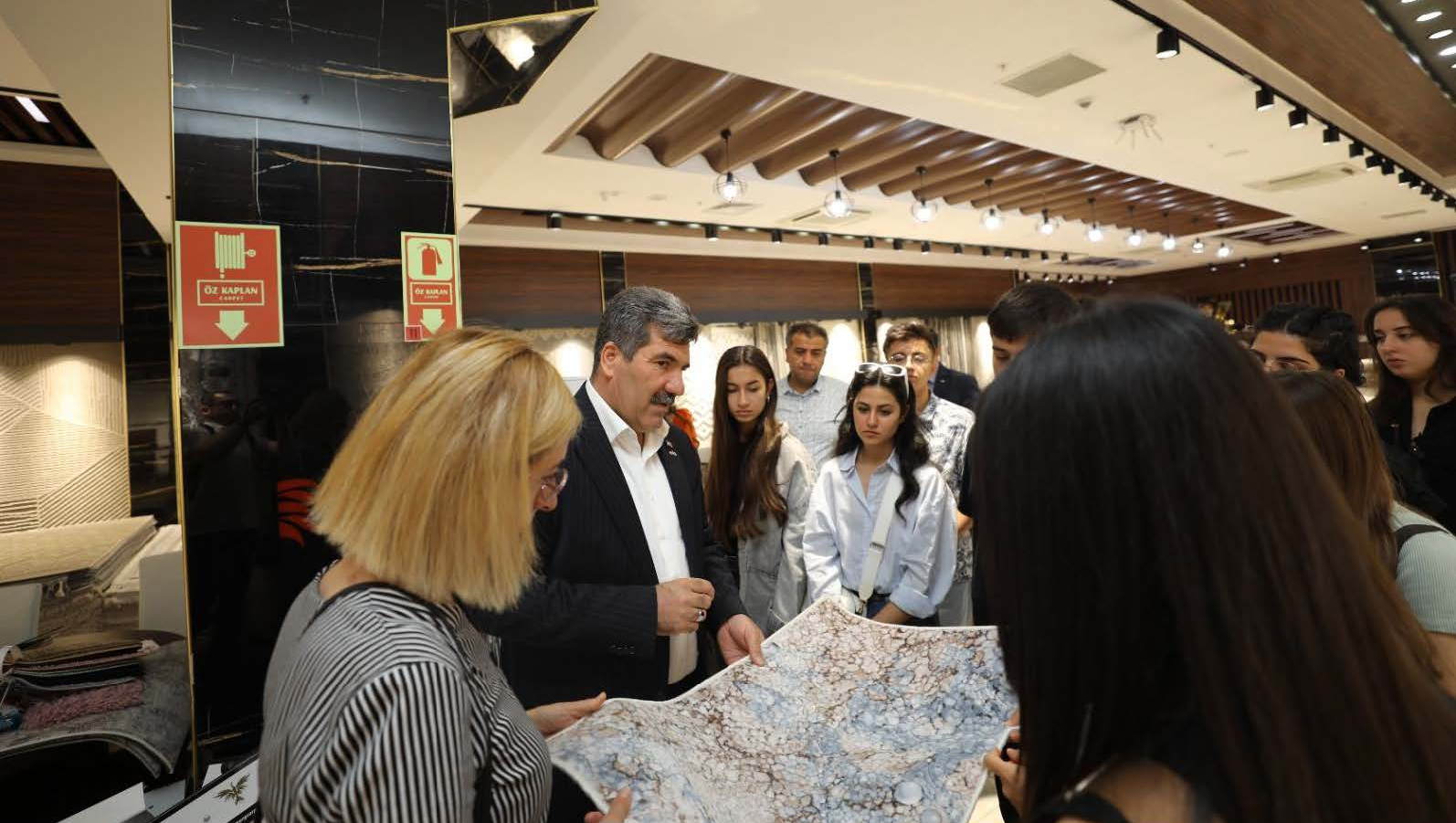 GAHİB Başkanı Zeynal Abidin Kaplan fabrikada incelemeler yapan geleceğin tasarımcılarına sektörün dünü, bugünü ve geleceğiyle ilgili önemli bilgiler vererek öğrencilerin merak ettiği konularda da sorularını yanıtladı. Makine halısı üretim tesislerinin bütün bölümlerini yakından inceleyen öğrenciler mesleki alanda başarılı olabilmenin sırlarıyla ilgili tiyoları da Başkan Zeynal Abidin Kaplan’dan almayı ihmal etmediler.