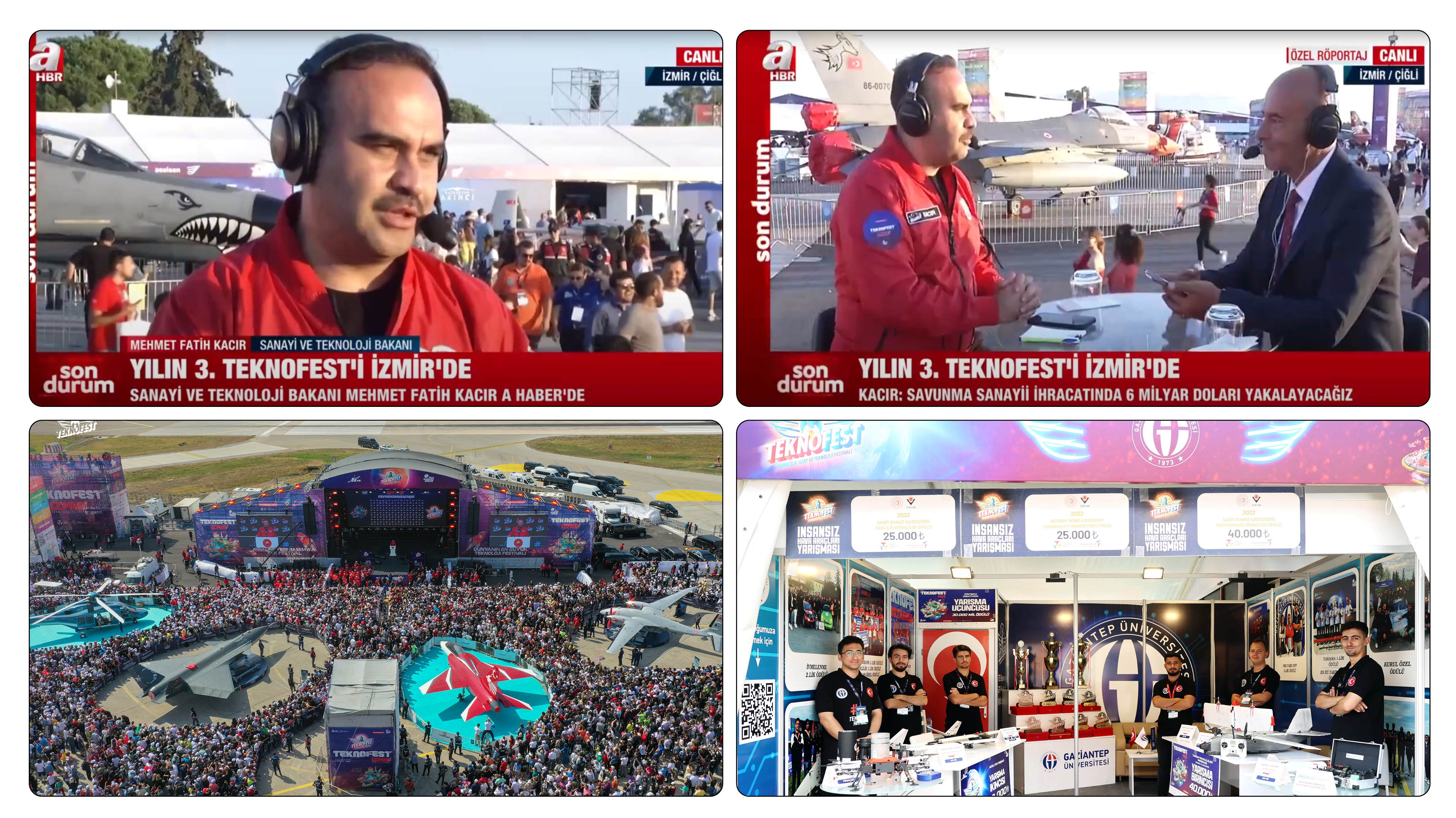 Sanayi ve Teknoloji Bakanı Mehmet Fatih Kacır, İzmir’de düzenlenen TEKNOFEST yarışmalarını değerlendirmek için katıldığı bir televizyon programına katıldı. Program sunucusunun GAÜN standına yaptığı ziyaret sonrası “Gaziantep Üniversitesi son iki yılda TEKNOFEST yarışmaları kapsamında toplam 21 ödül kazandı” değerlendirmesine karşılık Bakan Kaçır, “Gaziantep Üniversitesi TEKNOFEST 2020’den sonra gerçekleşen pek çok TEKNOFEST’te en fazla proje takımının yer aldığı ilk 5 üniversiteden biridir” yanıtını verdi.