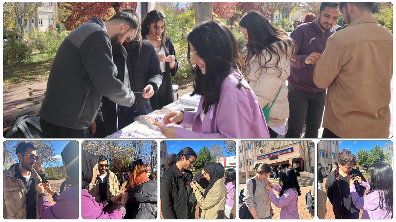 GAÜN ÖĞRENCİLERİ KADINA YÖNELİK ŞİDDETE DİKKAT ÇEKMEK İÇİN MOR KURDELE DAĞITTI