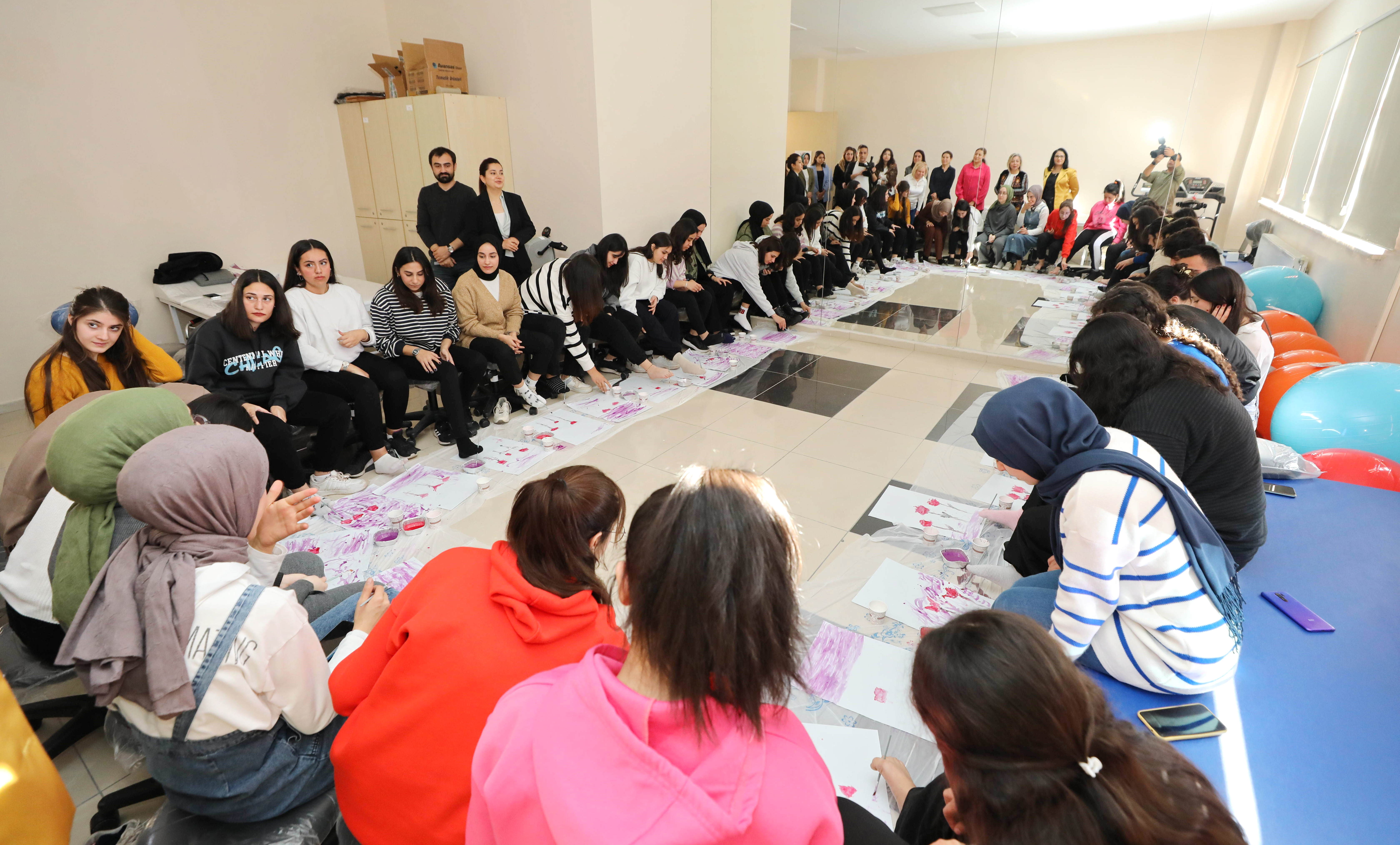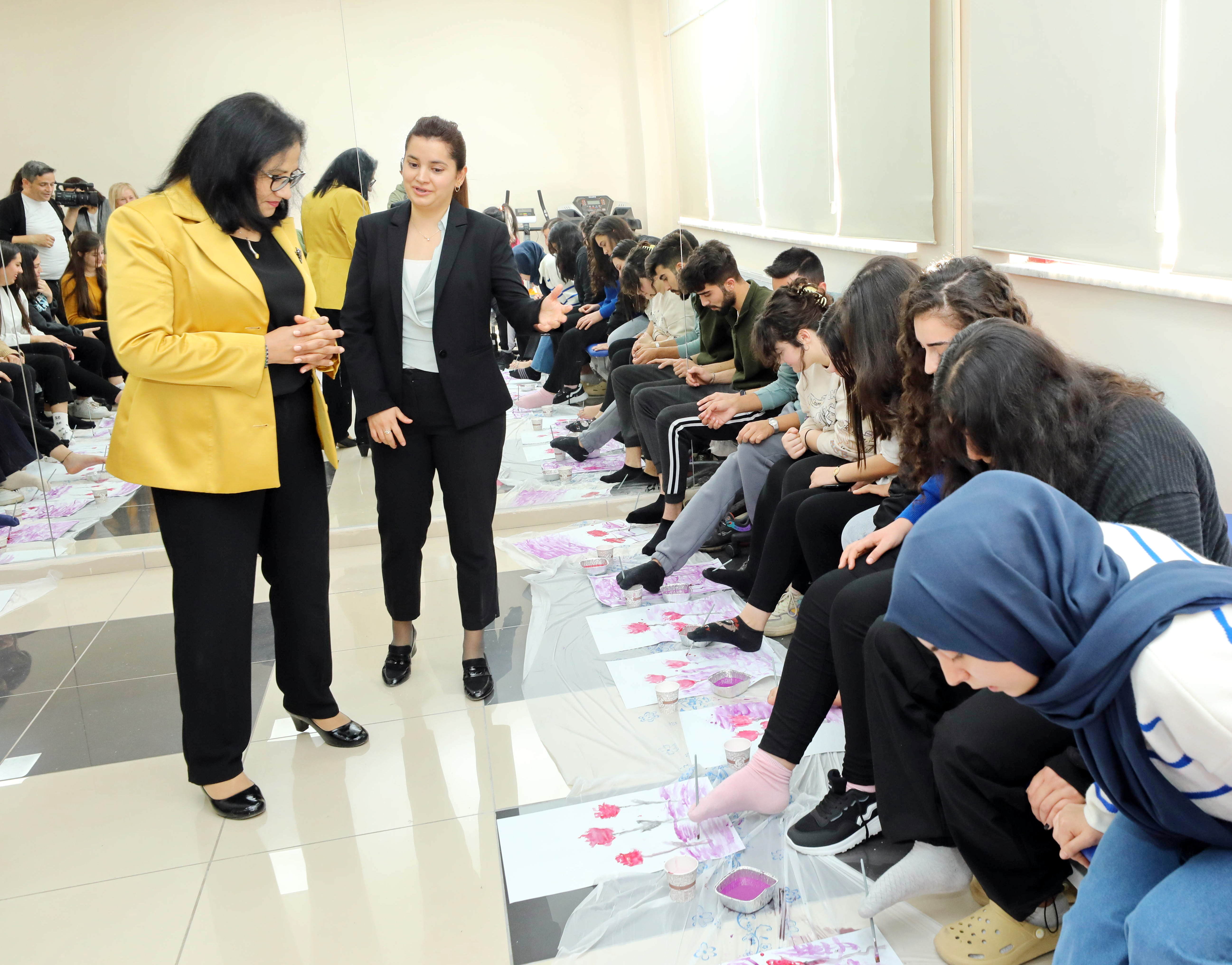 GAÜN Sağlık Bilimleri Fakültesi Merkezi Derslikler binasında düzenlenen etkinlikte GAÜN Fizyoterapi ve Rehabilitasyon bölümü öğrencileri, GAÜN Sağlık Bilimleri Fakültesi Fizyoterapi ve Rehabilitasyon bölümü öğretim üyeleri Dr. Öğr. Üyesi Tuba Maden ve Dr. Öğr. Üyesi Sedat Yiğit eşliğinde engellilerle empati kurmak amacıyla ayaklarıyla fırça kullanarak boyama yaptı.