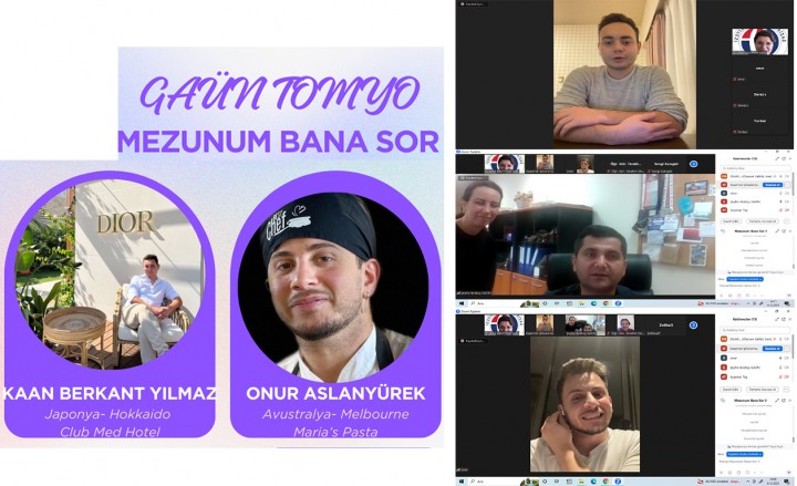 Japonya ve Avustralya’da çalışan GAÜN Turizm ve Otelcilik Meslek Yüksekokulu mezunlarından Kaan Berkant Yılmaz ve Onur Aslanyürek, online platform üzerinden yurtdışına gidiş yolculuklarını anlatarak, GAÜN Turizm ve Otelcilik Meslek Yüksekokulu öğrencilerine tavsiyede bulundu.