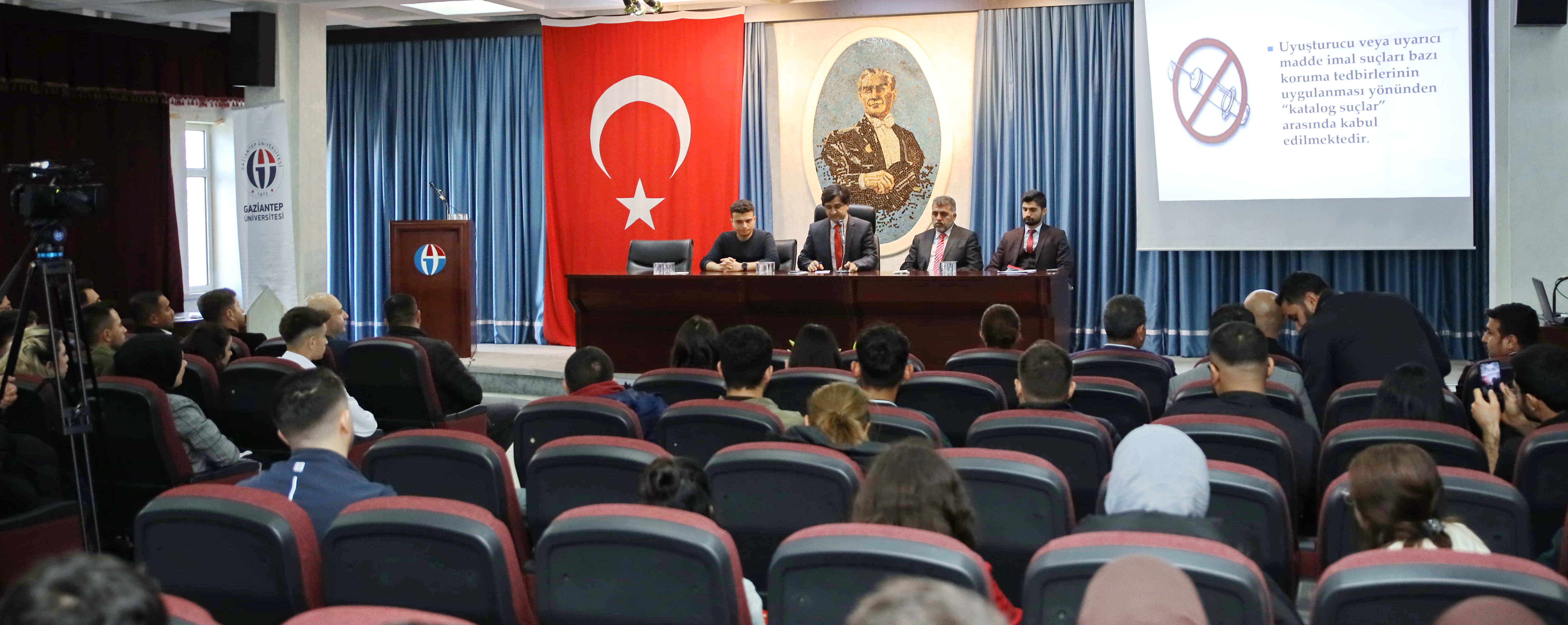Gaziantep Üniversitesi (GAÜN) Atatürkçü Düşünce Topluluğu, Türk Dünyası Araştırma Topluluğu ile Ülkü Ocakları Eğitim ve Kültür Vakfı Gaziantep İl Başkanlığı işbirliğinde hazırlanan ‘Bana Ne Olacağını Biliyorum (Çağımızın En Büyük Tehlikesi Olarak Uyuşturucu Madde Bağımlılığının Zararları)’ konulu panel, GAÜN Fen Edebiyat Fakültesi Ömer Asım Aksoy Konferans Salonu’nda düzenlendi.