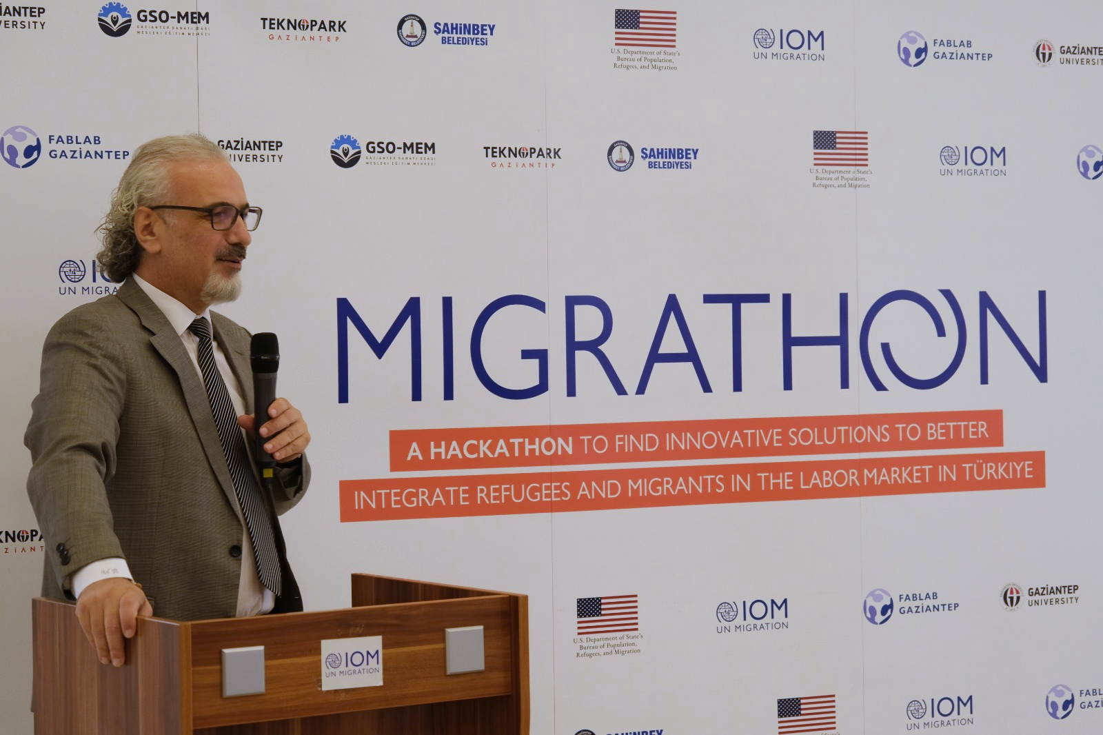 Hackatronun açılışında GAÜN Teknopark adına konuşma yapan GAÜN Mühendislik Fakültesi Dekanı Prof. Dr. Mustafa Bayram “Bu dünyada herkes göçmen durumundadır. Geçmişte keşiflerle, savaşlarla, açlıkla, ticaretle, kıtlıklarla göç eden insanlar gelecekte de yine iklim krizi, açlık, nüfus yoğunluğu, kaynak sorunları sebebi ile göç etmeye devam edecektir. Bir sonraki göç belki de keşif amaçlı olarak Mars’a olacaktır. Ama bugün insani dramlar sebebi ile insanlar göçe zorlanmaktadır. Bunun için herkesin göç konusunda hazır olması ve buna yönelik çözümler bulması gerekmektedir. Bu hackatronun ana teması da aslında budur. Sorunlara yenilikçi çözüm bulmak için göç edenlerle yerel gençlerin bir araya gelerek, birbirlerinin güçlü yönlerinden yararlanıp, yeni sinerji oluşturması gerekli” diye konuştu. IOM adına konuşan Bölge Müdürü Lance Bonneau ise, IOM çalışmalarından ve hackatron serisinin öneminden bahsetti.