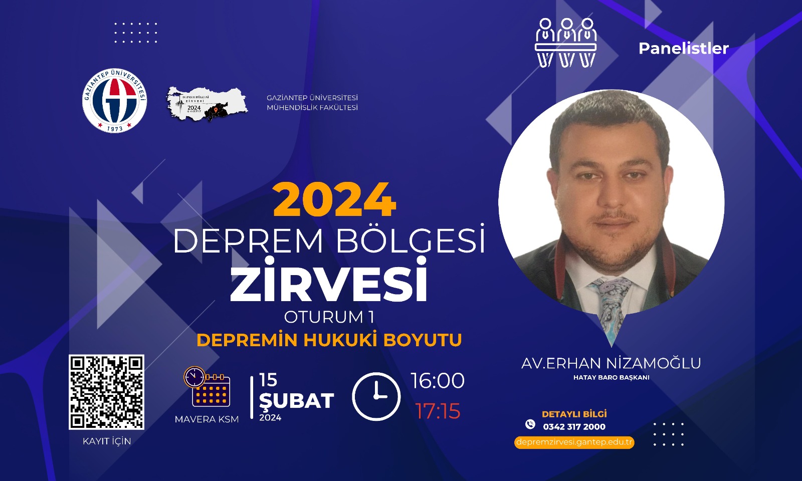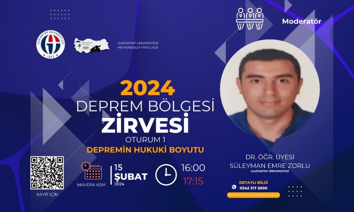 Gaziantep Üniversitesi (GAÜN) Mühendislik Fakültesi tarafından depremin 1. yılında geçmişe, günümüze ve geleceğe farklı bir gözle ve çok boyutlu şekilde bakmak üzere düzenlenen Deprem Bölgesi Zirvesi’nde depremin hukuki boyutu da tartışılacak.