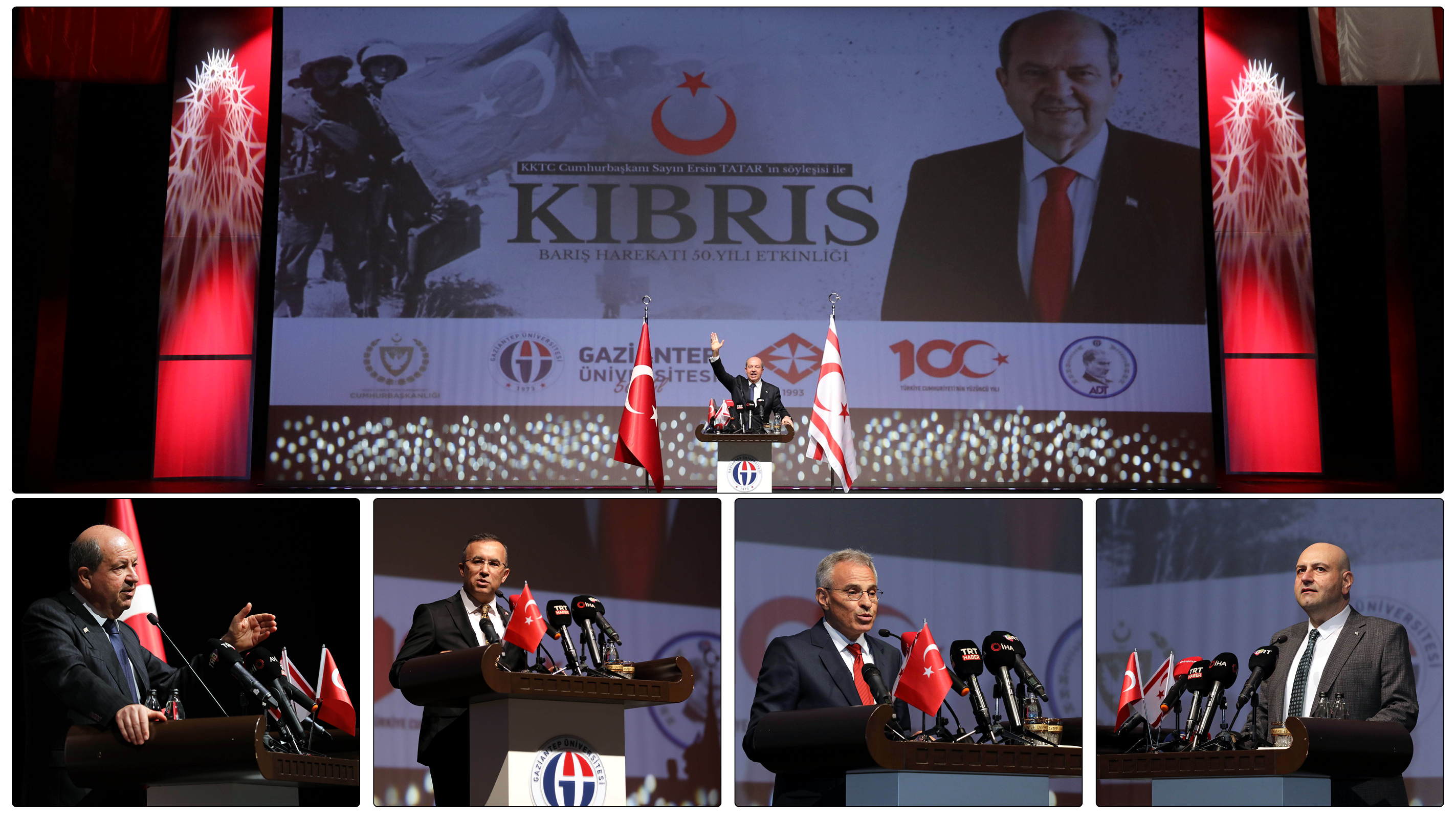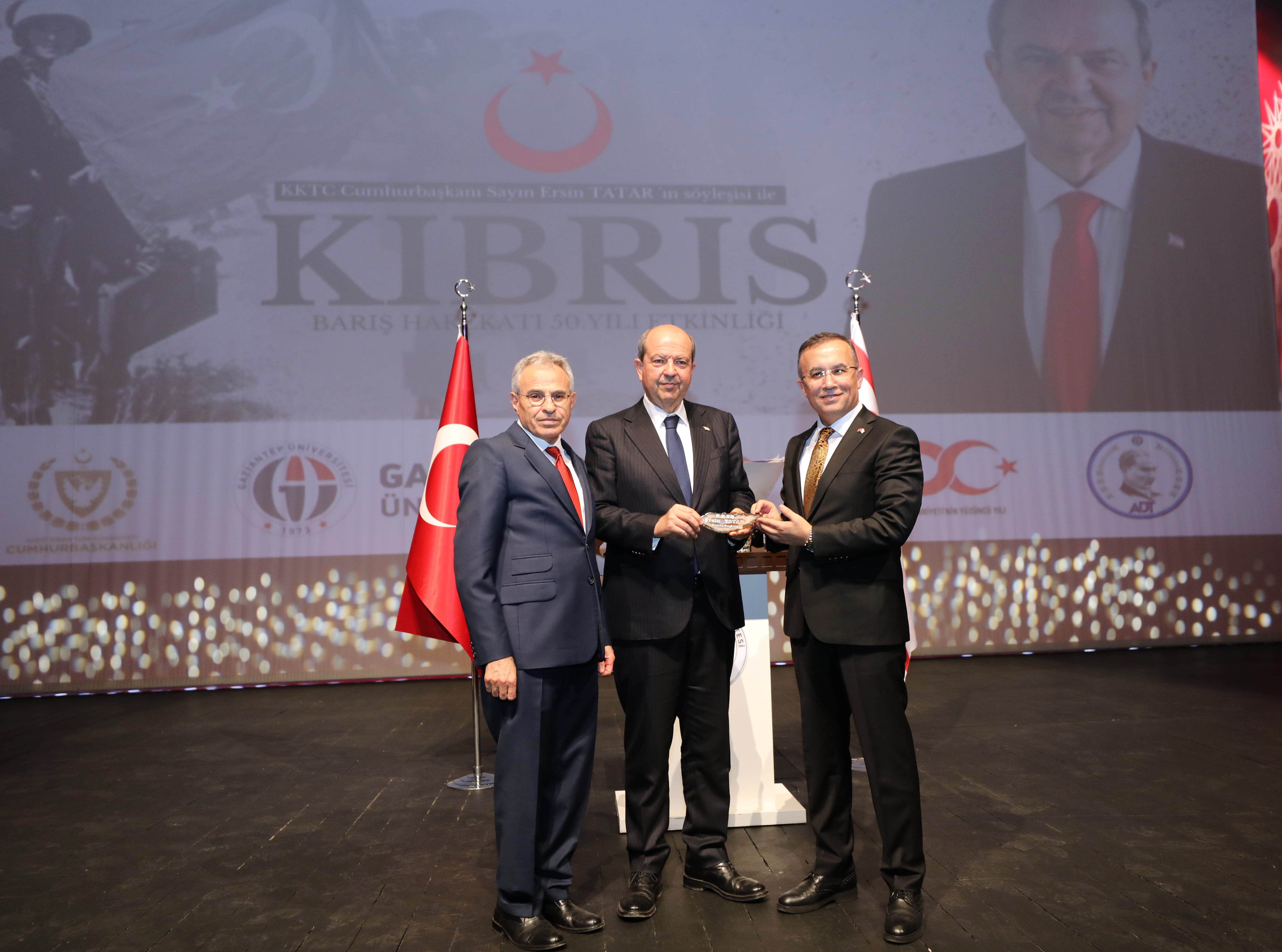 Gaziantep Üniversitesi (GAÜN) ev sahipliğinde Kıbrıs Barış Harekatı’nın 50’inci yıl dönümü dolayısıyla KKTC Cumhurbaşkanı Ersin Tatar’ın katılımıyla “Kıbrıs Barış Harekatının 50. Yılı Etkinliği” düzenledi.