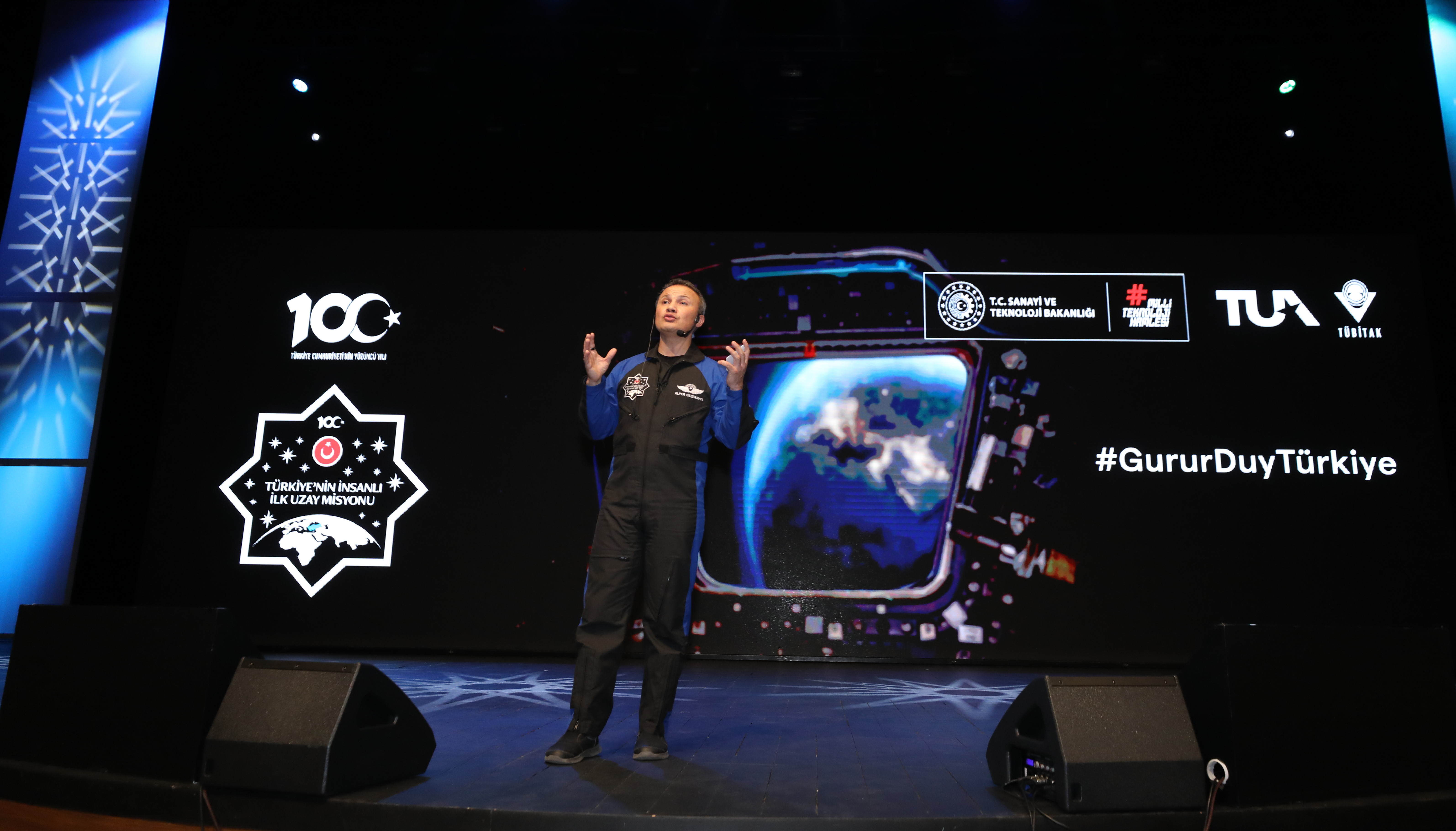 Astronot Alper Gezeravcı, “Benim hikayem 2022 Mayıs’ında başladı. Haberlerde tesadüfen Cumhurbaşkanımızın halkımıza yaptığı açıklamayı dinledim. Türkiye Cumhuriyetinin 100’üncü yılında bir Türk vatandaşı ilk defa uzaya gönderilecekti. Uzay, astronomi alanında birçok araştırma yaparak, ‘Ben bu işi yapabilirim’ noktasına geldiğim an başvurumu gerçekleştirdim.  Ben bu rüyanın, bu hayalin hep başka milletlerin insanlarına ait olduğu telkin ediyordum kendime. Artık sizin hayalinizin sınırı yok. Potansiyelinize güvenin, içinizde olan özgüveniniz ayağa kalksın. Bundan sonra yolunuz açık, Bu hikayenin kalan kısmına imza atacak olan sizlersiniz. Bundan sonra sizlerin başarılarıyla övüneceğiz. ”diye konuştu.