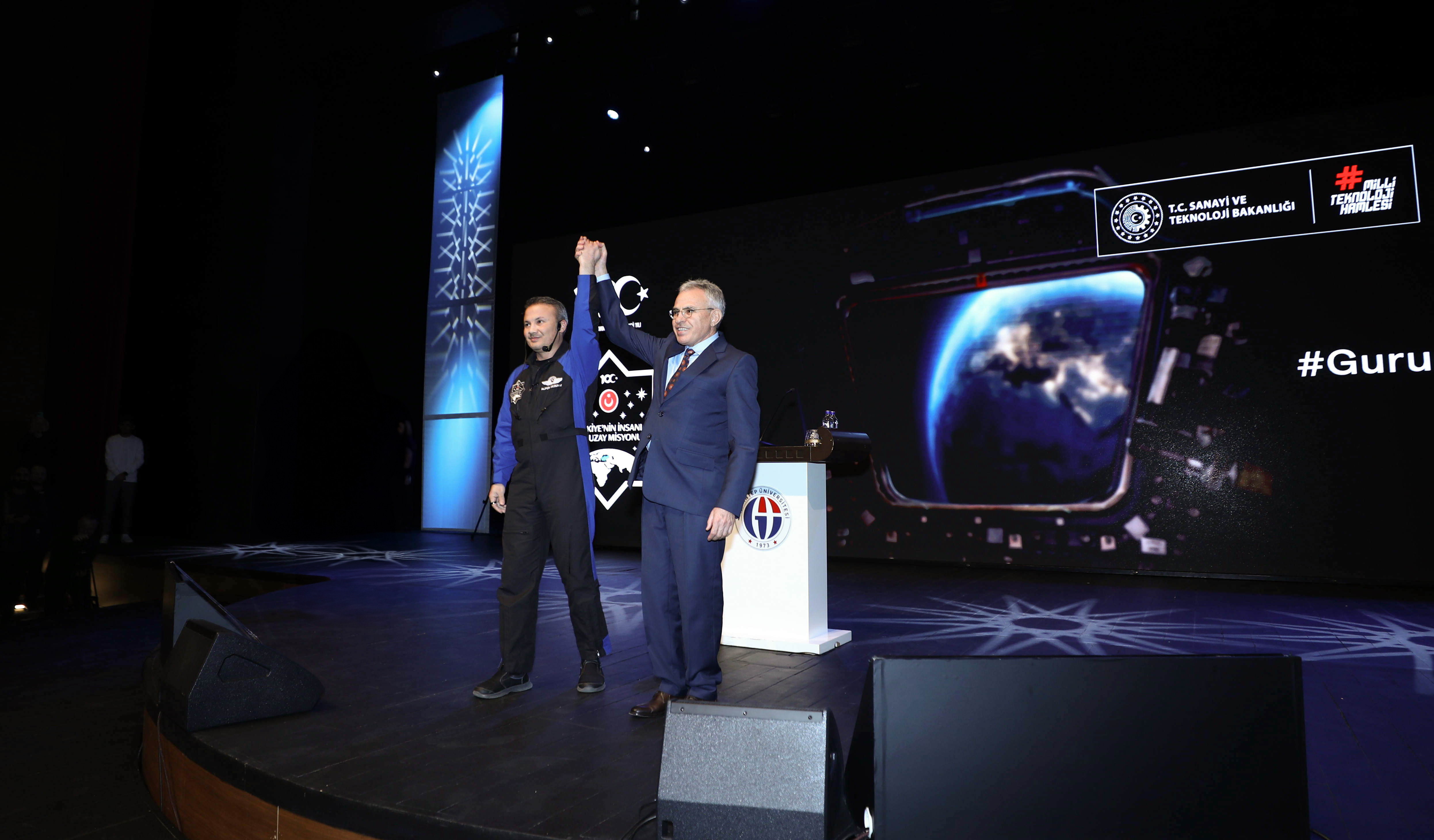 Sanayi ve Teknoloji Bakanı Mehmet Fatih Kacır ile Türkiye’nin ilk astronotu Alper Gezeravcı, Gaziantep Üniversitesi (GAÜN) öğrencileriyle bir araya geldi.