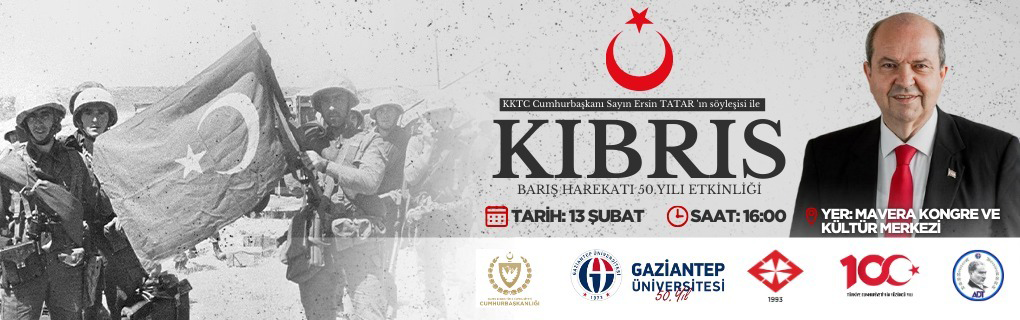 Gaziantep Üniversitesi (GAÜN), Kıbrıs Barış Harekatı’nın 50. yıl dönümü dolayısıyla, KKTC Cumhurbaşkanı Ersin Tatar’ın da katılacağı önemli bir söyleşiye ev sahipliği yapacak. GAÜN Mavera Kültür ve Kongre Merkezi’nde düzenlenecek olan söyleşi, GAÜN Atatürkçü Düşünce Topluluğu ile Akraba Topluluklar Araştırmaları Uygulama Merkezleri Müdürlüğü ‘Kıbrıs Barış Harekatı 50. Yılı Etkinlik Planlaması’ çerçevesinde ve Başkent Üniversitesi Rektörlüğü Kıbrıs Türk Tarihi Araştırmaları Merkezi Müdürlüğü…
