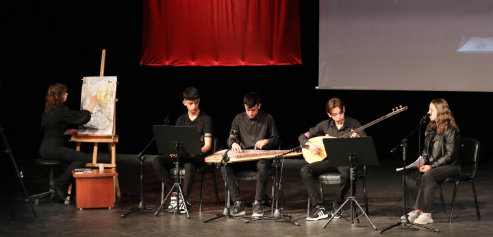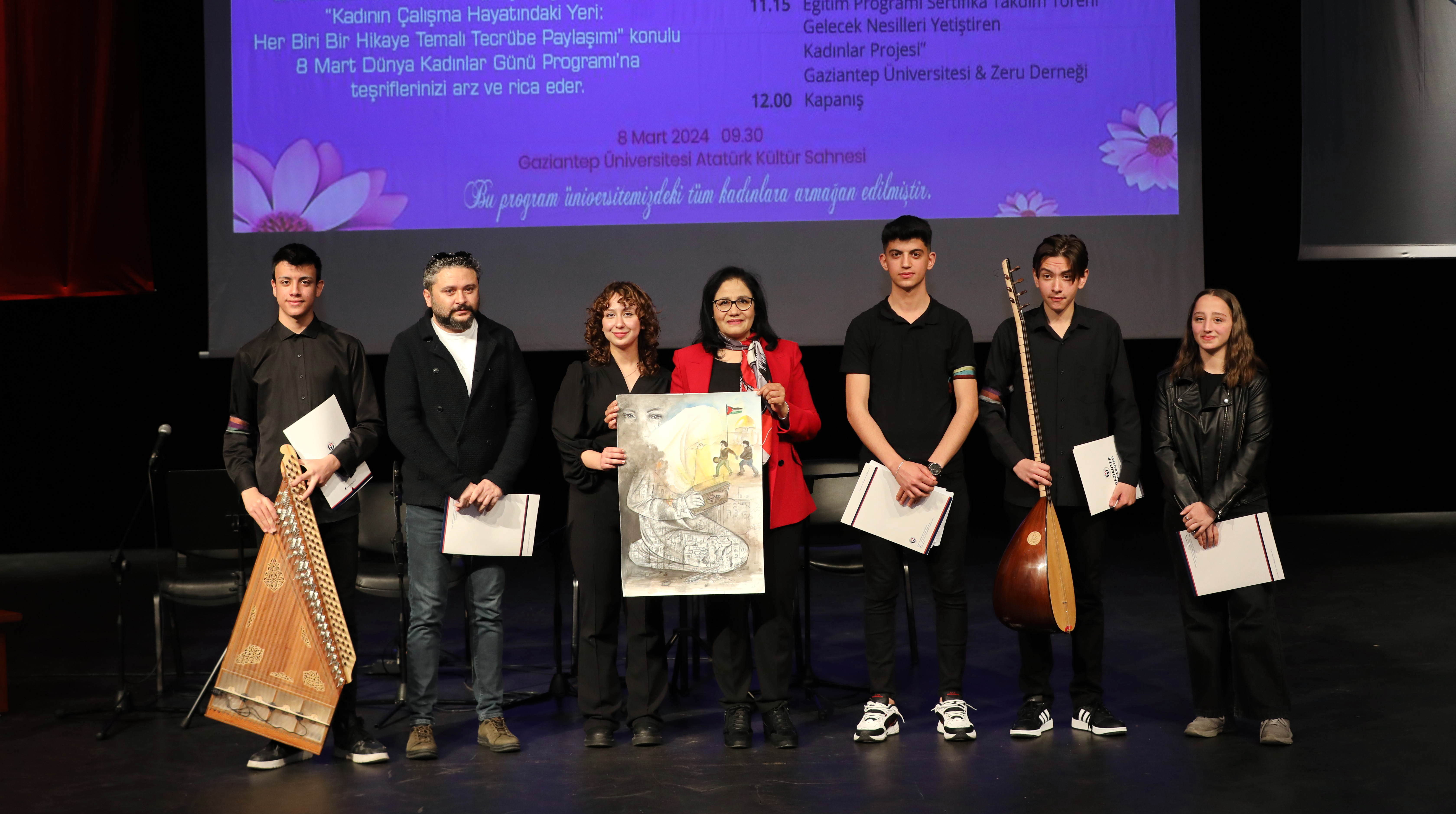 Açılış konuşmasından sonra Gaziantep Ticaret Odası Anadolu Güzel Sanatlar Lisesi öğrencileri Semih Boztepe, Emre Emir Evyapan, Erol Çelik ve İkbal Coşkun ‘Mısralardan Nağmeler’ başlıklı enstrümantal müzik eşliğinde şiir dinletisi düzenledi. Ayrıca şiir dinletisi sırasında Gaziantep Ticaret Odası Anadolu Güzel Sanatlar Lisesi öğrencisi Devlet Sefa Özçiçek ‘Filistin İşgali ve Filistin’de Kadın Olmak’ konulu tuvali boyadı. Boyaması tamamlanan tuval daha sonra GAÜN Rektör Yardımcısı Prof. Dr. Ayşe Balat’a hediye edildi.