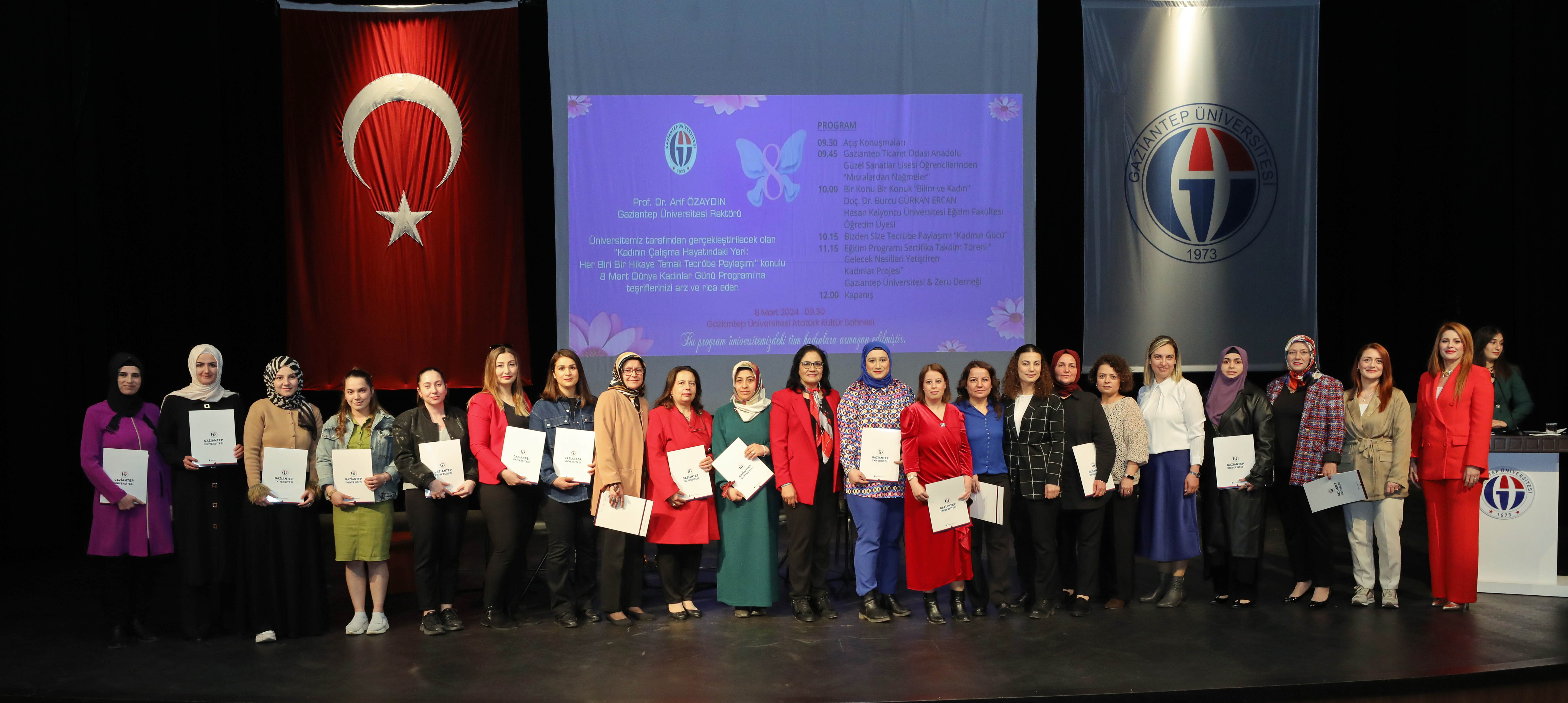 Programın son oturumunda ise GAÜN ve ZERU Derneğinin birlikte organize ettiği ‘Gelecek Nesilleri Yetiştiren Anneler Projesi’ kapsamında düzenlenen eğitim programını başarıyla tamamlayan kadın kursiyerlere GAÜN Rektör Yardımcısı Prof. Dr. Ayşe Balat tarafından sertifika takdim edildi.