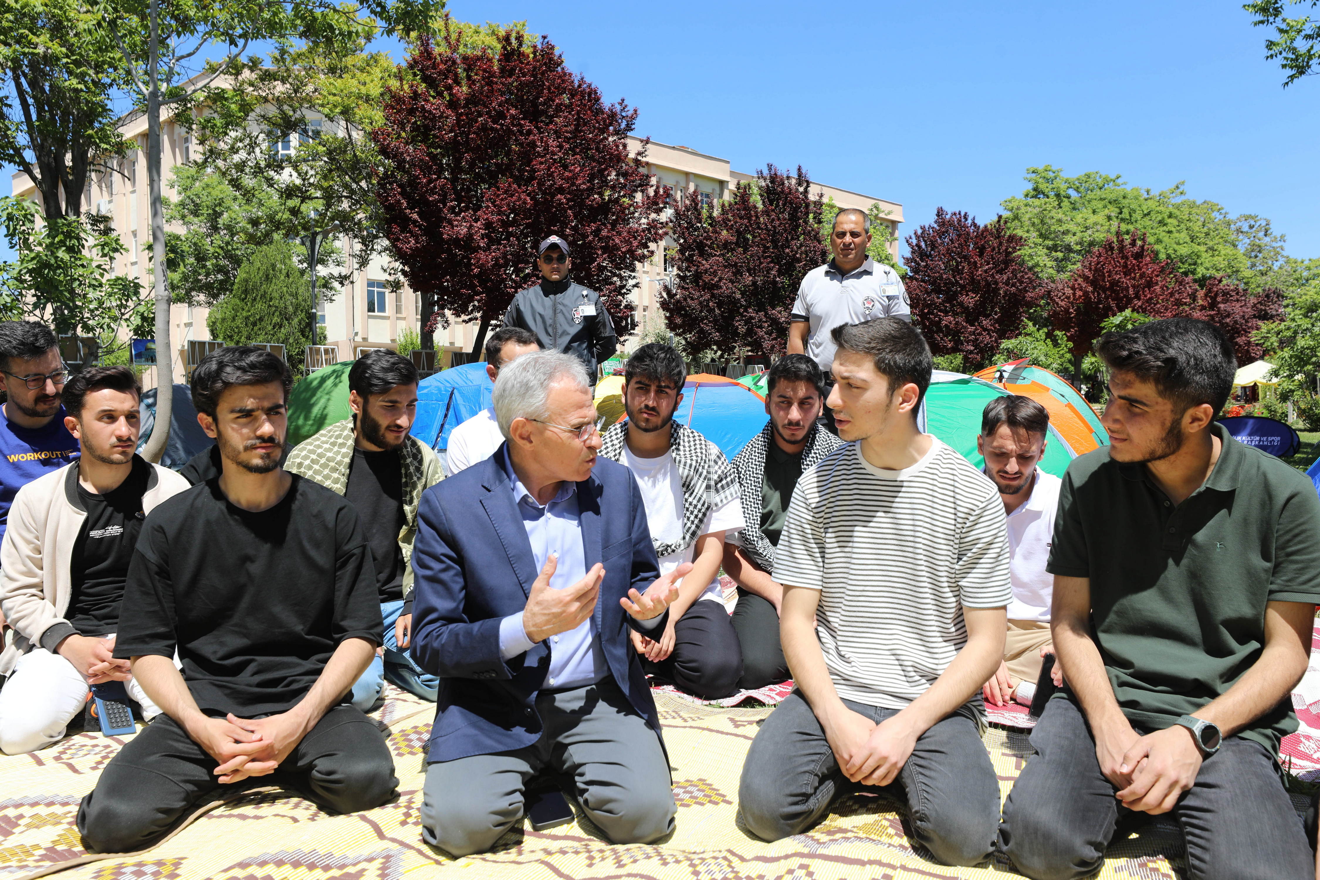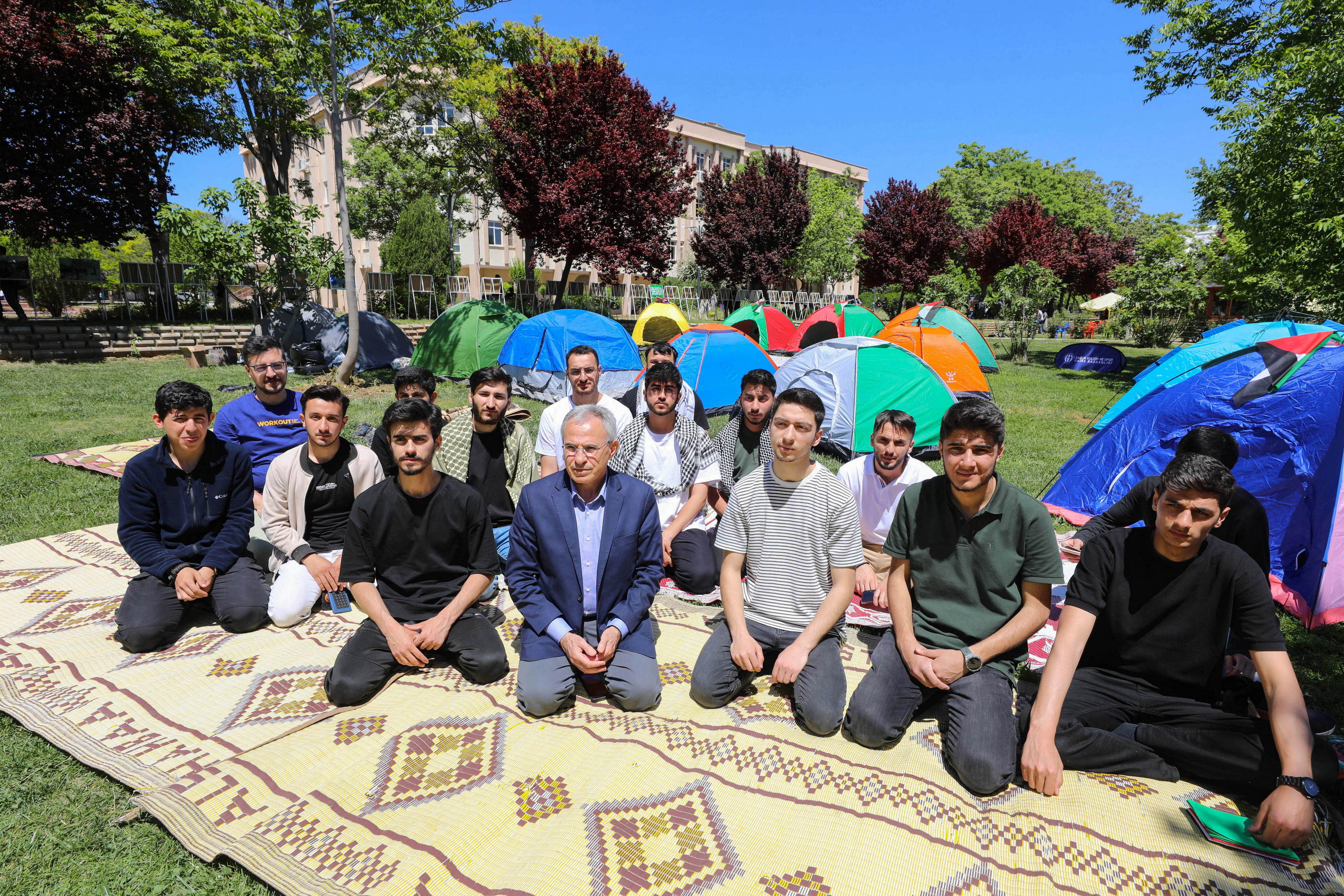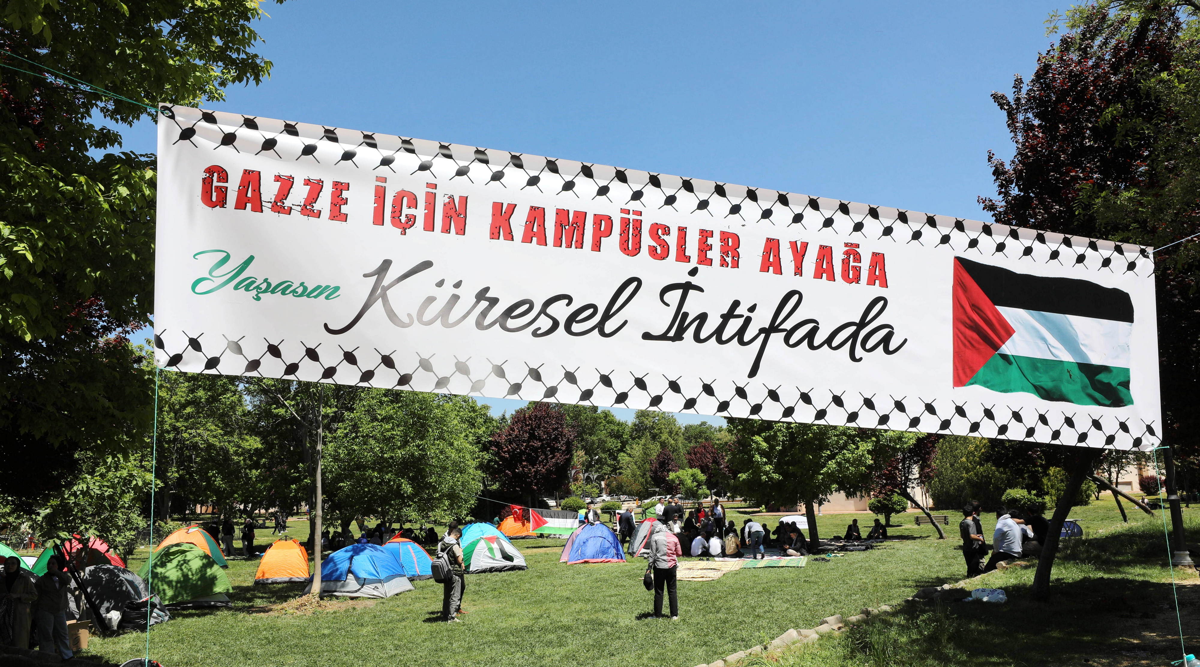 Eyleme katılan öğrenciler, Gazze’ye destek amacıyla düzenlenen oturma eyleminin 9 Mayıs 2024 Perşembe günü saat 24.00’e kadar devam edeceğini belirtti.