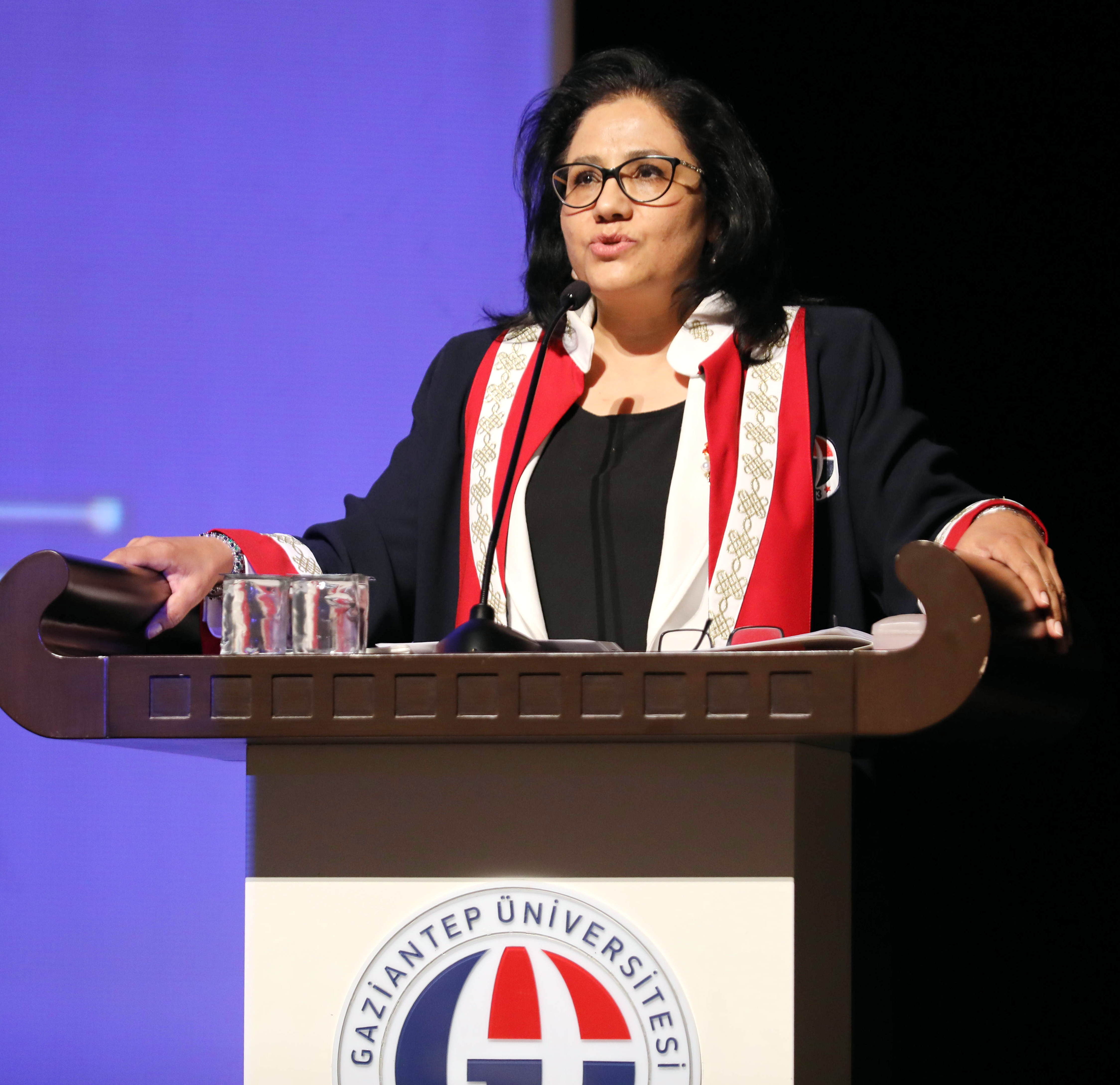Programın açılışında konuşan GAÜN Rektör Yardımcısı Prof. Dr. Ayşe Balat, tıp fakültesinde eğitim ve öğretimin zorlu ve uzun bir süreç olduğuna vurgu yaptı. Prof. Dr. Balat konuşmasının devamında şunları söyledi: “Bazı öğrenciler diyor ki; ‘Biz dar bir tünelde yol alıyor gibiyiz.’ Haklılar, insanla uğraşıyorsunuz. Üstelik uğraştığınız insanlar sağlık sorunları olan insanlar, sıkıntı yaşamanız çok normal. O nedenle Hipokrat Yemini etmek için mezuniyeti beklemeyin. Hipokrat Yemini’nin özünü içeren bazı cümleleri hep hatırlamanızı isteyeceğim. Gaziantep Üniversitesi Tıp Fakültesi öğrencileri olarak eğitiminiz ve bütün meslek yaşamınız boyunca çalışma ve öğrenmenin sınırsız olduğunun bilincinde olarak, bilgi ve becerilerinizi sürekli geliştireceğinize, iyi bir hekim olmanız için çaba gösteren öğretim üyelerine, çok değerli hocalarınıza hak ettikleri saygıyı göstereceğinize yürekten inanıyorum. Bir hekim adayı olarak ‘yaşamın en kutsal hak’ olduğunu daima göz önünde bulundurarak, toplum ve bireyin sağlığını korumaya çalışacağınıza inanıyorum.”