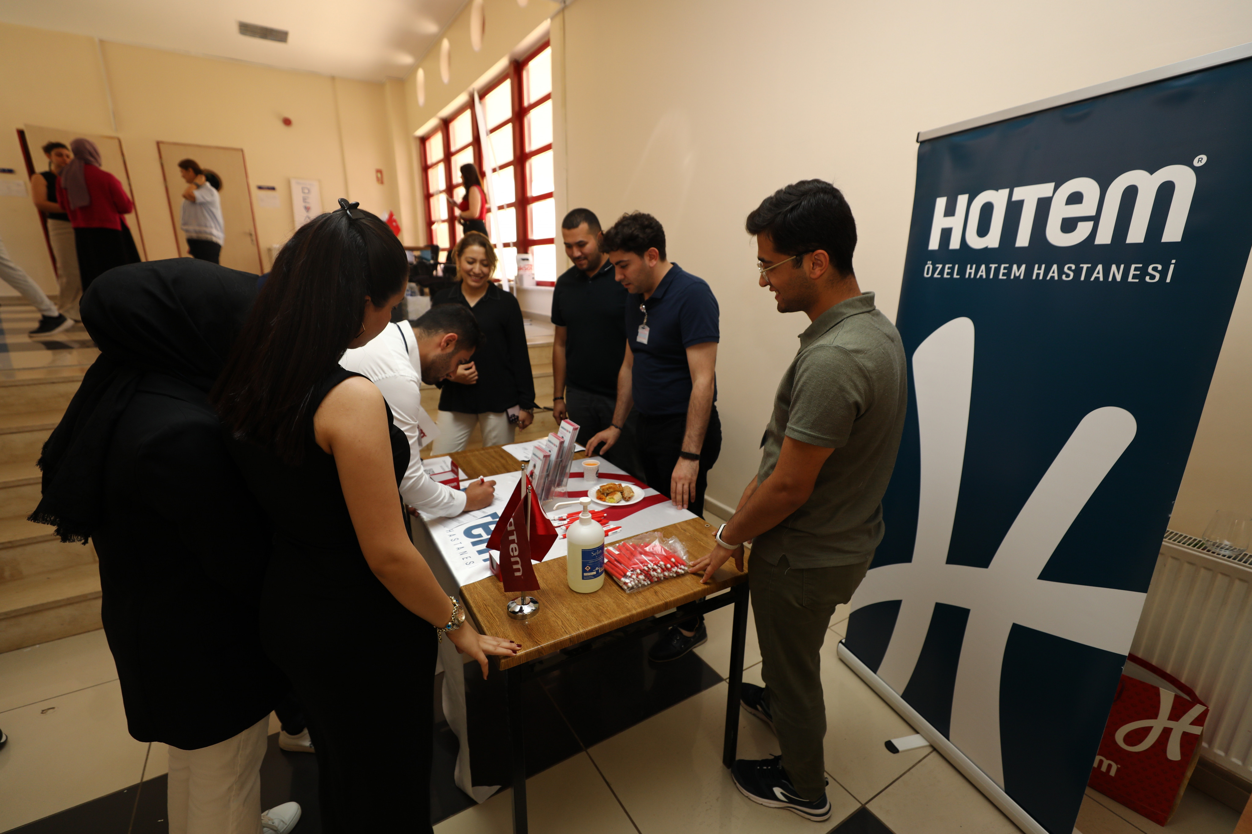 GAÜN Sağlık Bilimleri Fakültesi Kariyer Planlama ve İletişim Komisyonu Başkanı Doç. Dr. Nurgül Özdemir, Komisyon Üyesi Arş. Gör. Tuğba Albayram, Dekanlık Sekreteri Serkan Ergül ve öğrenci hemşireler Bilal Duran, Ceren Bakır, Burhan Karakuş, Nimet Çiçek, Kübra Hacıoğlu tarafından koordine edilen etkinlikte; hemşirelik bölümü son sınıf öğrencilerine Gaziantep il genelinde bulunan özel hastaneler tarafından kurum politikaları, çalışma koşulları, maaş durumları, sağlanan imkanlar anlatıldı. Öğrenciler, Defa Life, Medical Point, Liv Hospital, Deva Hastanesi, Anka Hastanesi, Özel Düztepe Yaşam Hastanesi, Hatem Hastanesi, MMT Amerikan Hastanesi, Gaziantep Hayat Hastanesi gibi çeşitli özel hastanelerin yer aldığı stantlarda çalışmayı düşündükleri hastaneler için ön başvuru formu doldurarak mesleki hayatlarına yönelik tercih yapma imkanına sahip oldu.