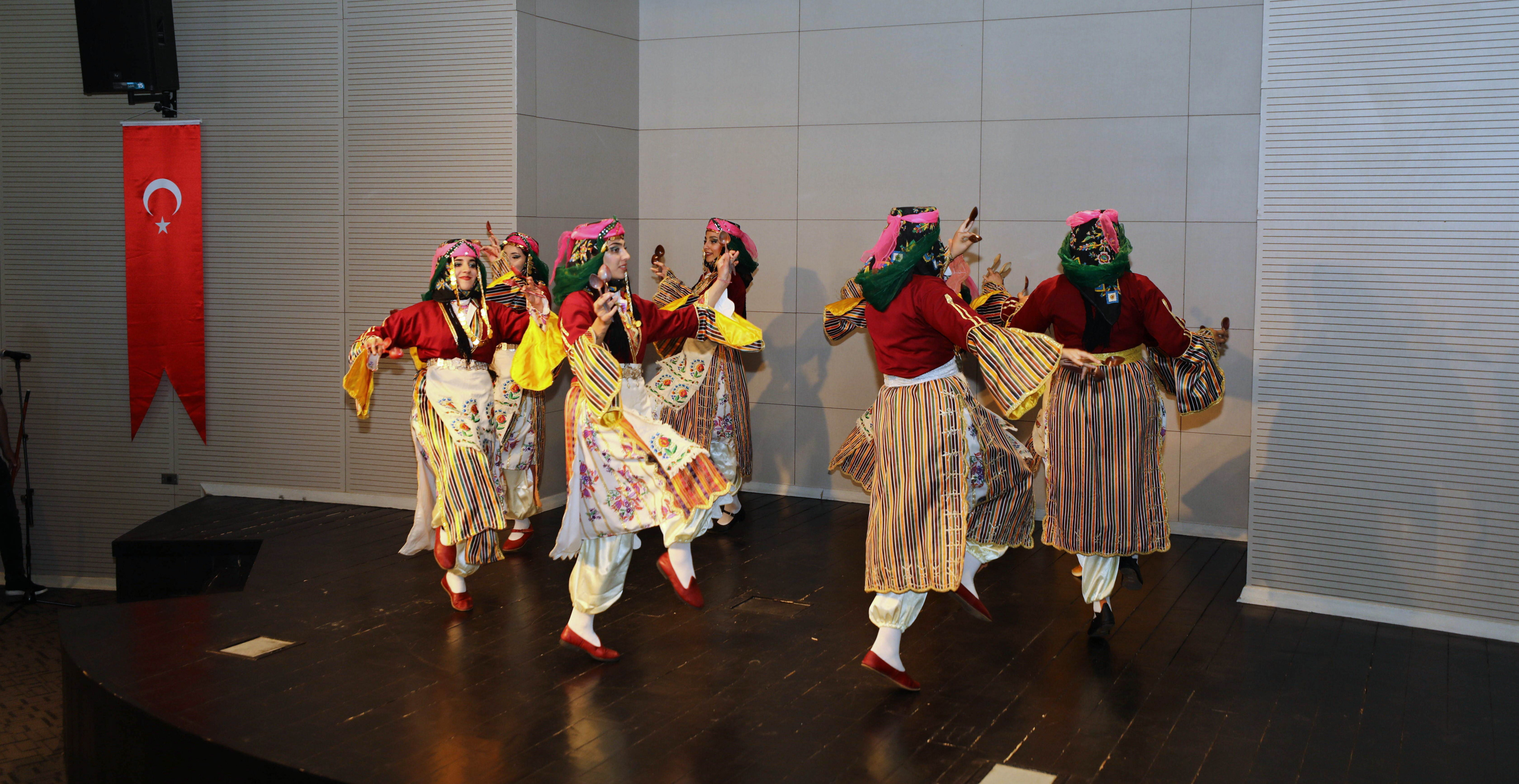 Mavera Kongre ve Sanat Merkezi Turkuaz Salonunda düzenlenen etkinlikte, GAÜN TMDK Dr. Öğretim Üyesi Neslihan Ertural ve konservatuvar öğrencileri Afyon Dinar yöresine ait kaşık halk danslarını ustalıkla icra etti. Afyon Dinar yöresinin karakteristik dans figürleri ve ritmik özellikleri, seyircilere Türk halk danslarının canlılığını ve coşkusunu hissettirdi.