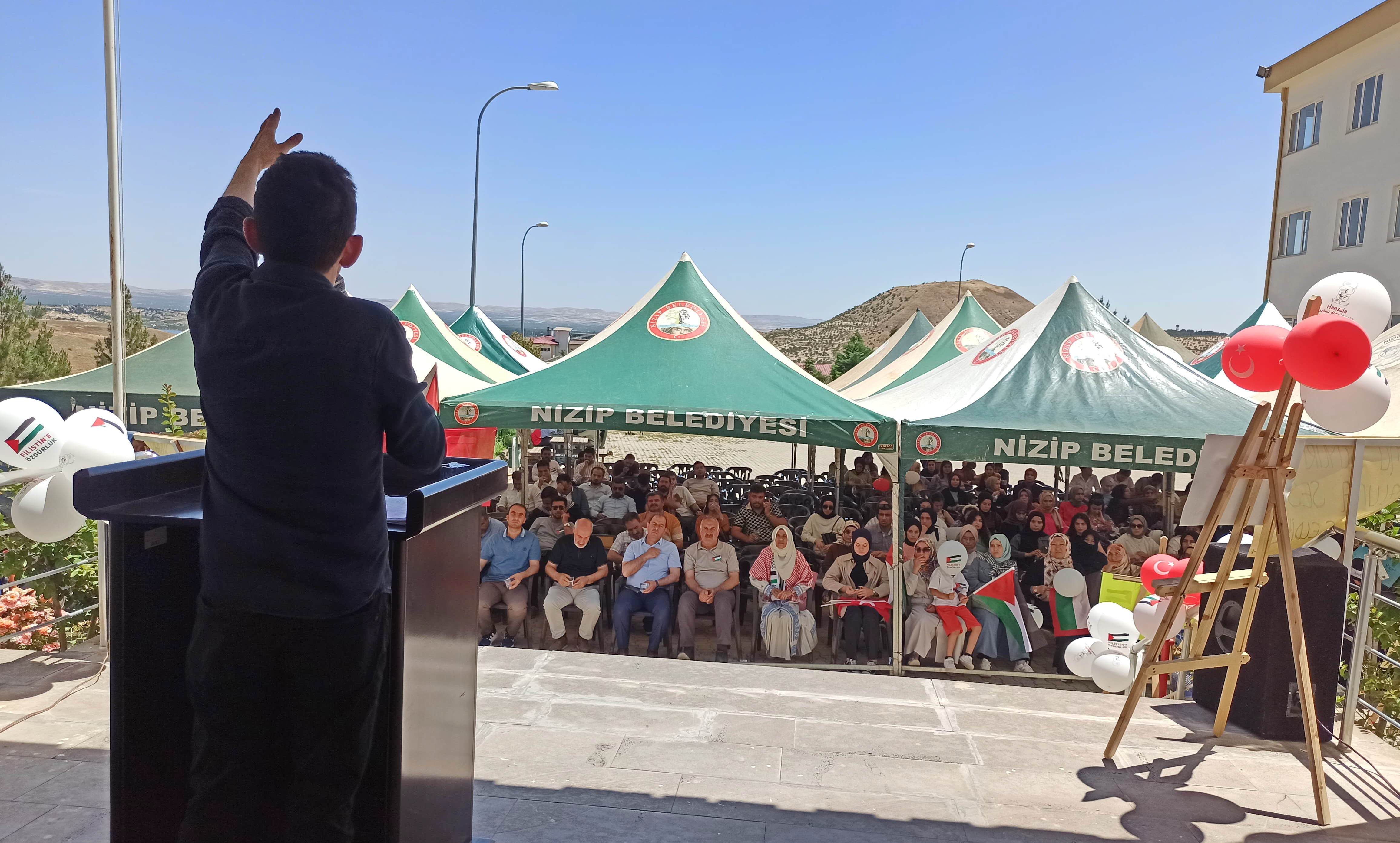 Gaziantep Üniversitesi (GAÜN) Nizip Yerleşkesinde İsrail’in 7 Ekim 2023’ten bugüne Filistin’in Gazze şeridinde uyguladığı soykırım ve katliamlar protesto edildi. Nizip Eğitim ve Dayanışma Derneği (NEDDER) ve Nizip İmam Hatip Liseleri Derneği (NİLDER) tarafından organize edilen Filistin’e Destek etkinliğinde, şiir ve ezgi dinletileri ile tiyatro gösterileri sergilendi. GAÜN Nizip Meslek Yüksekokulu ve Nizip Eğitim Fakültesi öğrenci, akademisyen ve idari personelinin de yoğun katılım gösterdiği…