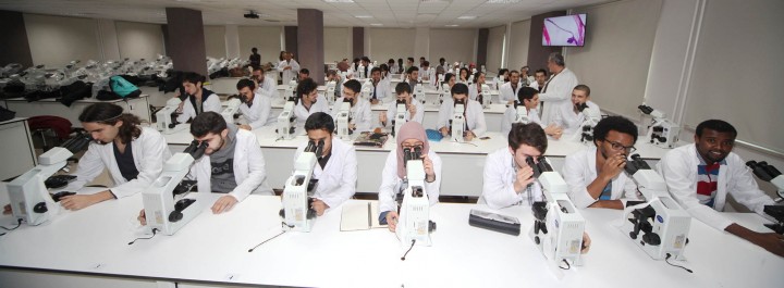 Öğrencilerimiz, Temel Tıp Bilimleri Binası’nda bulunan laboratuvarlarda ve 2. katta yer alan laboratuvarlarda pratiklerini yapmaktadır. Temel Tıp Bilimleri Bölümü binası ise toplam 8093,81 m2 alanda 75 ofis, 4 seminer salonu ve 34 farklı anabilim dalına ait laboratuvar ile donatılmıştır.
