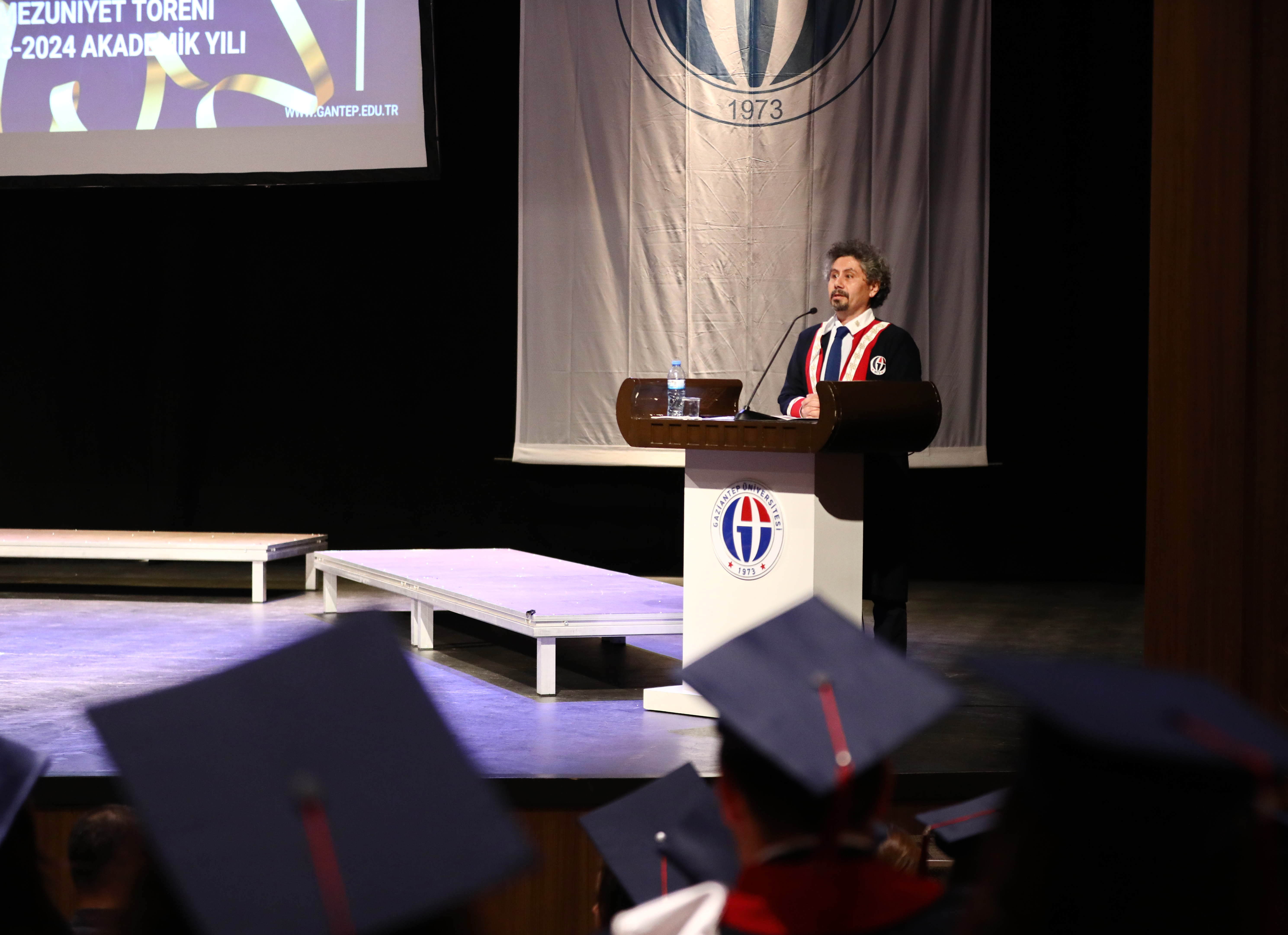 Mezuniyet programının açılış konuşmasını yapan GAÜN Rektör Yardımcısı Prof. Dr. Ayşe Balat, mezun olan gençlere hitap ederek önemli tavsiyelerde bulundu. Prof. Dr. Balat, “Öğrencilik döneminizde birçok zorlukla karşılaştınız. Mezuniyet sonrası çalışma hayatında da pek çok zorlukla karşılaşacaksınız. Ancak unutmayın, sorunlarınızın bir parçası olarak hayatınıza yön vermenizi ve gülümsemeyi hiçbir zaman ihmal etmeyin. Zorluklardan yılmayın. Muhammed Ali’nin dediği gibi, ‘Sizi yoran şey önünüzde tırmanacağınız dağ değil, ayakkabınızdaki çakıl taşlarıdır.’ Bu taşları fark edin, temizleyerek yolunuza devam edin. Kafanızda hayallerinizi, kalbinizde umutlarınızı taşıyarak koşun.”