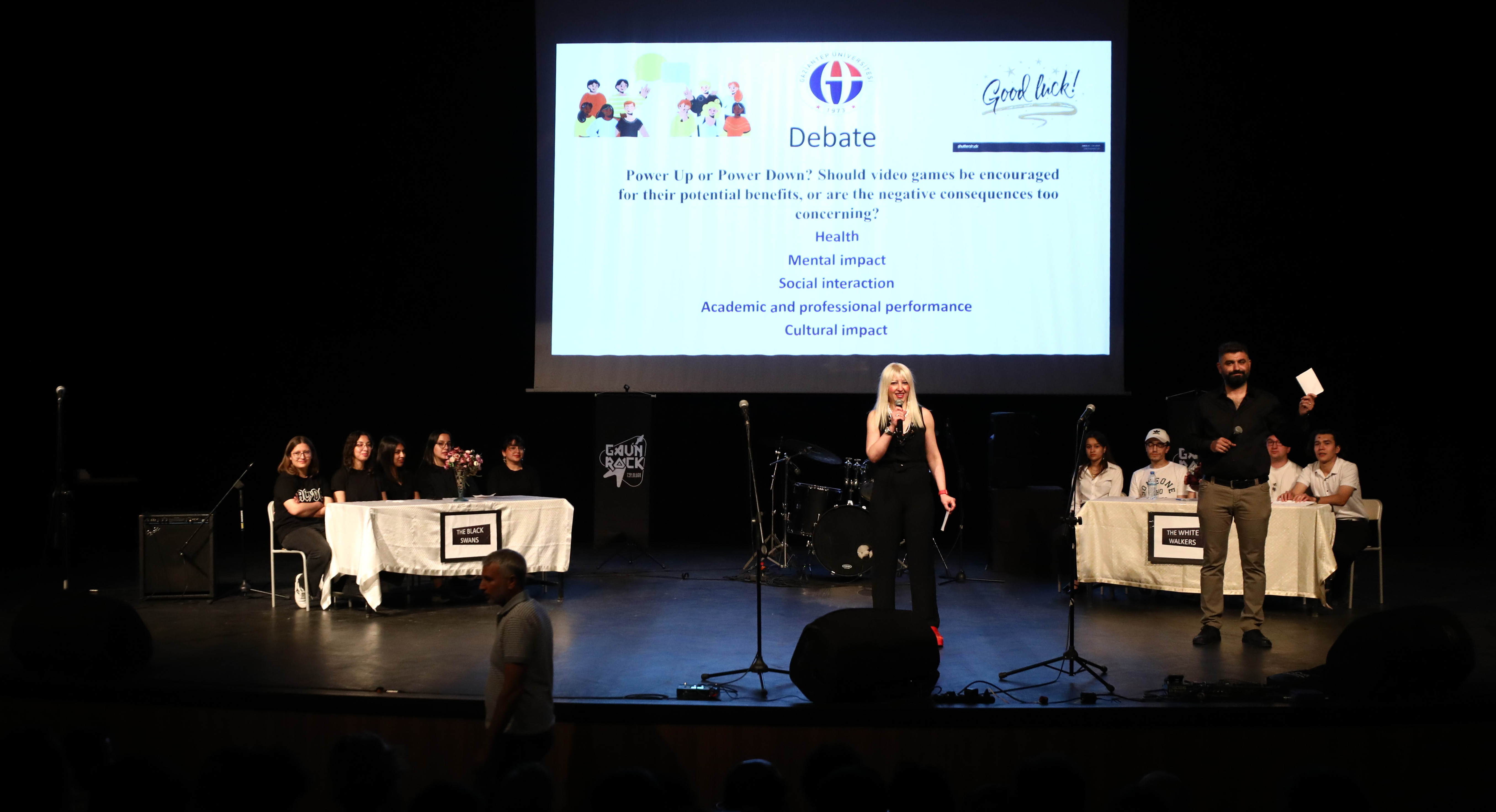Gaziantep Üniversitesi (GAÜN) Yabancı Diller Yüksekokulu (YDYO), 2023-2024 eğitim-öğretim yılını Atatürk Kültür Sahnesi'nde düzenledikleri yıl sonu etkinliği ile tamamladı. Öğrencilerin başarılarını ve yıl boyunca edindikleri dil becerilerini sergiledikleri etkinlikte, renkli ve heyecan dolu sahne performansları izleyicilere unutulmaz anlar yaşattı. Etkinlik, Öğr. Gör. Cristina Manea Gültekin ve Öğr. Gör. Mehmet Emrah Şirinkaya'nın çalıştırdığı öğrencilerin münazarasıyla başladı. Ardından, Öğr. Gör. Zeynep Aydıngüler…
