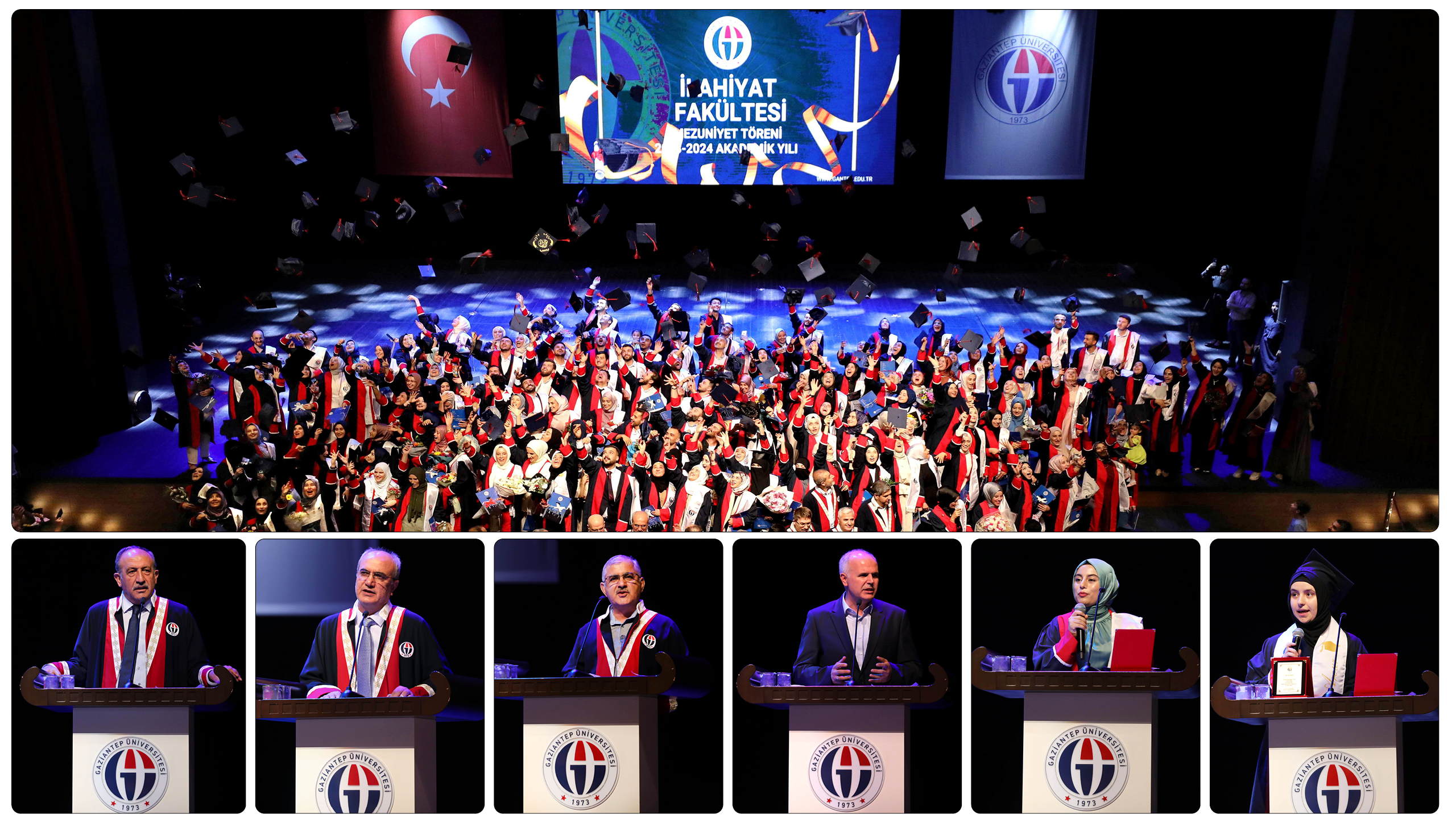 Gaziantep Üniversitesi (GAÜN) İlahiyat Fakültesi 2023-2024 eğitim-öğretim yılı mezuniyet töreninde 237 öğrenci mezun olmanın sevincini yaşadı.