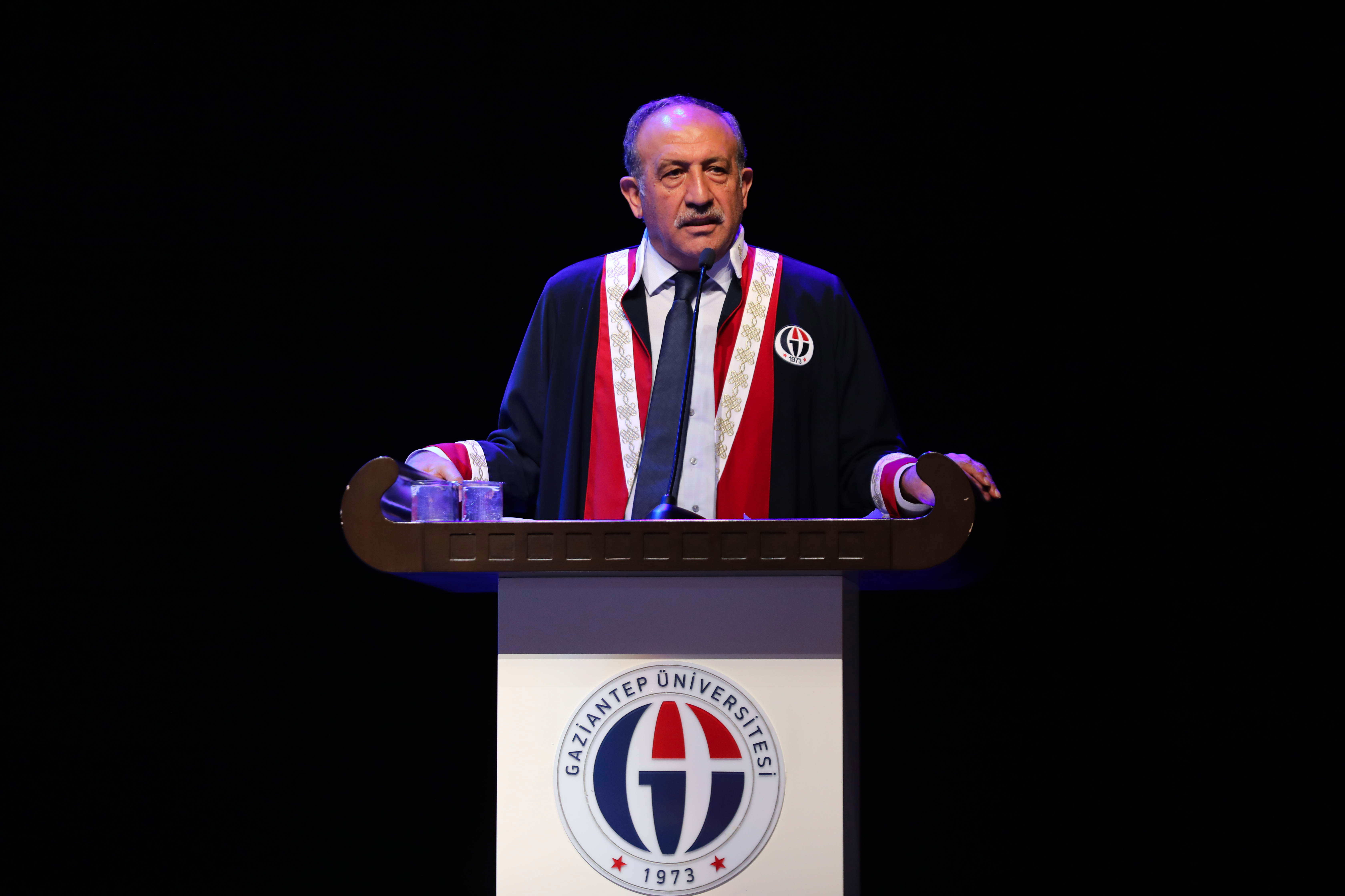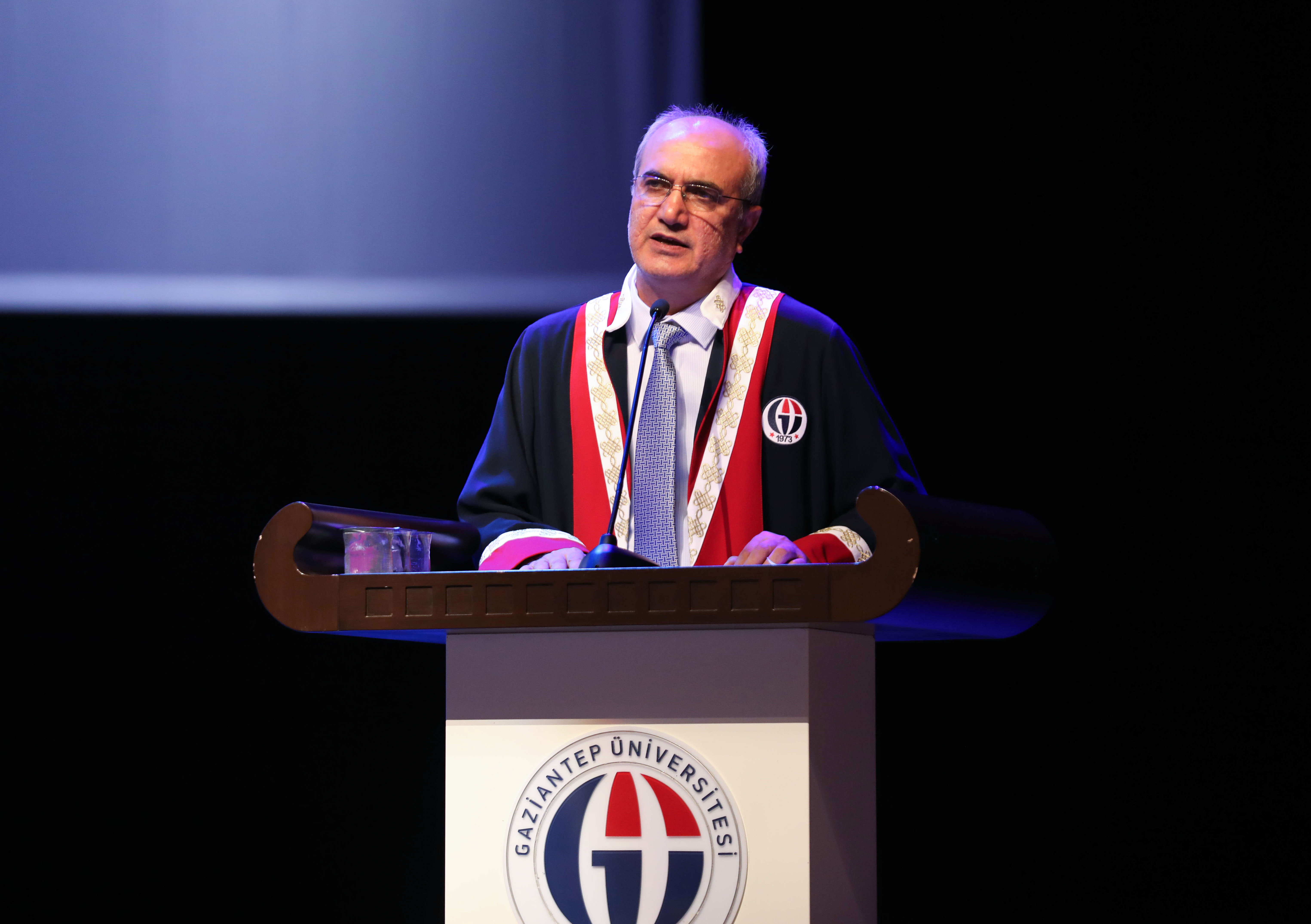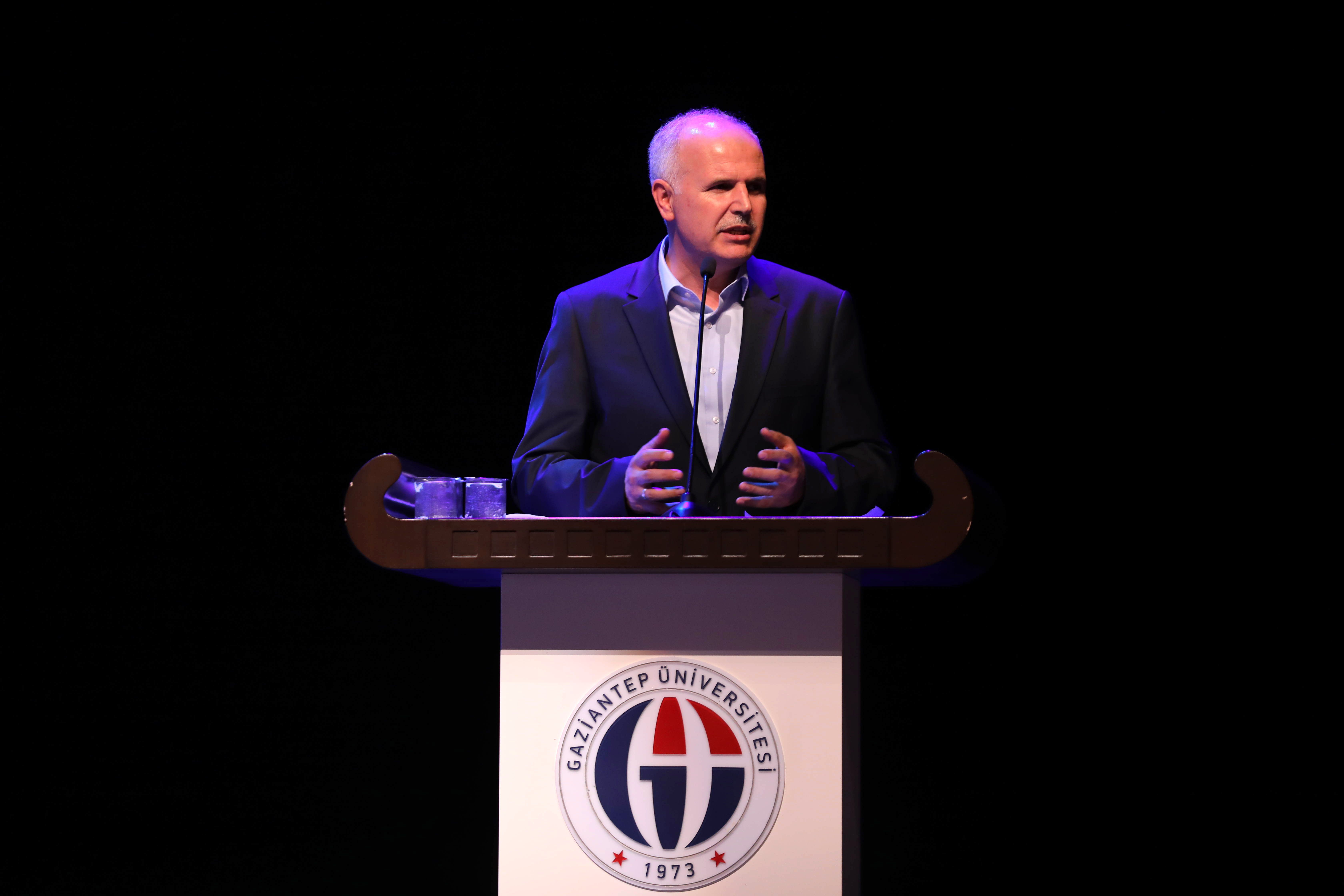 Törenin açılış konuşmasını yapan GAÜN Rektör Yardımcısı Prof. Dr. Mustafa Sarıbıyık, Gaziantep Üniversitesi İlahiyat Fakültesinin hem nitelik hem de nicelik bakımından önemli bir yer teşkil ettiğini vurguladı. “İlmin başı acıdır, sonu tatlıdır” diyen Prof. Dr. Sarıbıyık konuşmasının devamında şunları belirtti: “Biz ilmin sonuna henüz ulaşmadık. İlim, irfan ve ahlak yolculuğumuz devam ediyor. İslam’ın genel ilkeleri doğrultusunda inanç, ibadet ve ahlak prensipleriyle hareket ederek, ahlakı yeryüzünde yeniden hakim kılma düşüncesiyle ruhu ve bedeni bütünleştirerek dengeli bir şekilde hem kendi değerlerimizi yaşayacak hem de toplumu örnek hareketlerimizle örnek olmaya çağırmaya devam edeceğiz.”