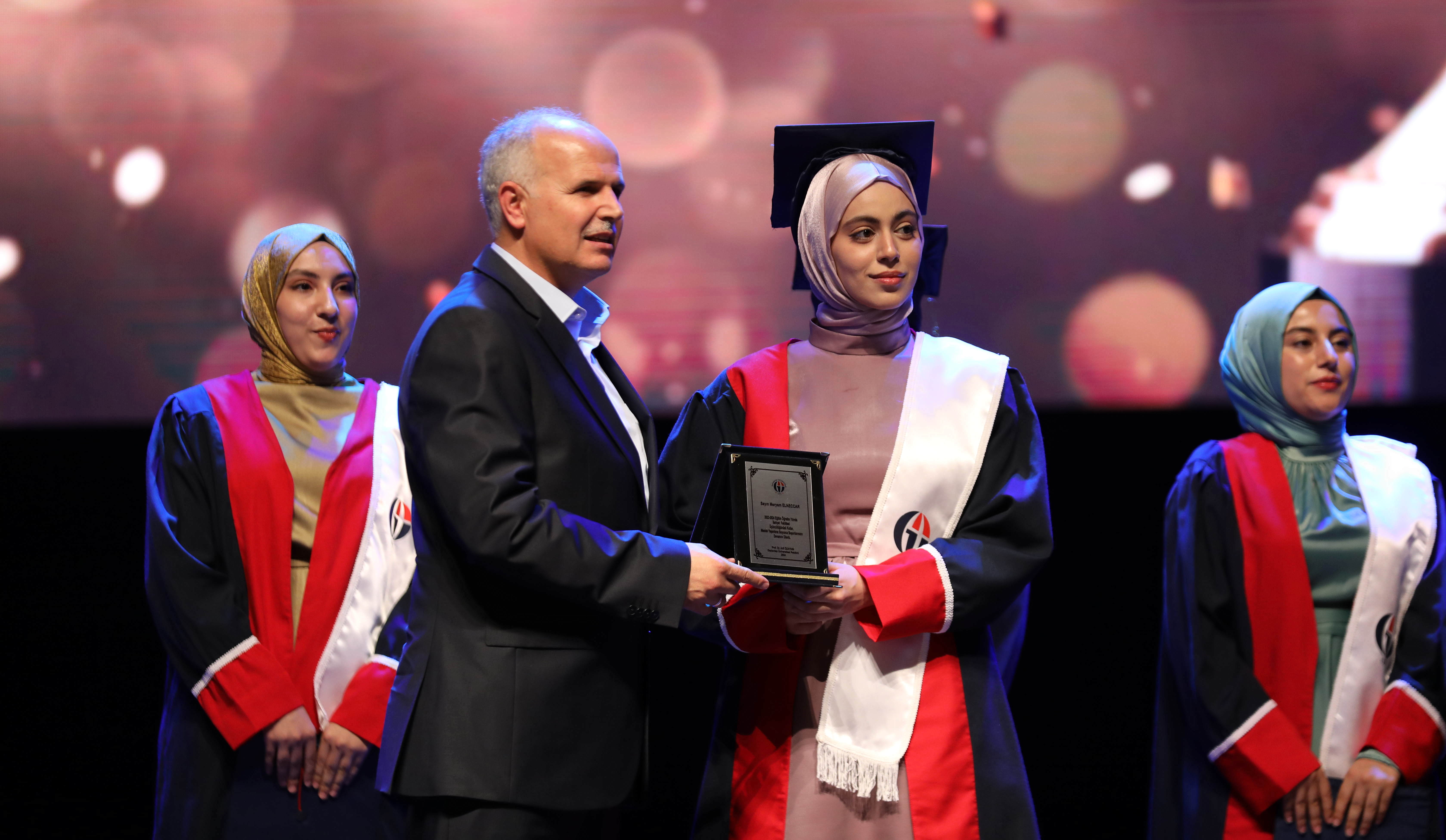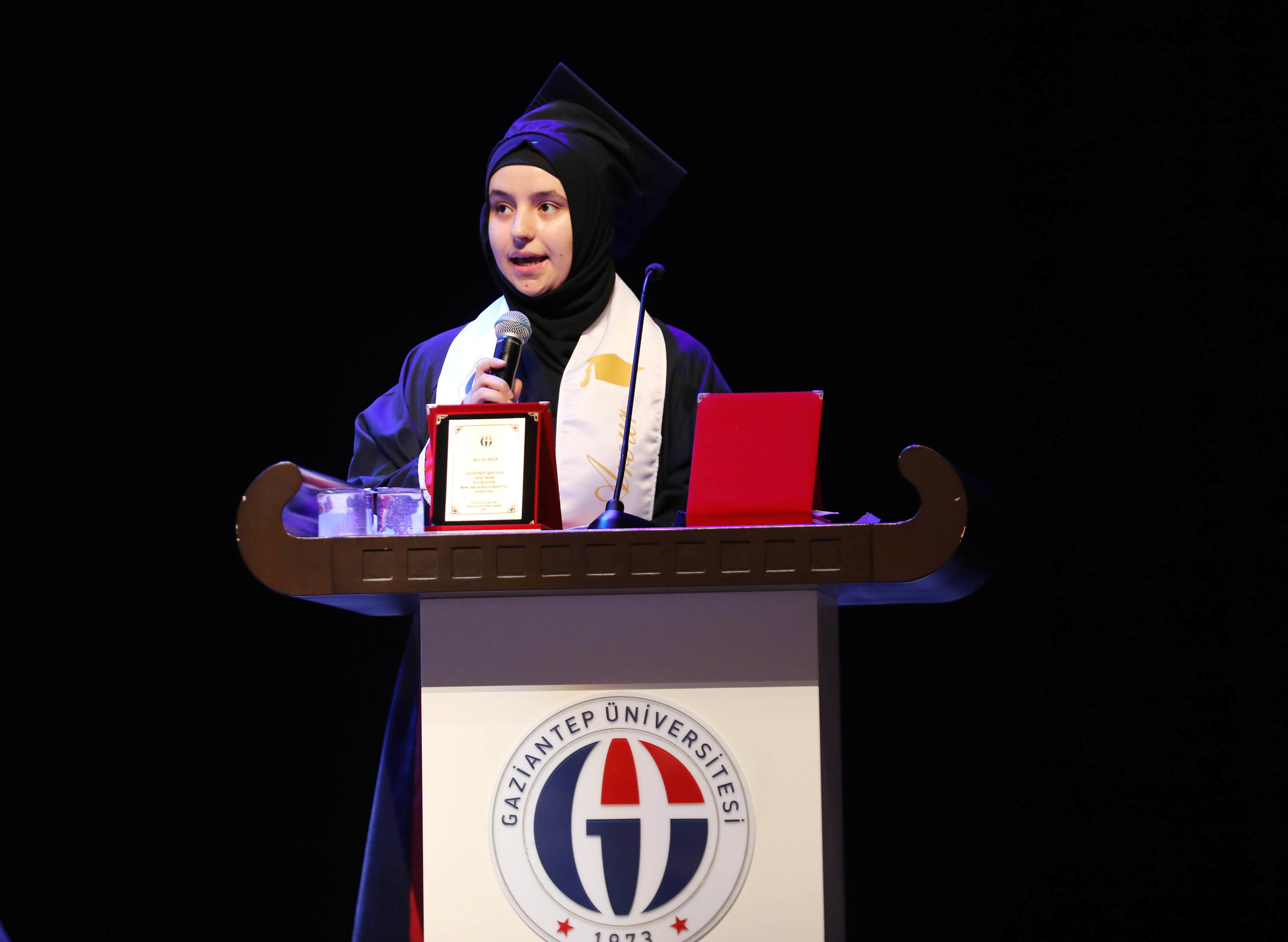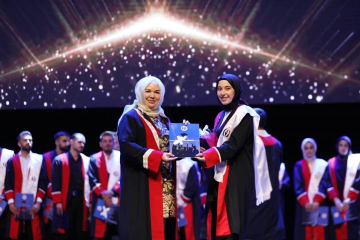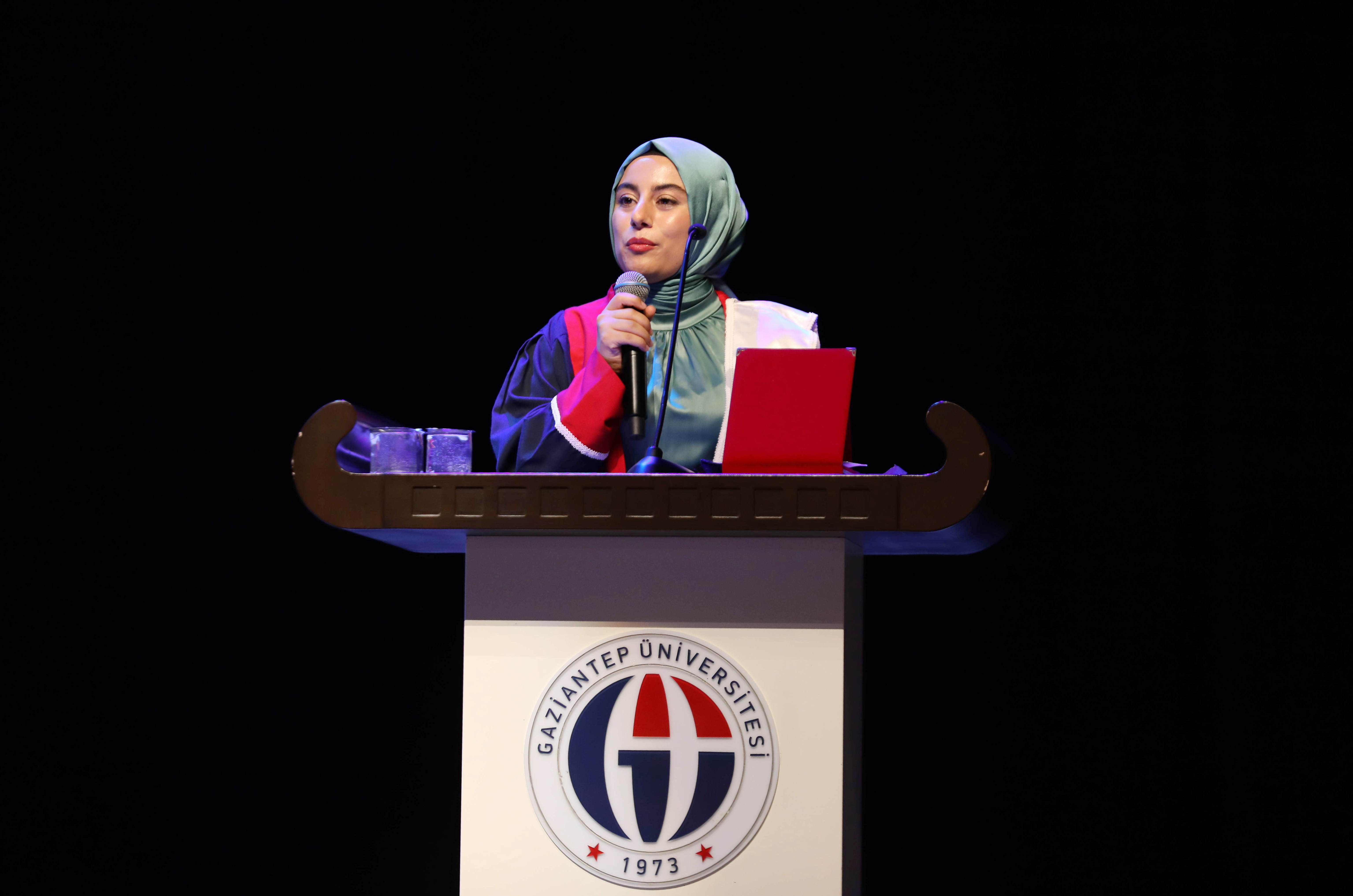 Duygu ve düşüncelerini paylaşan GAÜN İlahiyat Fakültesi Türkçe Programı Birincisi Sakine Haraç, üniversite hayatının hayalleri gerçeğe dönüştürmek için bir fırsat sunduğu gibi birçok zorluğu da beraberinde getirdiğini belirterek, “Bizler cesaretle bu zorlukların üstesinden geldik ve bugün burada başarı hayallerimizi paylaşmanın heyecanını yaşıyoruz.” dedi.