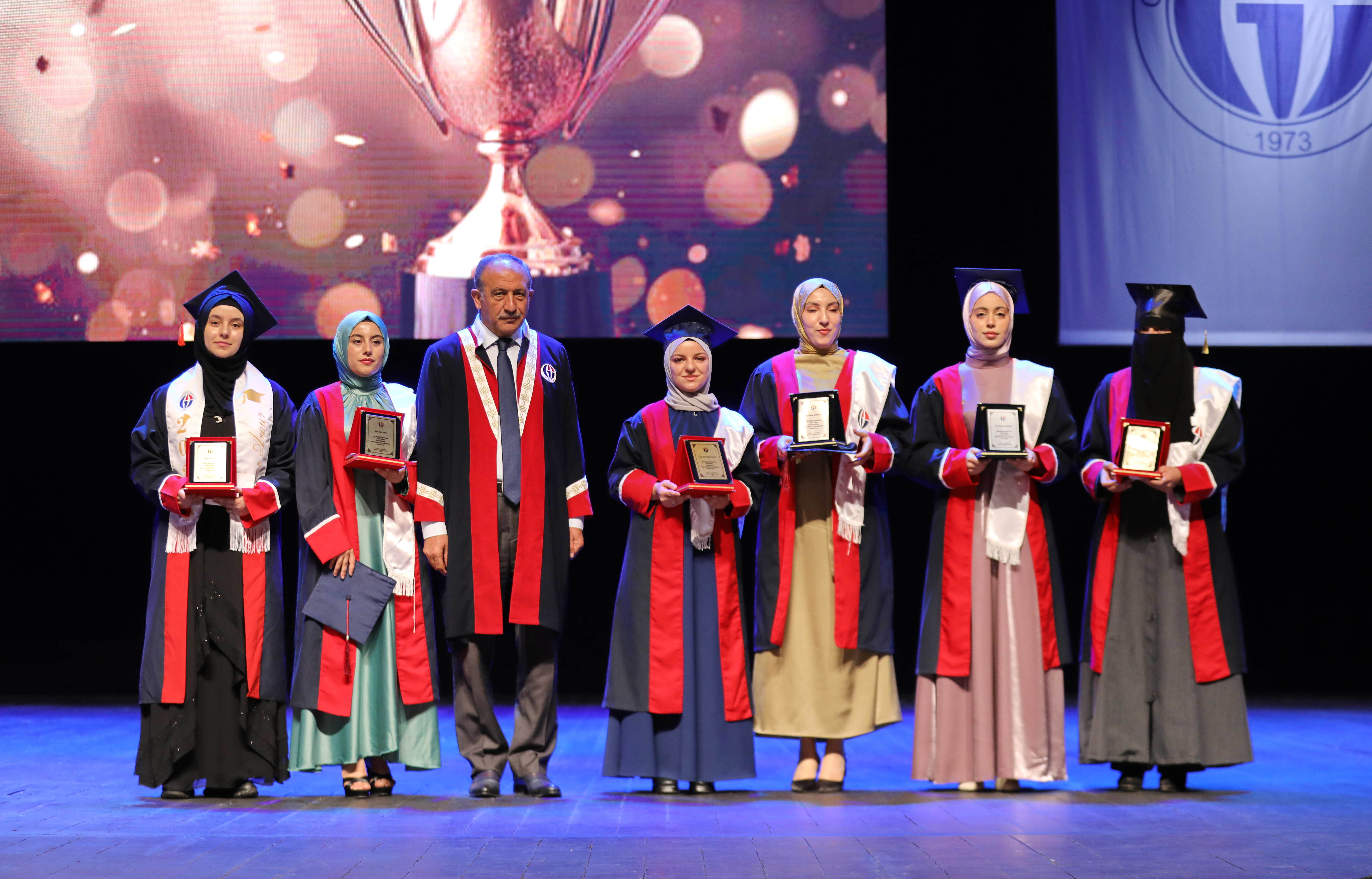 Açılış konuşmaları sonrasında İlahiyat Fakültesinden derece ile mezun olan öğrencilere plaketleri verildi. Mezuniyet kütüğüne plaket çakılması ve öğrencilere diplomalarının verilmesi ile devam eden program kep atmayla son buldu.