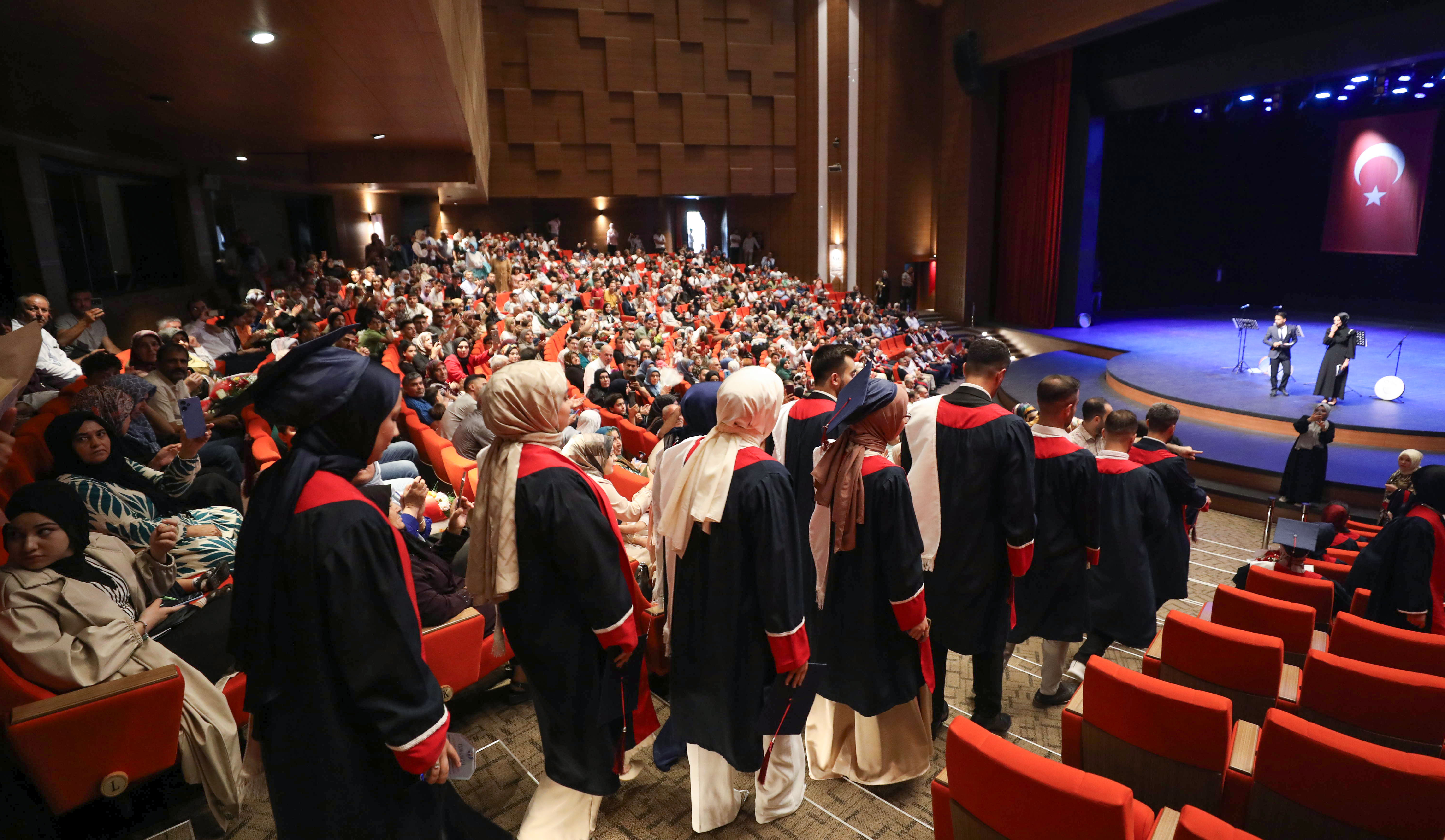 GAÜN Mavera Kongre ve Sanat Merkezinde gerçekleştirilen mezuniyet programı, İlahiyat Fakültesi öğrencisi Halil İbrahim Şahan’ın Kur’an-ı Kerim tilavetiyle başladı.