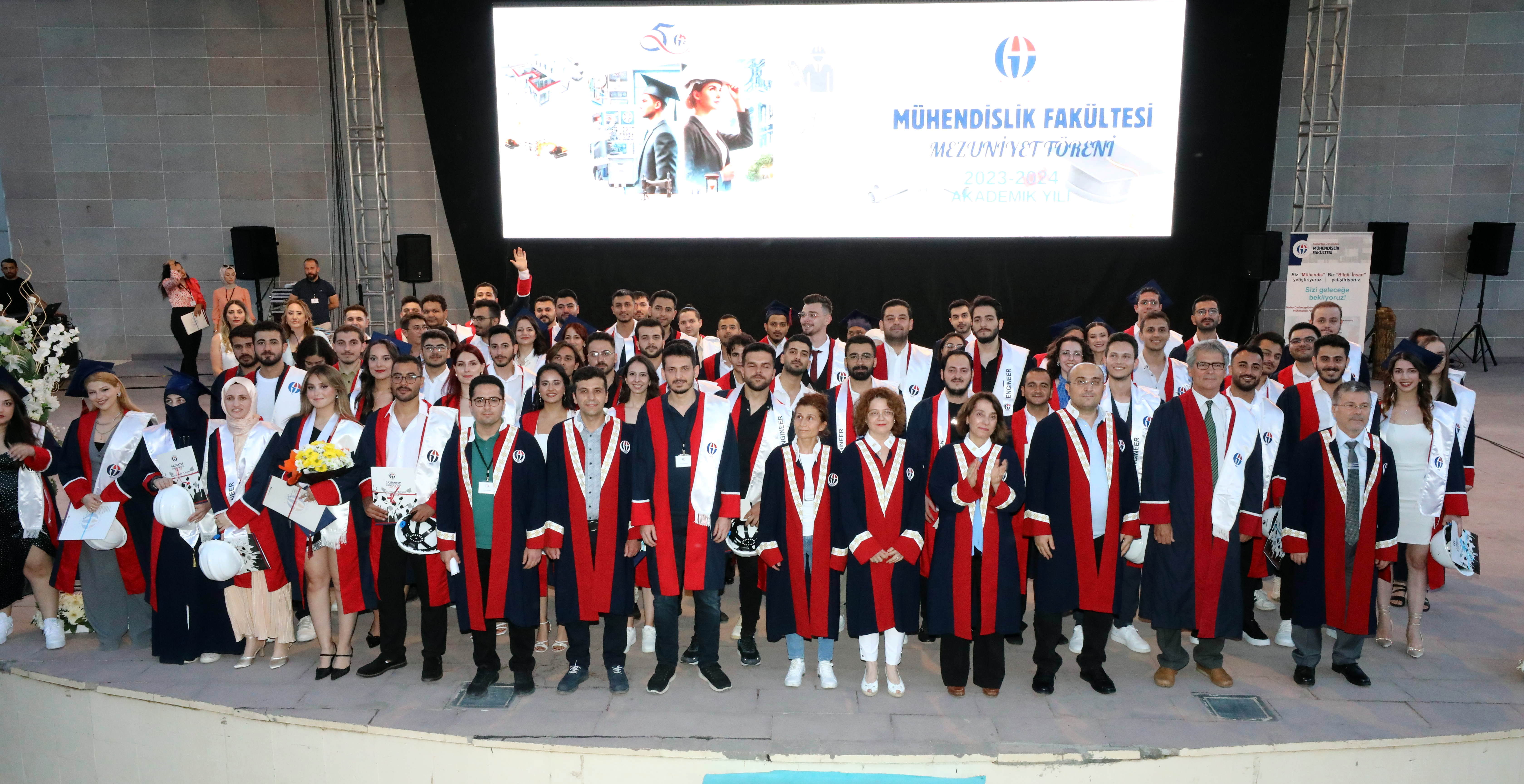 Gaziantep Üniversitesi (GAÜN) Mühendislik Fakültesi 2023-2024 eğitim öğretim döneminde mezun olmaya hak kazanan öğrenciler gerçekleştirilen tören ile belgelerini aldı. GAÜN Mavera Açık Hava Sahnesinde düzenlenen törende öğrenciler mezuniyetlerini coşkuyla kutladı.