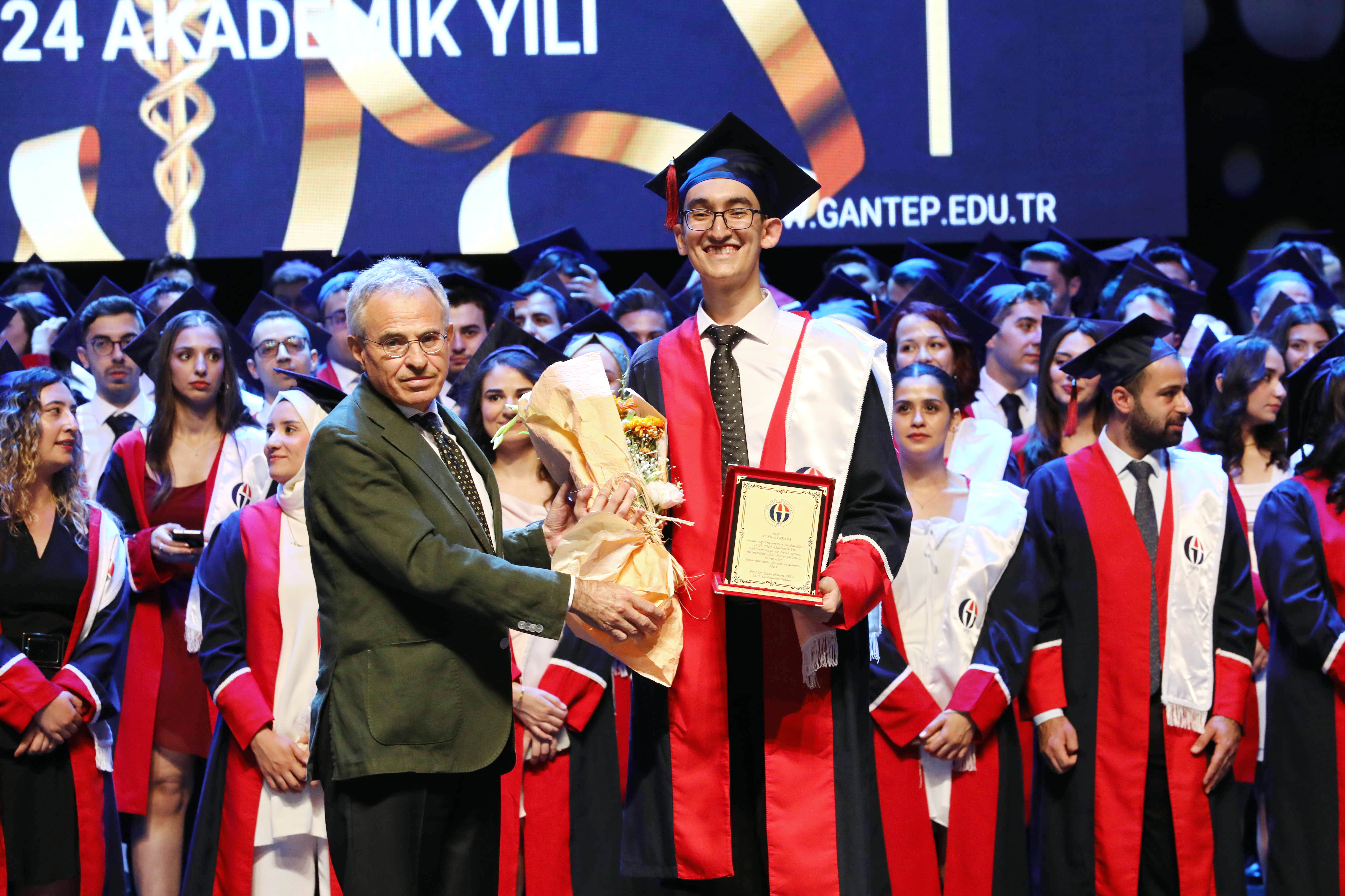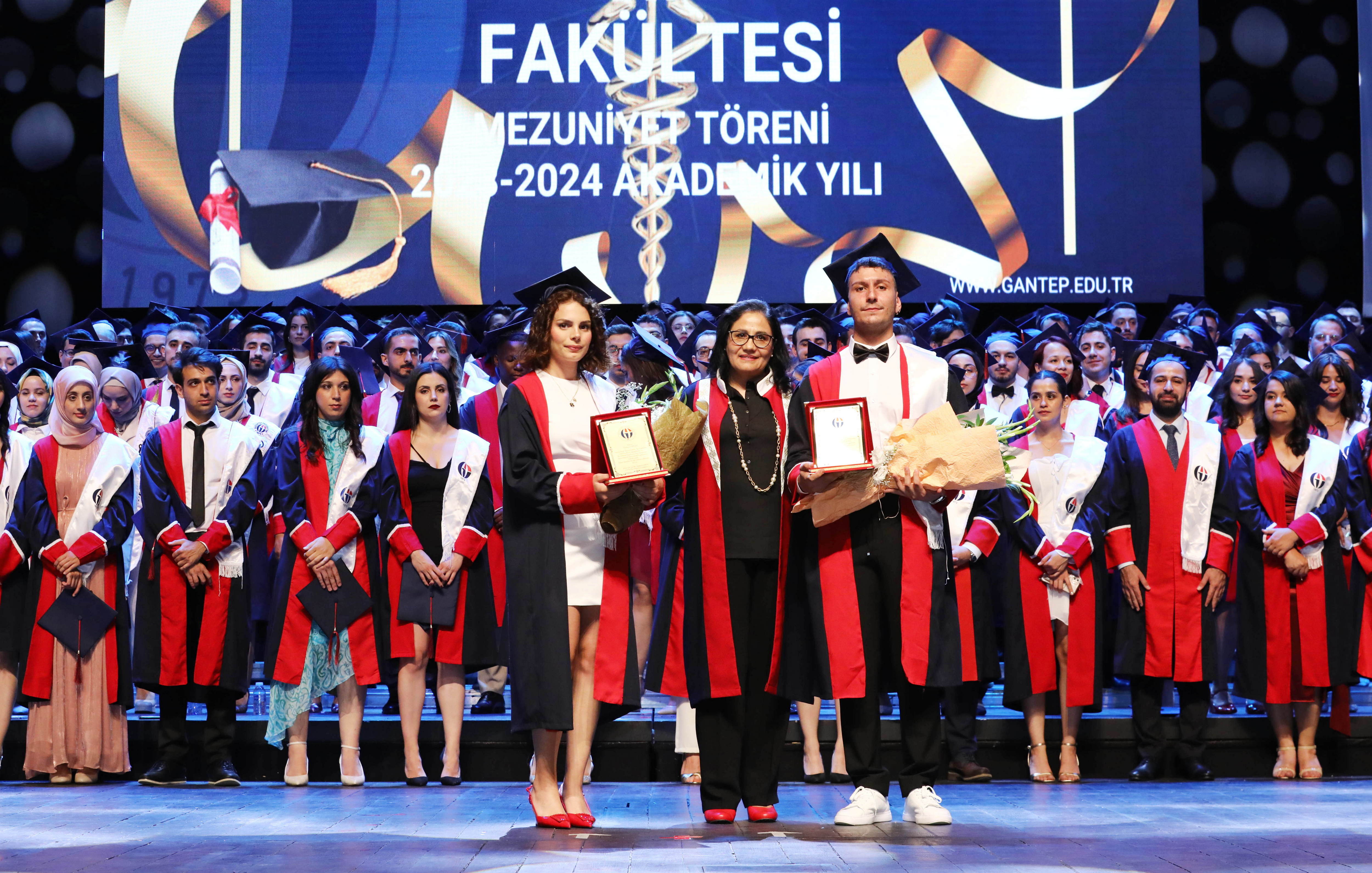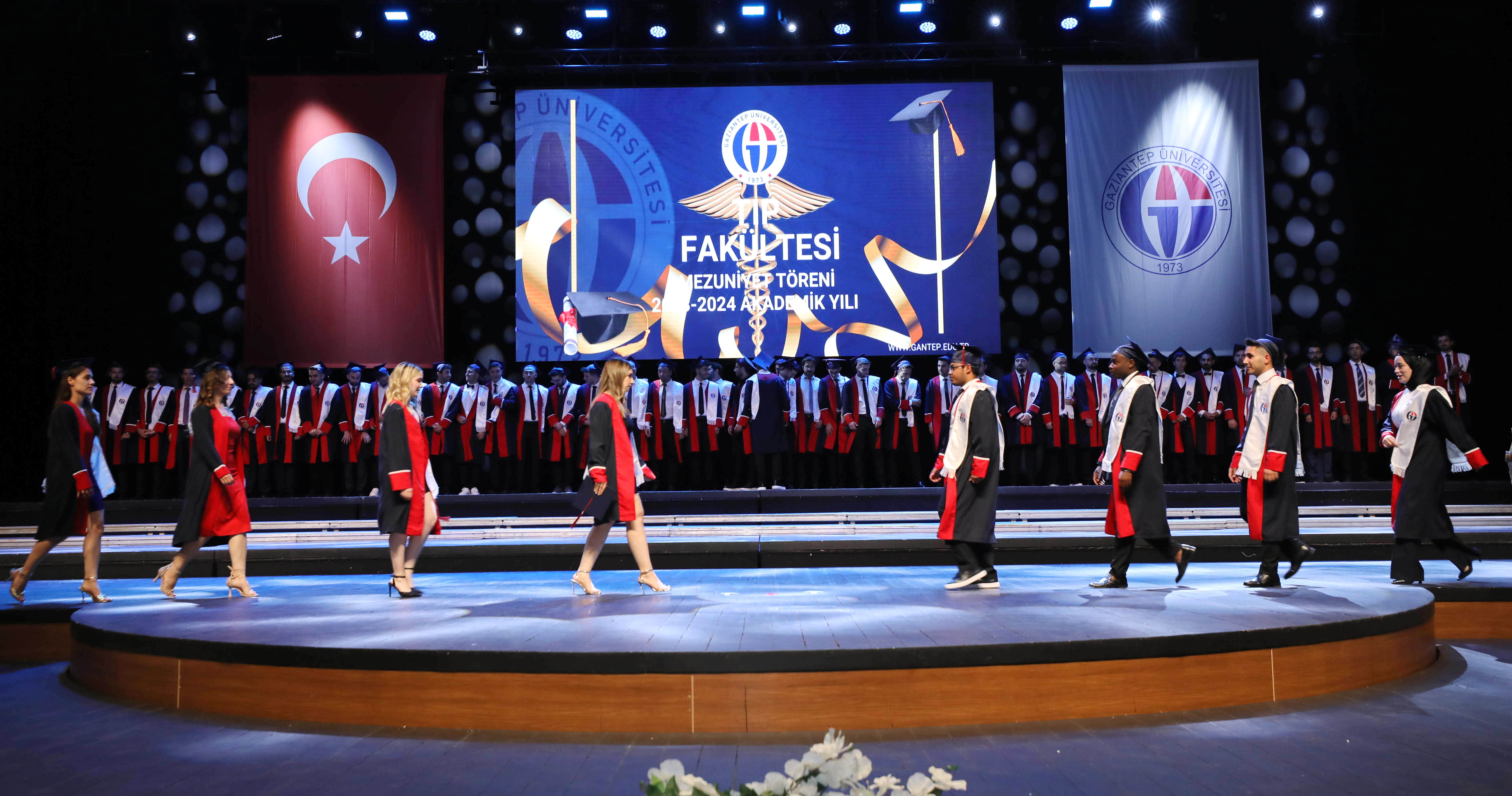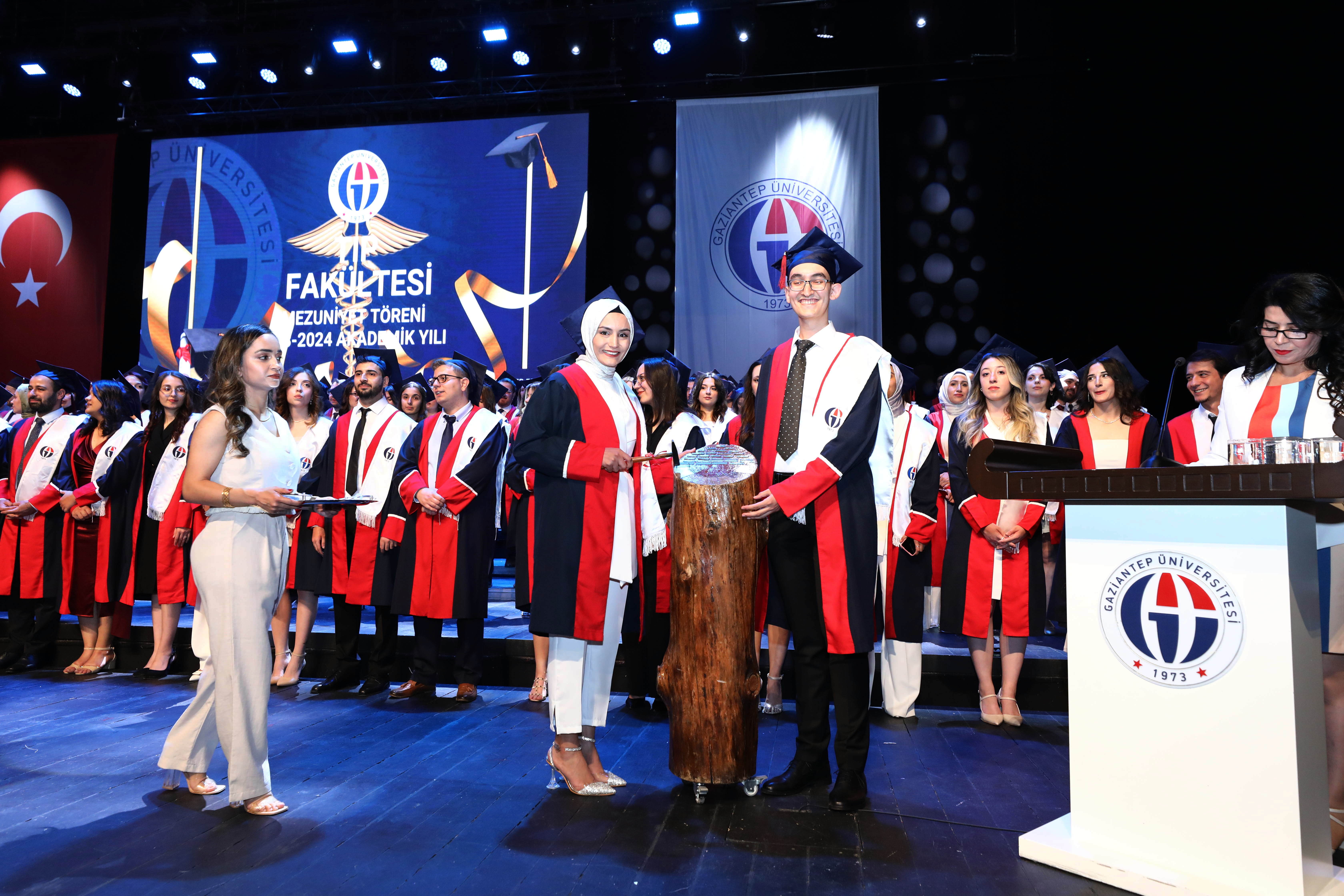Gaziantep Üniversitesi (GAÜN) Tıp Fakültesi 2023-2024 eğitim-öğretim yılı mezuniyet töreni Mâvera Kongre ve Sanat Merkezinde gerçekleşti. GAÜN Tıp Fakültesi’nin Türkçe ve İngilizce eğitimlerini tamamlayarak mezun olan 280 doktor, ‘Hipokrat Yemini’ ederek hekimliğe ilk adımlarını attı.
