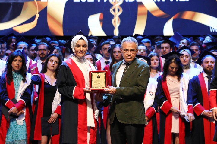 Gaziantep Üniversitesi’nin 31. Dönem birincisi olmaktan onur duyduğunu ifade eden Fakülte Birincisi Dr. Büşra Baygün de, “Biz mezun oluyoruz ve her birimiz farklı şehirlere dağılıp insanlara şifa olacağız. Beyaz önlüklere sahip olmak için bu fakülteye 6 yıldan daha fazlasını verdik. Diliyoruz ki emeğimizin karşılığının verildiği, şiddete uğramadan yaşayacağımız bir meslek hayatımız olsun.” dedi.
