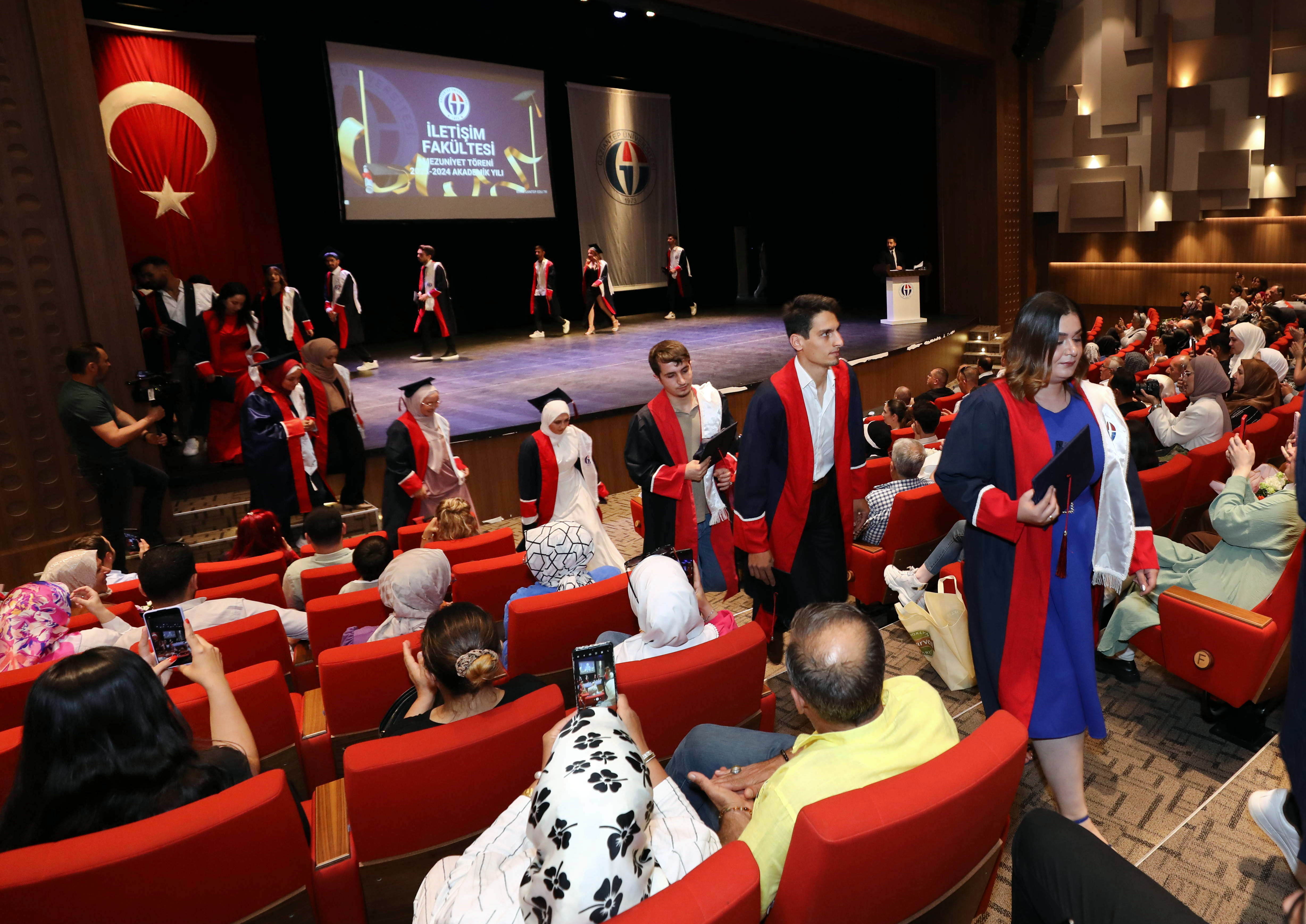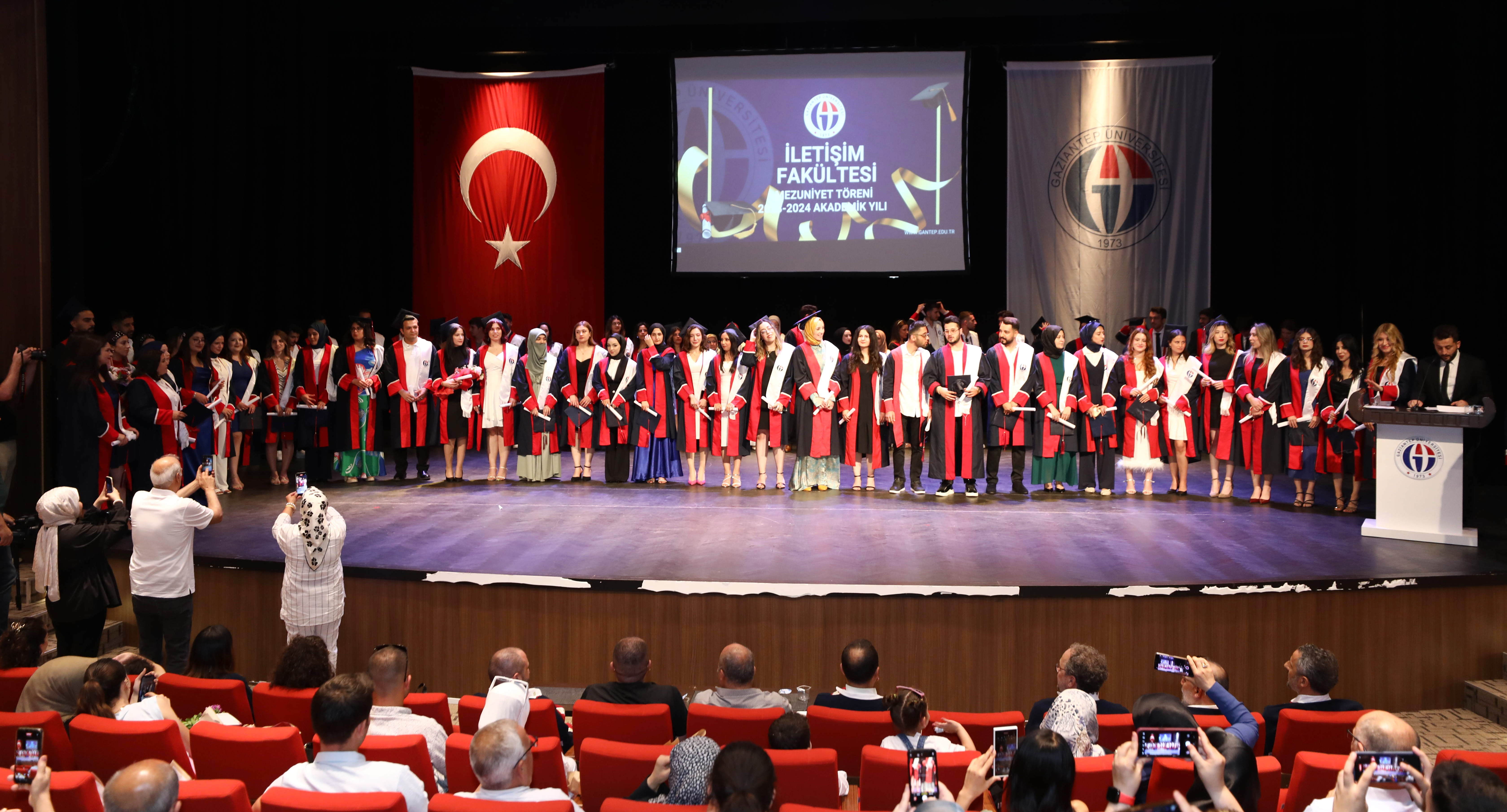 Gaziantep Üniversitesi (GAÜN) İletişim Fakültesi 2023-2024 eğitim-öğretim yılı mezuniyet töreni, GAÜN Atatürk Kültür Sahnesinde gerçekleştirildi. GAÜN İletişim Fakültesinden mezun olan öğrenciler düzenlenen tören ile diplomalarını aldı.