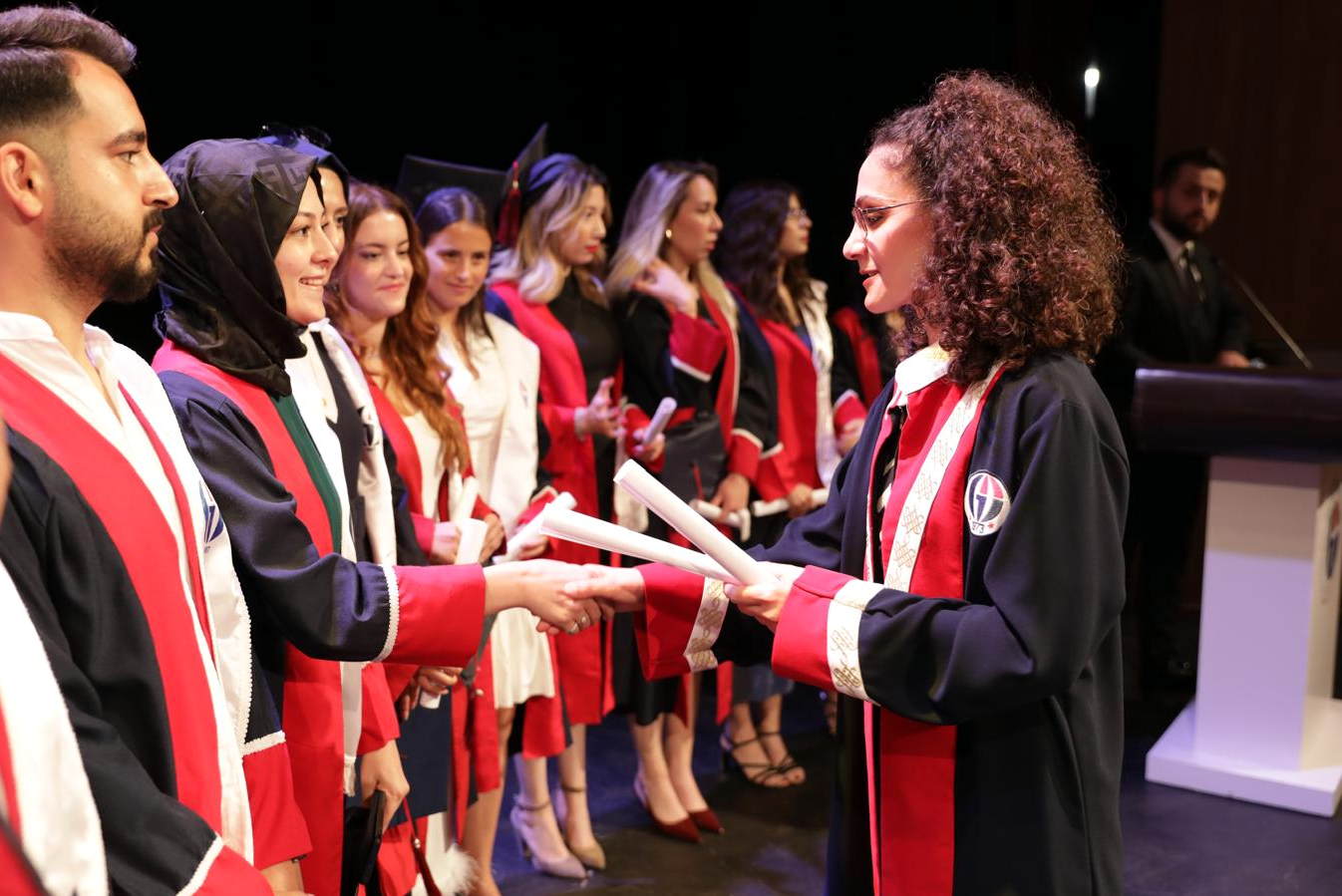 Konuşmaların sonrasında, İletişim Fakültesinde dereceye giren öğrencilere ve mezunlara diploma ile ödülleri takdim edildi. Tören, öğrencilerin keplerini havaya atmasıyla sona erdi.