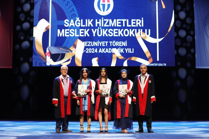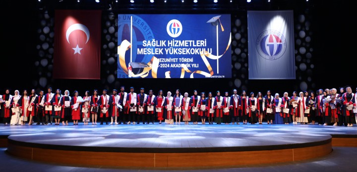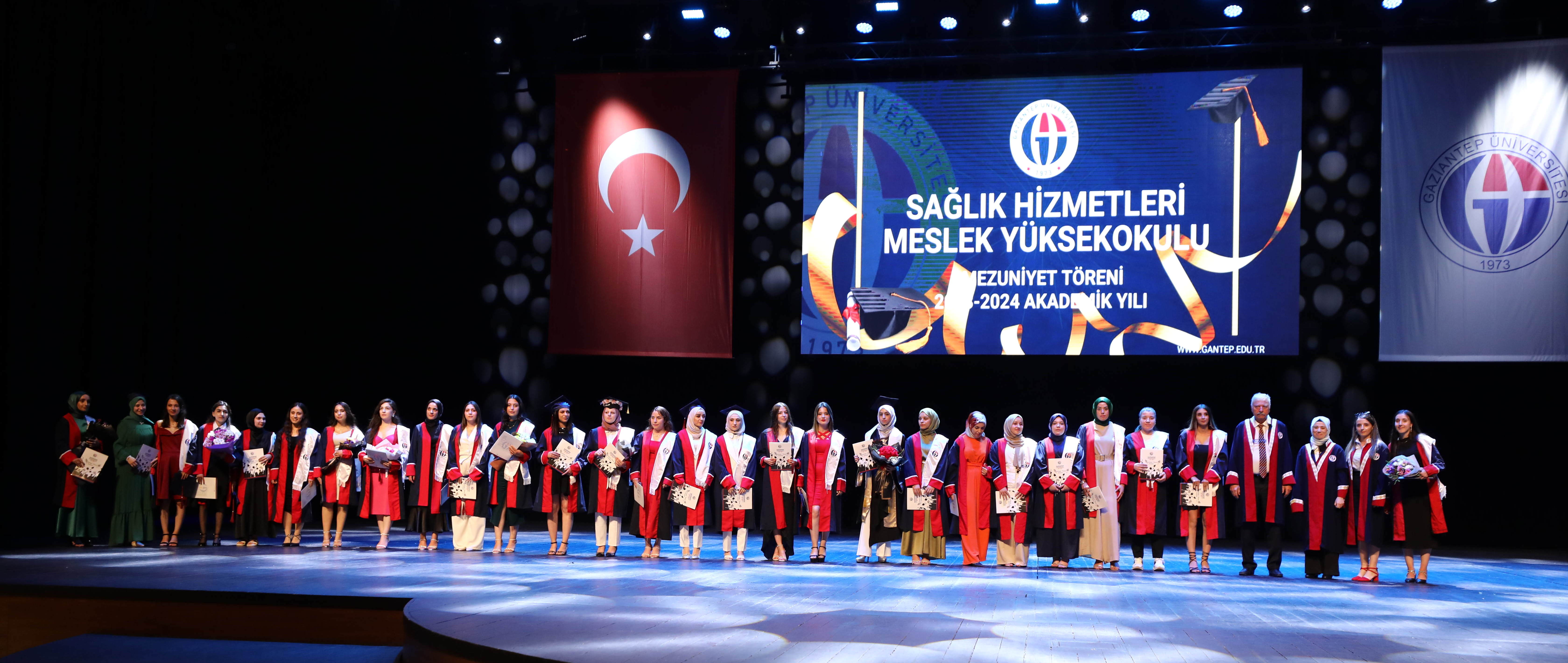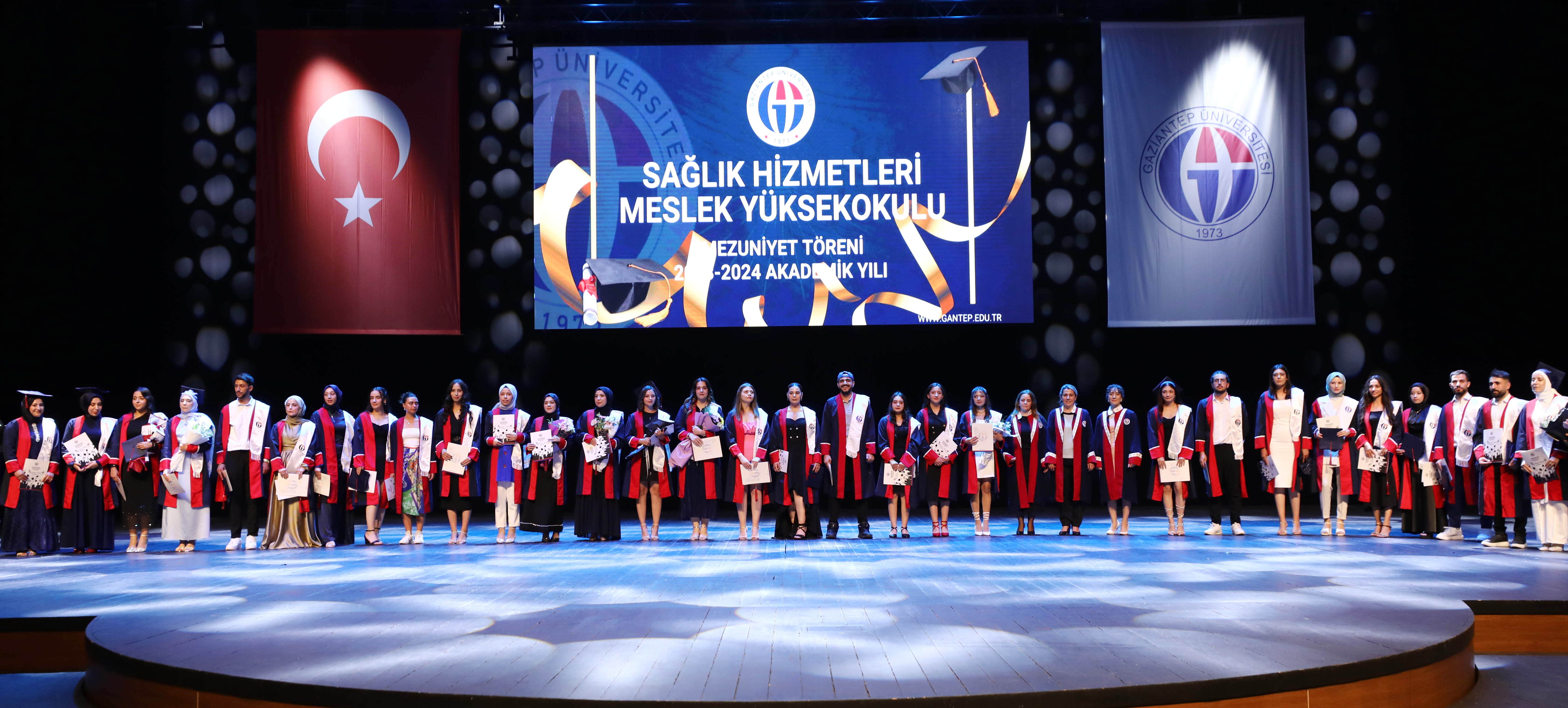 Gaziantep Üniversitesi (GAÜN)  Sağlık Hizmetleri Meslek Yüksekokulu 2023-2024 eğitim-öğretim yılı mezuniyet töreni GAÜN Mavera Kongre ve Sanat Merkezinde gerçekleşti. Mezuniyet törenine katılan öğrenciler, aileleri ve akademisyenler mezuniyet sevincini birlikte yaşadı.