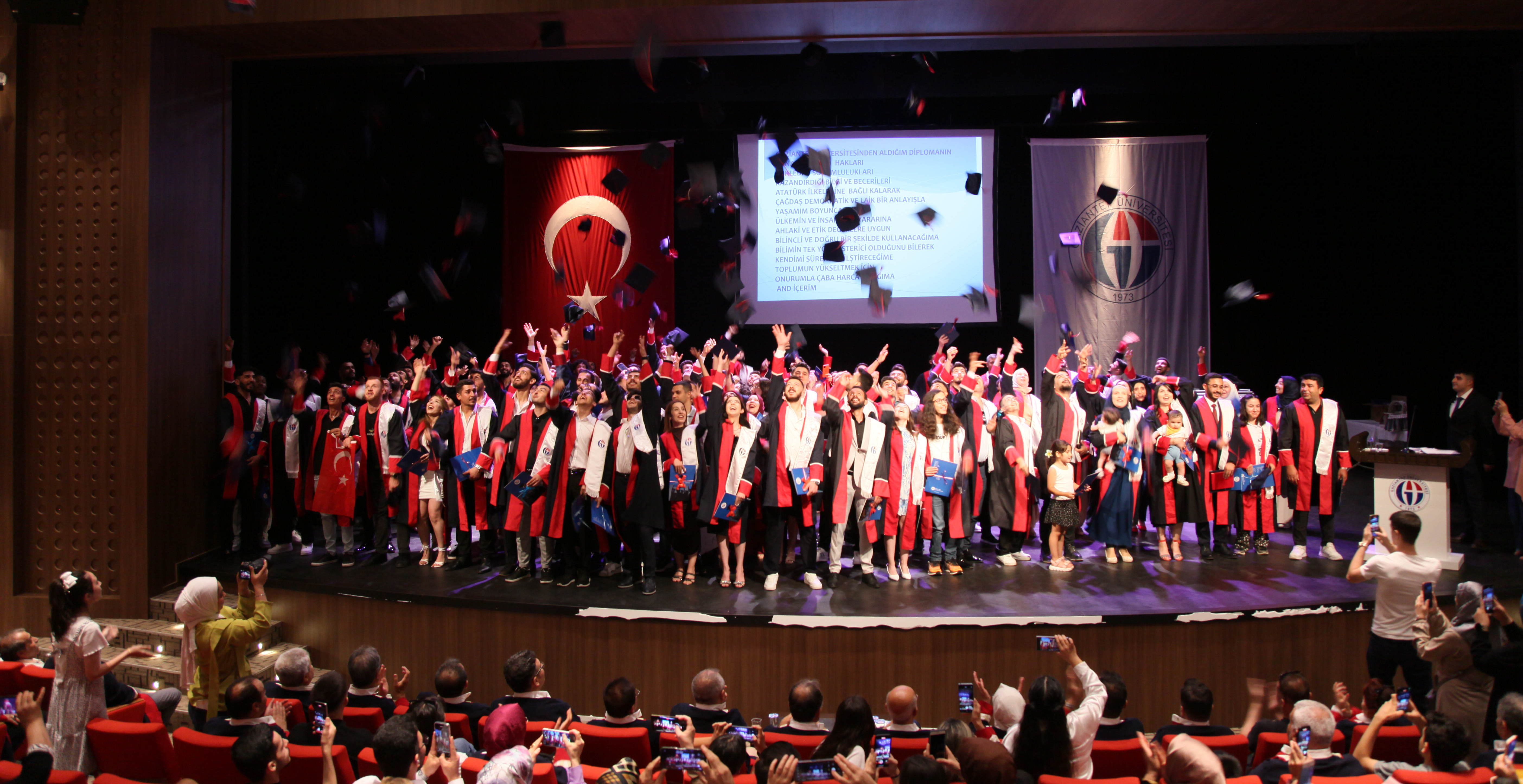 Gaziantep Üniversitesi (GAÜN) Fen Edebiyat Fakültesi 2023-2024 eğitim-öğretim yılı sonunda eğitimlerini başarıyla tamamlayan öğrenciler, gerçekleştirilen tören ile mezuniyet belgelerini aldı. GAÜN Mavera Kongre ve Sanat Merkezinde gerçekleştirilen mezuniyet töreninin açılışında konuşan GAÜN Rektör Yardımcısı Prof. Dr. Mustafa Sarıbıyık, mezun öğrencilerin Gaziantep Üniversitesinde kendi alanlarında çok değerli bilgiler edindiklerini söyledi. Prof. Dr. Sarıbıyık, “Hayatınızın önemli bir kesimini, gençliğinizin önemli bir bölümünü…