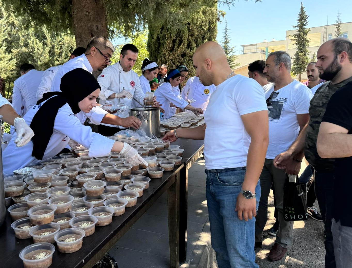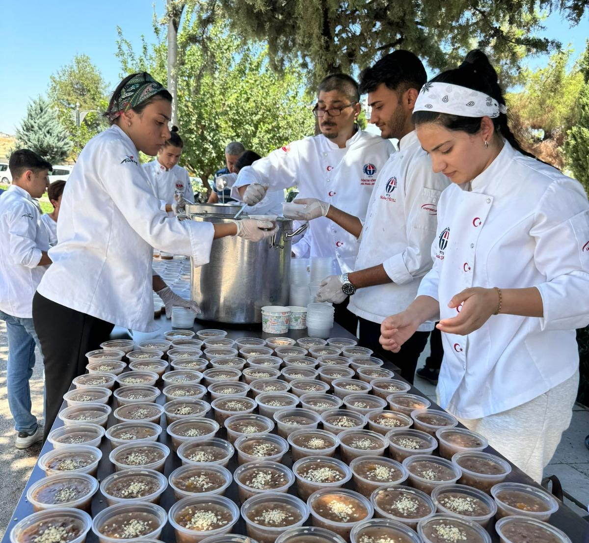 Gaziantep Üniversitesi (GAÜN) Turizm ve Otelcilik Meslek Yüksekokulu, Muharrem ayı dolayısıyla anlamlı bir etkinliğe imza attı. Birlik, beraberlik ve paylaşmanın en güzel örneklerinin sergilendiği etkinlikte, Gaziantep MASAT-DER Aşçılar Derneği ile END Yemek sponsorluğunda aşure dağıtımı gerçekleştirildi.