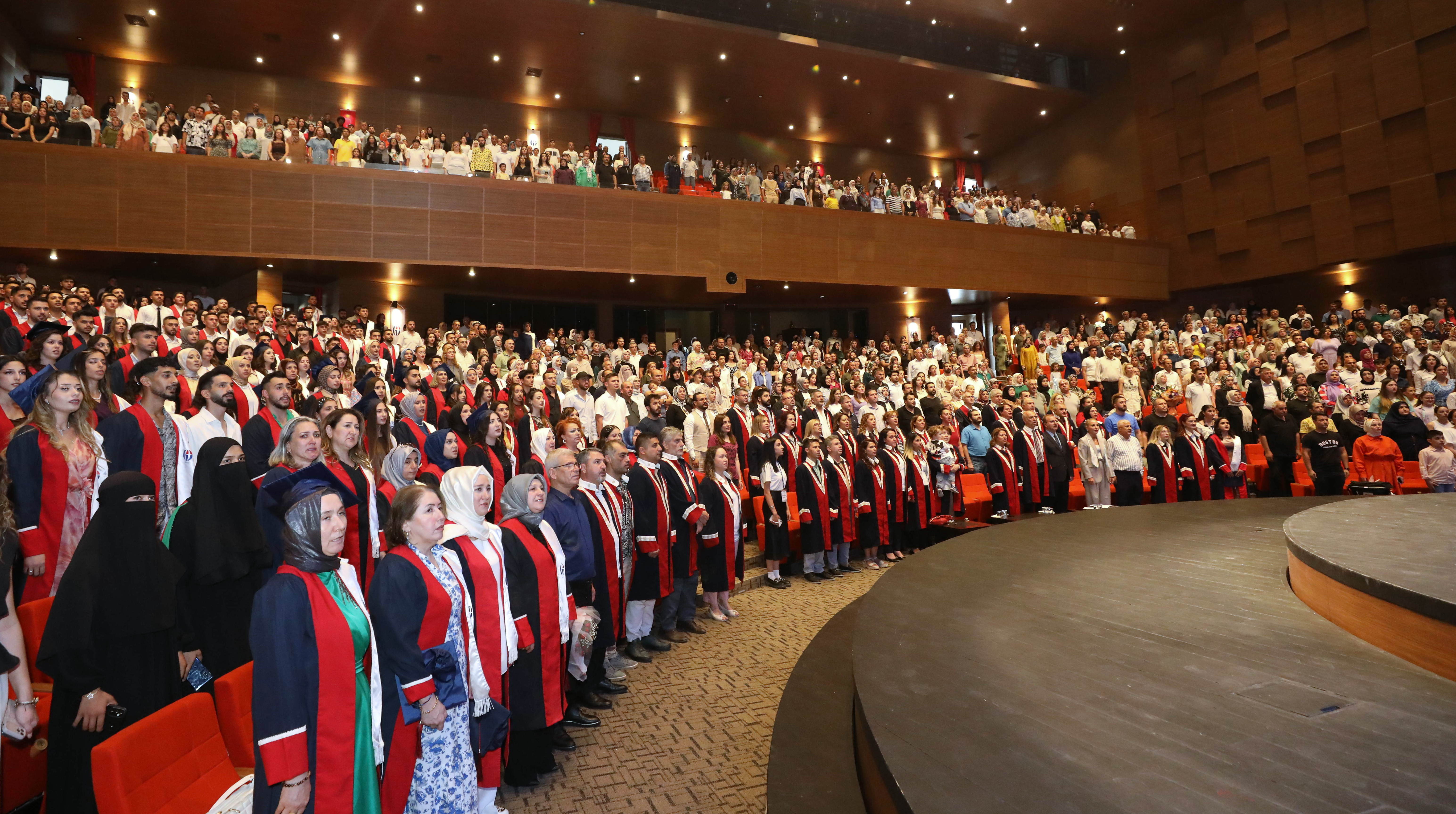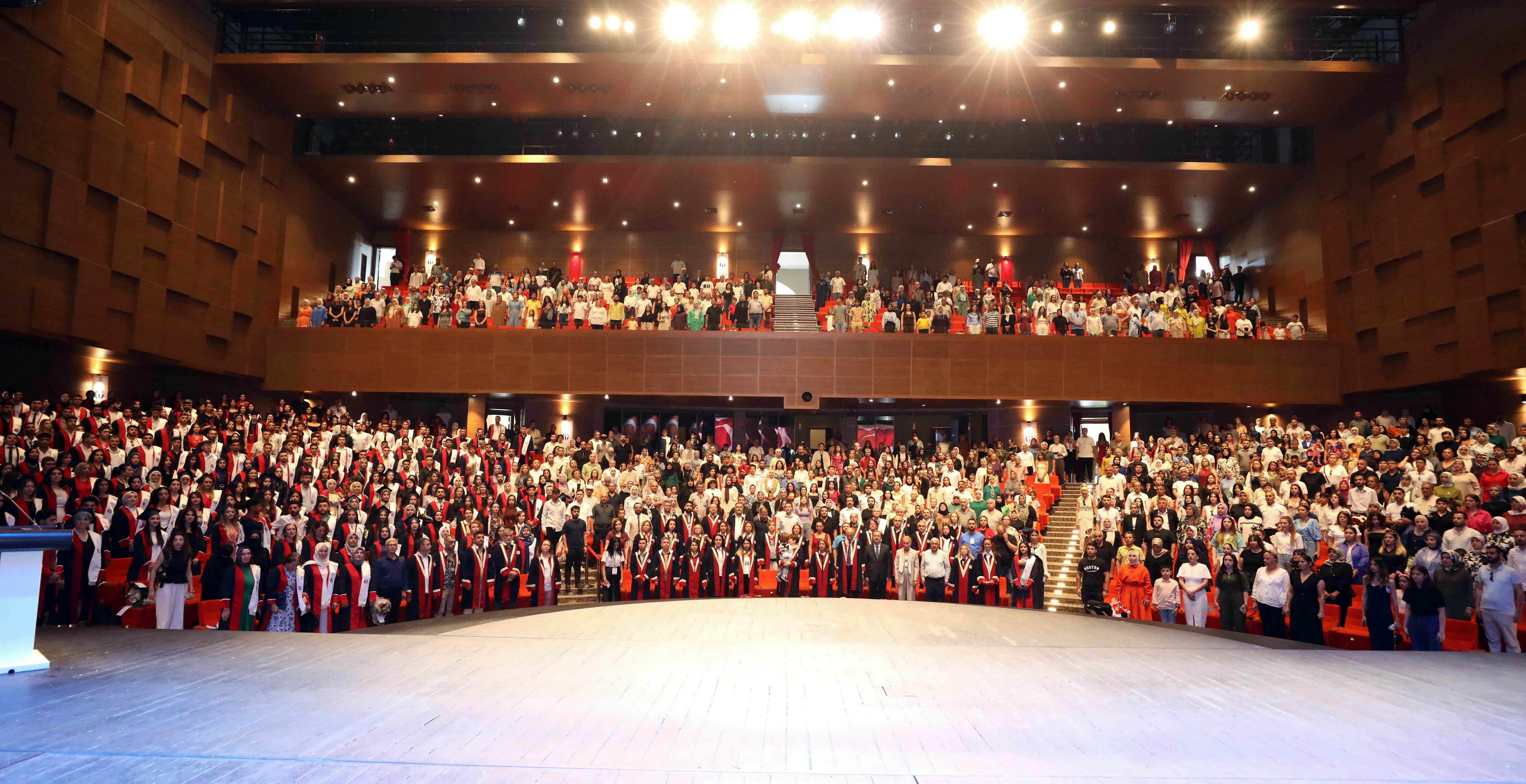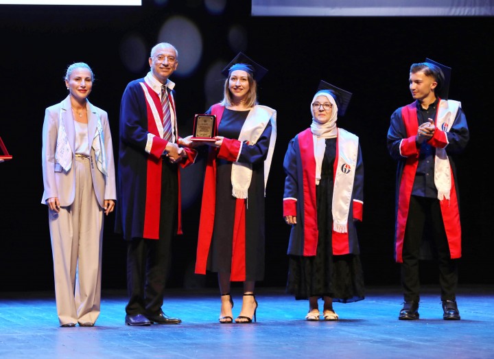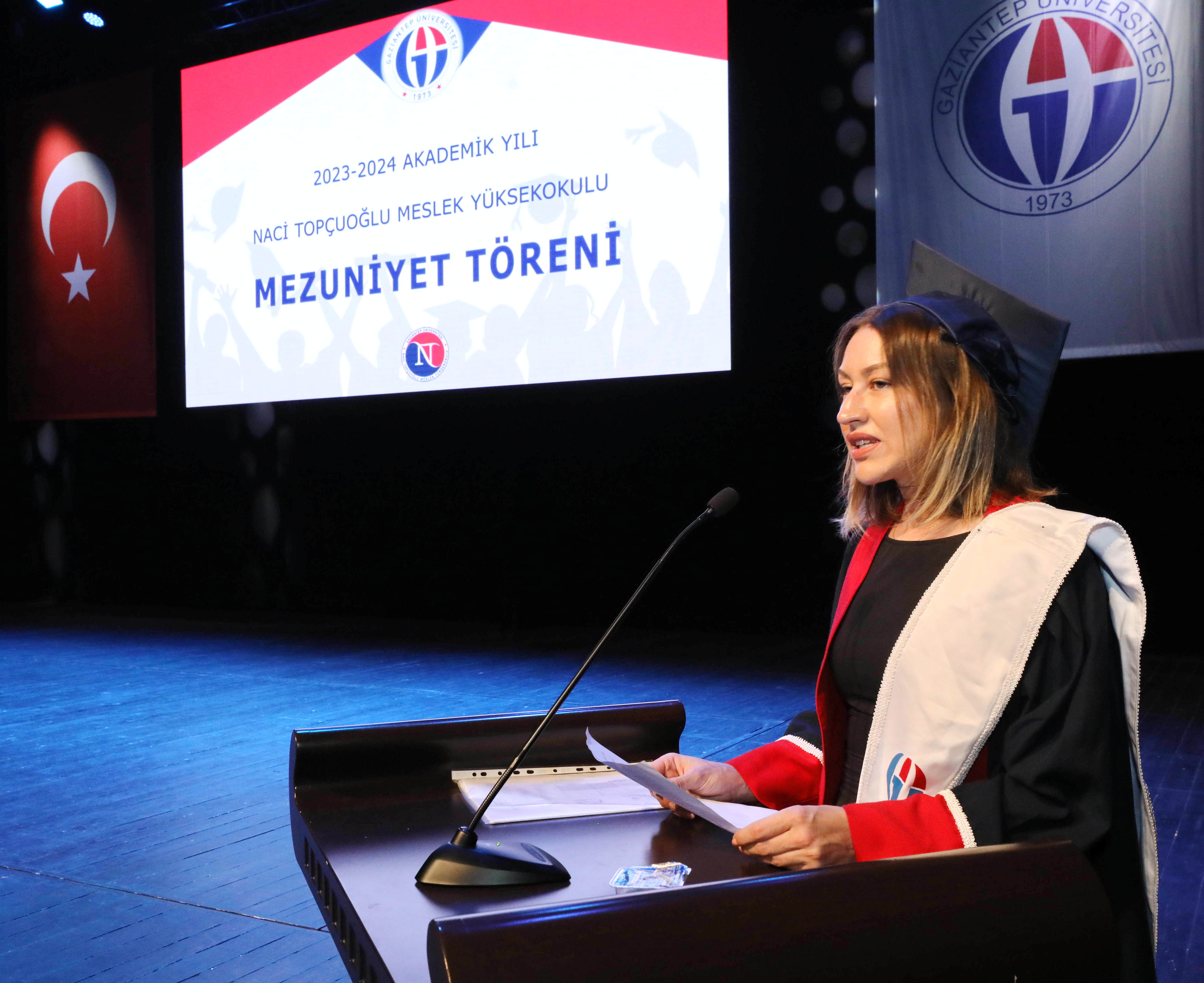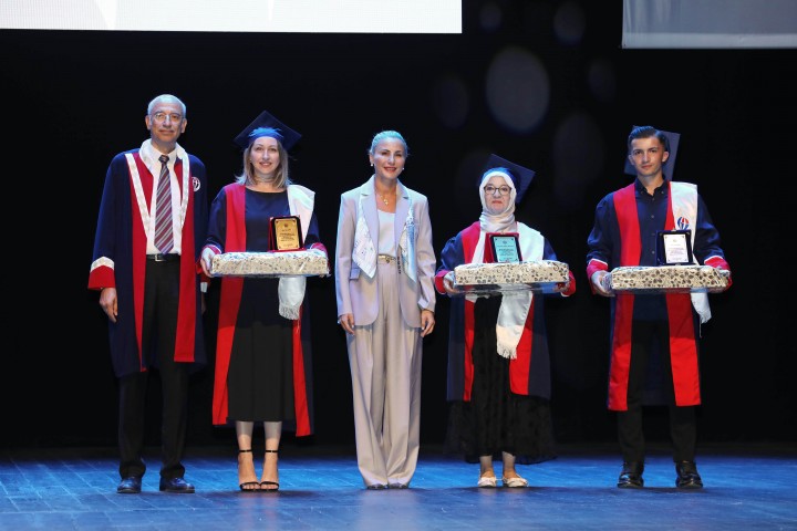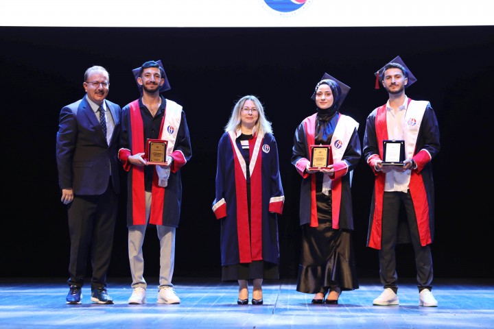 Mezun öğrenciler adına konuşan Naci Topçuoğlu Meslek Yüksekokulu dönem Birincisi Tuba Çopur ise eğitim sürecinde desteklerinden dolayı ailesine, eğitmenlerine ve arkadaşlarına teşekkür etti.