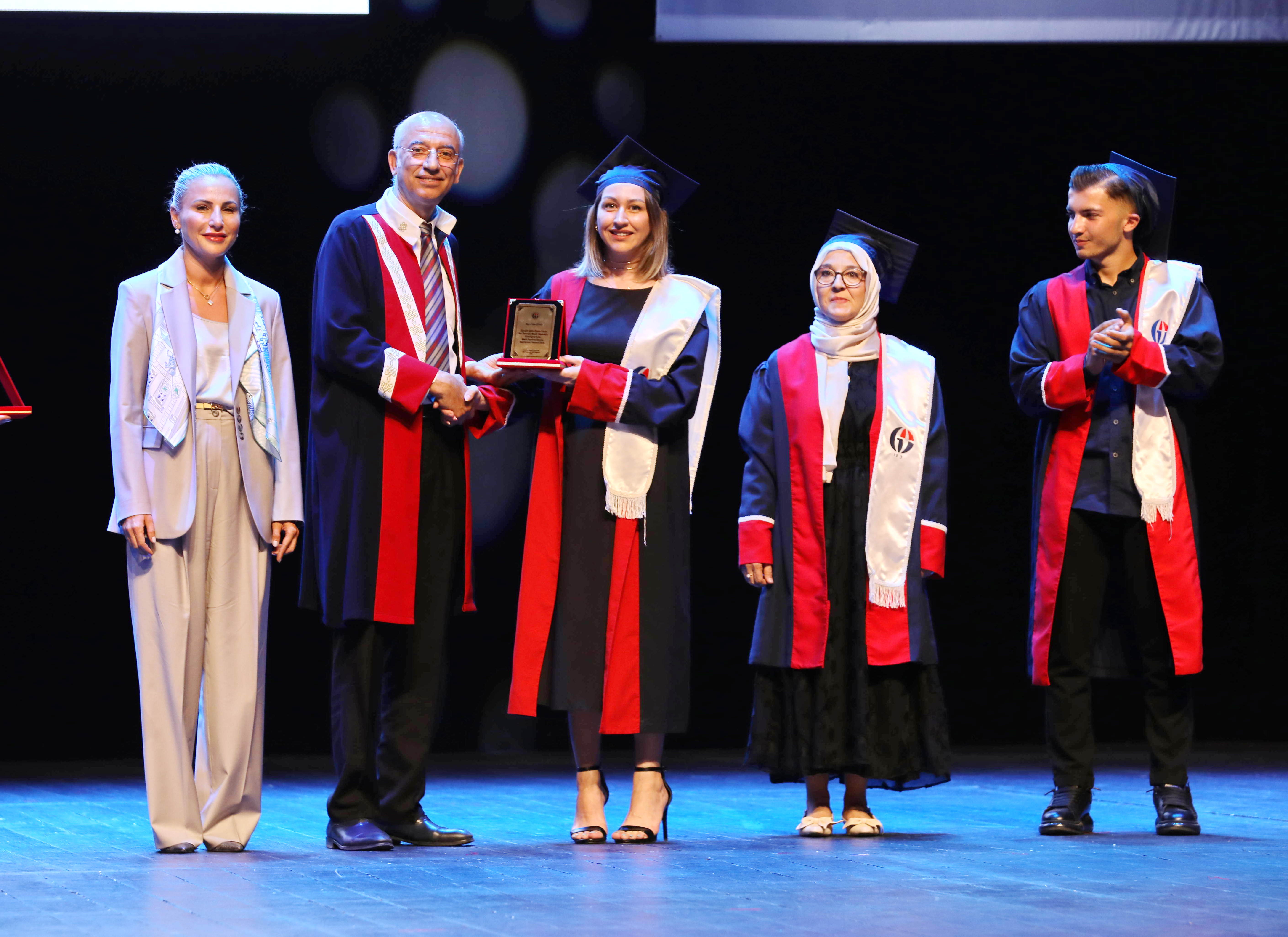 Açılış konuşmaları sonrasında dereceye giren ve mezun olan öğrencilere sektör temsilcilerinin hediye takdimi ve mezuniyet belgelerinin verilmesinin ardından öğrencilerin kep atmasıyla son buldu.
