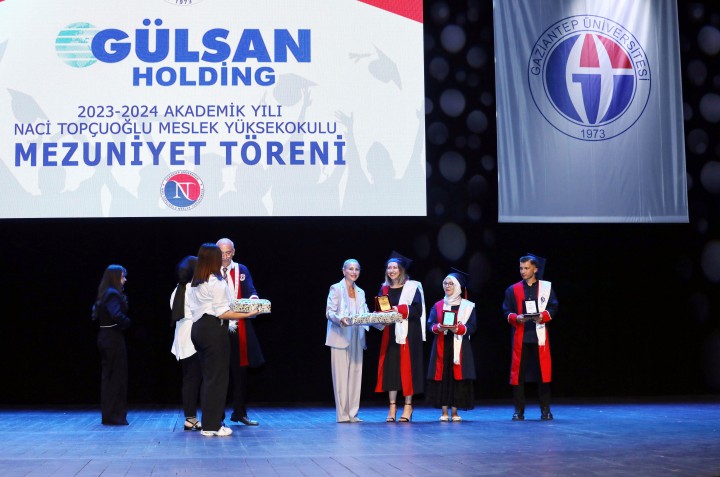 Törende, Gaziantep Üniversitesi Naci Topçuoğlu Meslek Yüksekokulunu yaptırarak gençlerin eğitimine destekte bulunan hayırsever iş insanı merhum Naci Topçuoğlu ailesi adına yer alan Gülsan Holding Yönetim Kurulu Başkanı Burcu Topçuoğlu ise başarıya ulaşmak için gerekli nitelikleri vurguladı ve mezun öğrencilere iş hayatında ve yaşamda başarılar diledi. Topçuoğlu, mezunların öğrendikleri bilgi ve becerilerle hem kişisel hem de profesyonel yaşamlarında büyük başarılara imza atacaklarına olan inancını dile getirdi.
