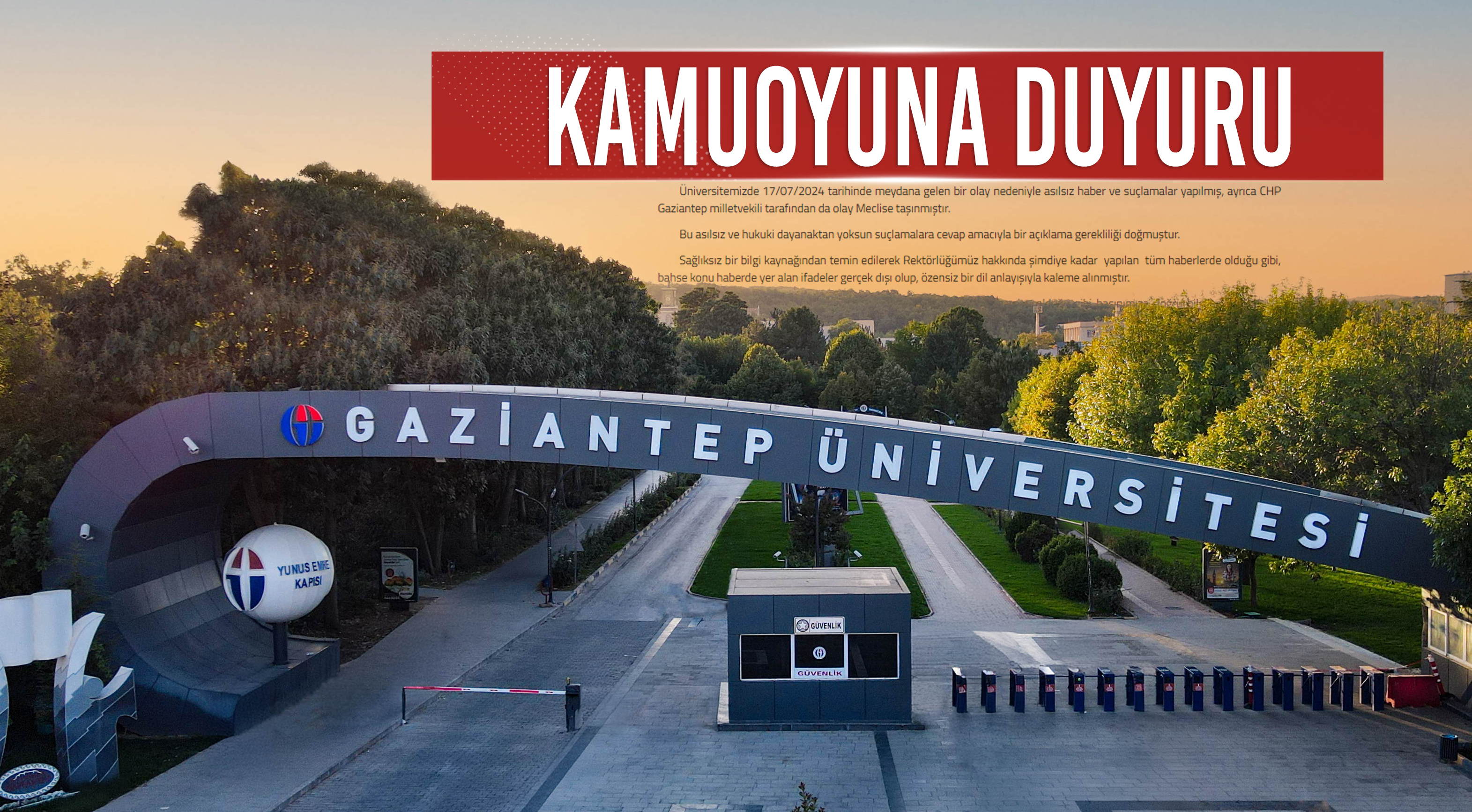 Üniversitemizde 17/07/2024 tarihinde meydana gelen bir olay nedeniyle asılsız haber ve suçlamalar yapılmış, ayrıca CHP Gaziantep milletvekili tarafından da olay Meclise taşınmıştır. Bu asılsız ve hukuki dayanaktan yoksun suçlamalara cevap amacıyla bir açıklama gerekliliği doğmuştur. Sağlıksız bir bilgi kaynağından temin edilerek Rektörlüğümüz hakkında şimdiye kadar yapılan tüm haberlerde olduğu gibi, bahse konu haberde yer alan ifadeler gerçek dışı olup, özensiz…