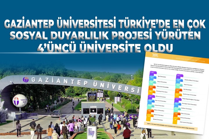 Yükseköğretim Kurulu (YÖK) tarafından yayımlanan “2024 Üniversite İzleme ve Değerlendirme Genel Raporu”na göre Gaziantep Üniversitesi (GAÜN), gerçekleştirdiği sosyal duyarlılık projeleri ile Türkiye genelindeki üniversiteler arasında 4’üncü sıraya yerleşti. Raporda, GAÜN’ün 287 sosyal duyarlılık projesi yürüttüğü belirtiliyor.