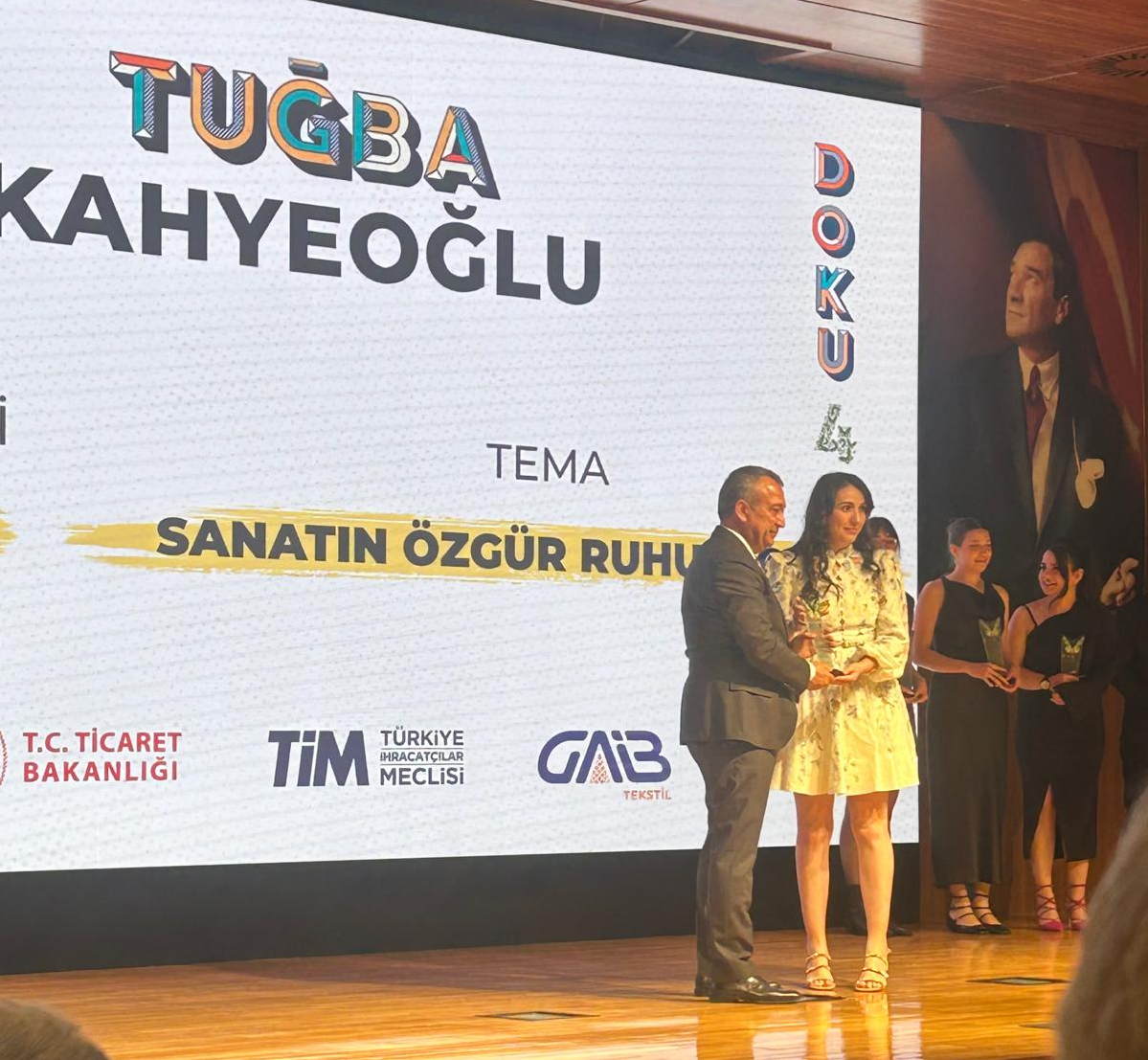 Gaziantep Üniversitesi (GAÜN) Güzel Sanatlar Fakültesi Tekstil ve Moda Tasarımı mezunu Tuğba Kahyeoğlu, 2024 Doku Kumaş Tasarım Yarışması’nda Baskı Kumaş kategorisinde ikincilik ödülü kazandı. Bu başarısıyla 200.000 TL para ödülü ve PR ile Tanıtım Ödülü’nü almaya hak kazandı.