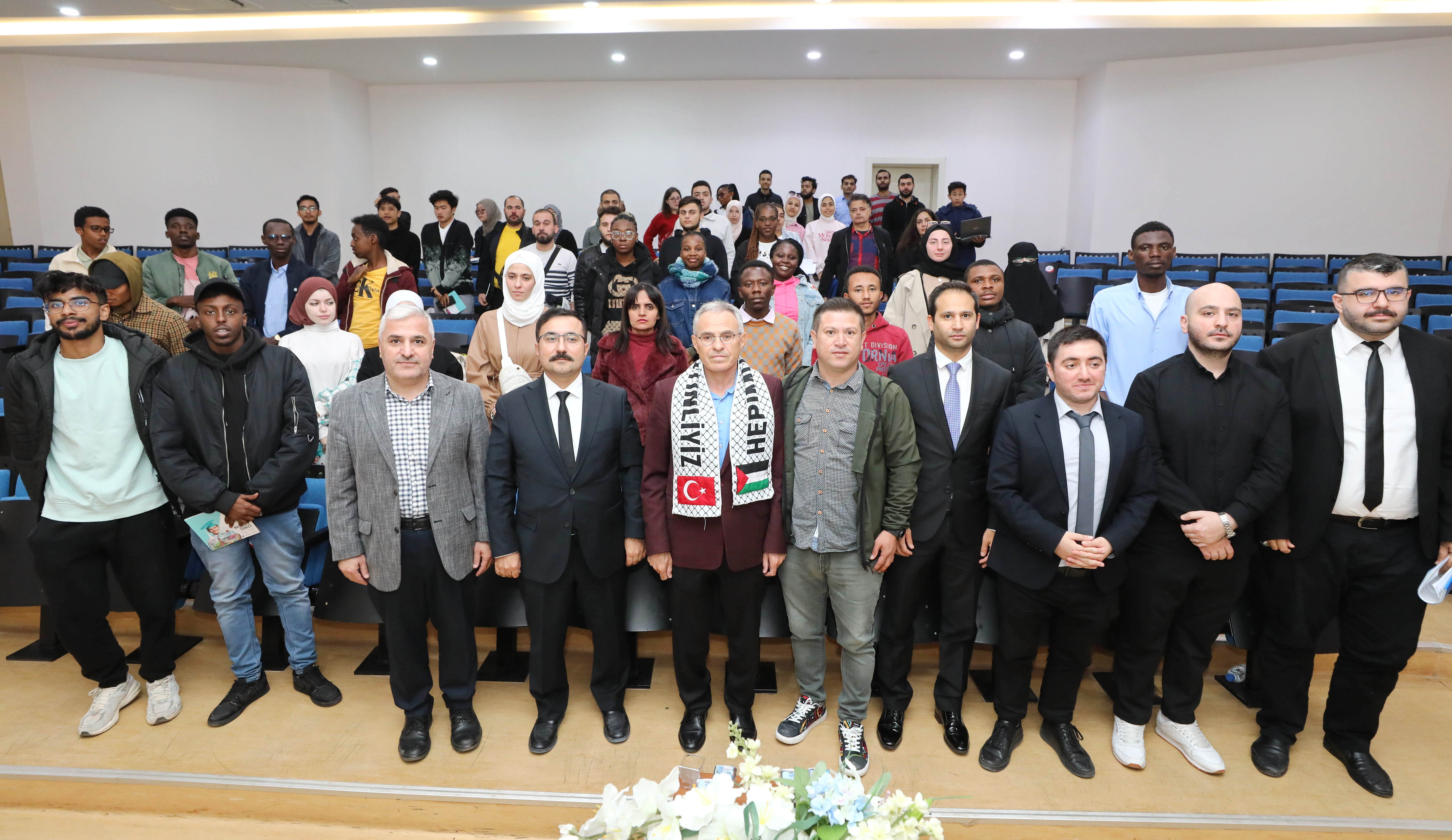 Prof. Dr. Özaydın yaptığı konuşmada Filistin meselesine değinerek, şöyle konuştu: “Medeniyetimizde insanı yaşat ki devlet yaşasın anlayışı vardır, insanı yaşatmak üzere kuruludur bu medeniyet. Şu an insanların öldürüldüğü bir dönemdeyiz ve bunu canlı izliyoruz. Filistinli öğrencilere sahip çıkmanızı istiyorum. Biz Filistinli öğrencilere sahip çıkarak onların eğitim ücretlerini almadık. Sizler de tepki verin.” dedi.