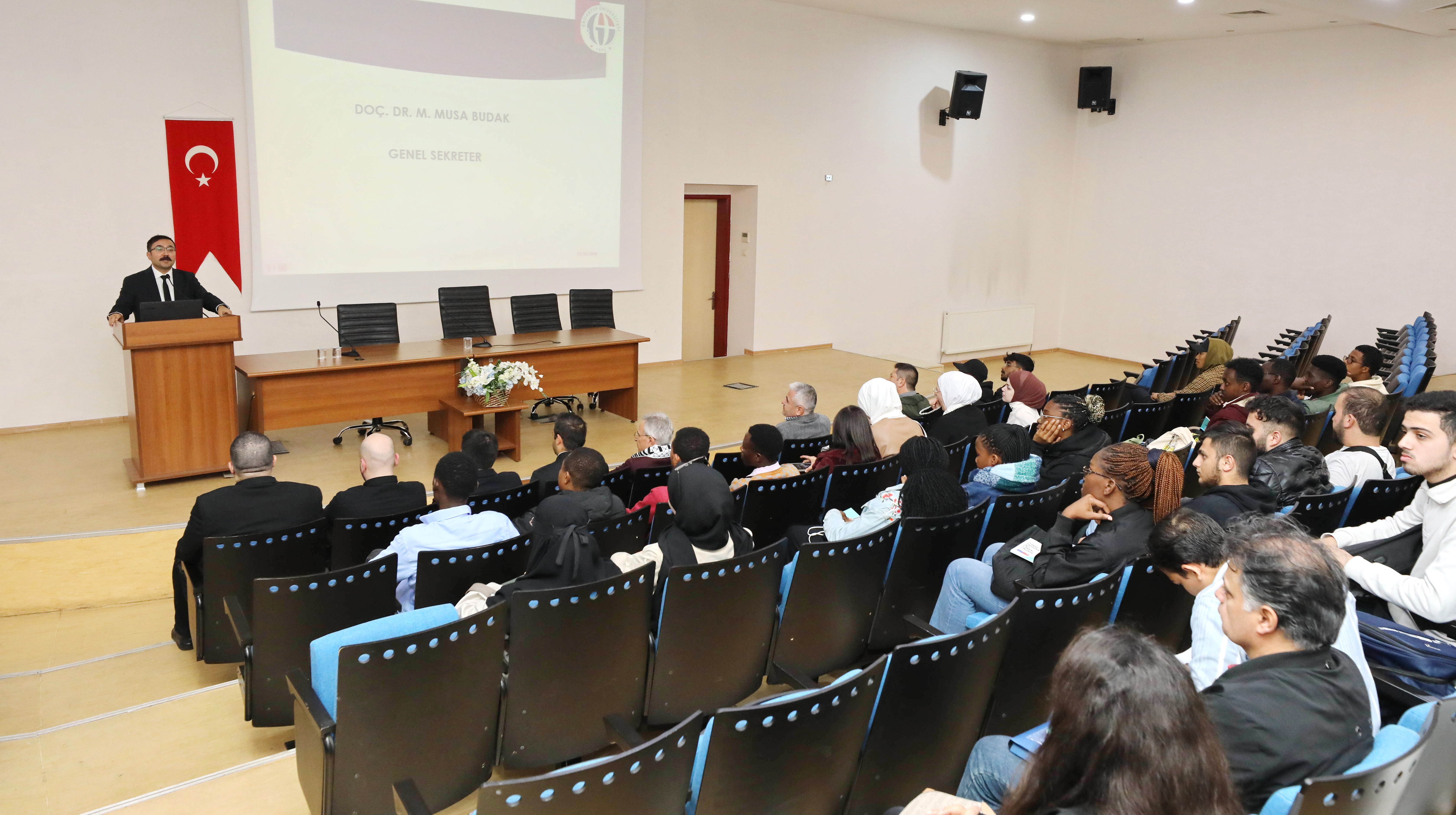 GAÜN Genel Sekreteri Doç. Dr. Muhammet Musa Budak ise konuşmasında GAÜN’ün üç dilde eğitim verdiğini belirterek, uluslararası öğrencilerin akademik başarılarının yanı sıra Türkçe öğrenmelerinin ve sosyalleşmelerinin de kritik önem taşıdığını ifade etti.