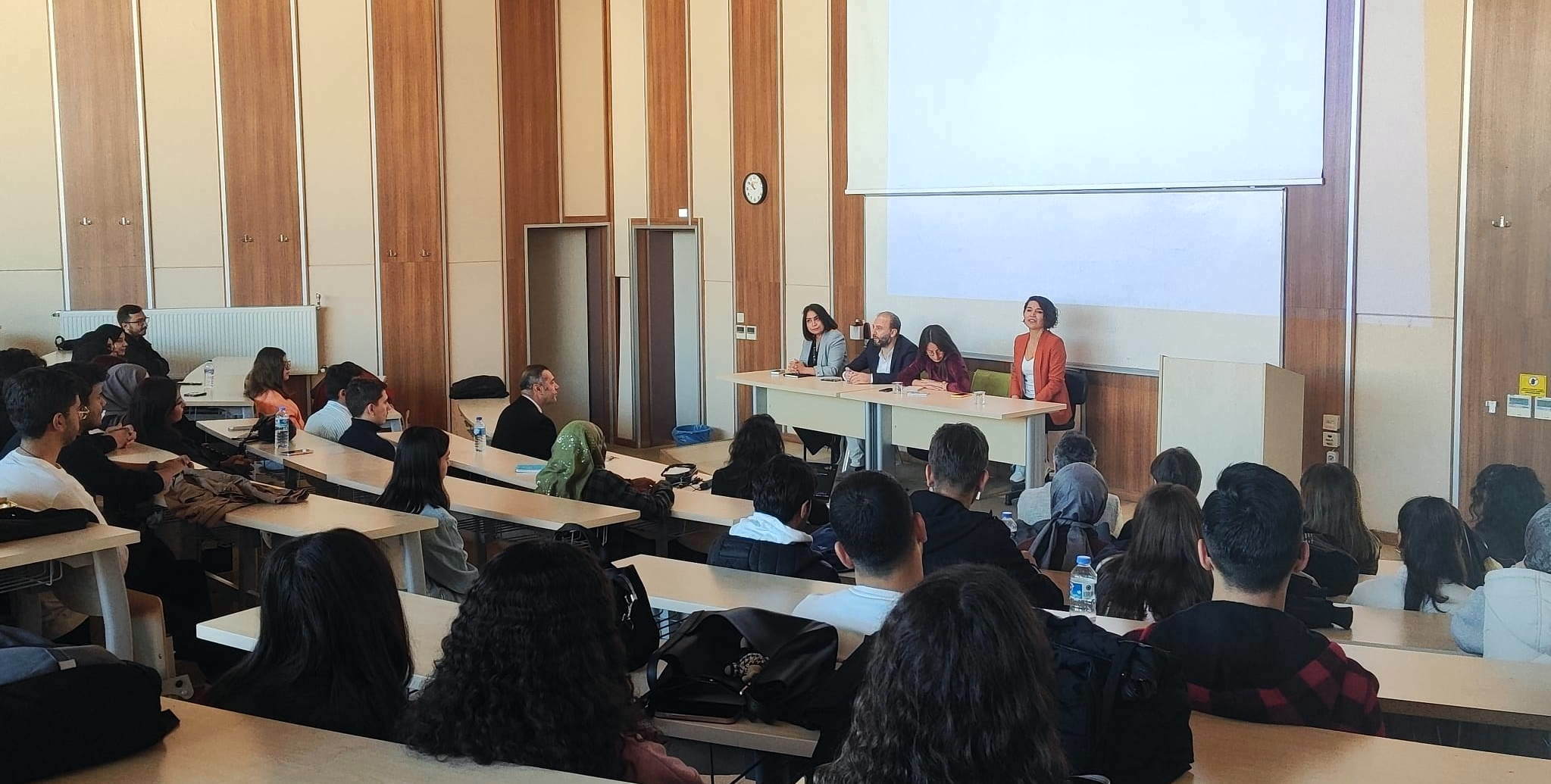 Uluslararası Ticaret ve Lojistik Bölümü öğrencilerine yönelik gerçekleştirilen farkındalık oturumuna bölüm öğretim üyeleri ve öğrencilerinin yanı sıra DHL Kargo firmasından yetkililer katıldı.