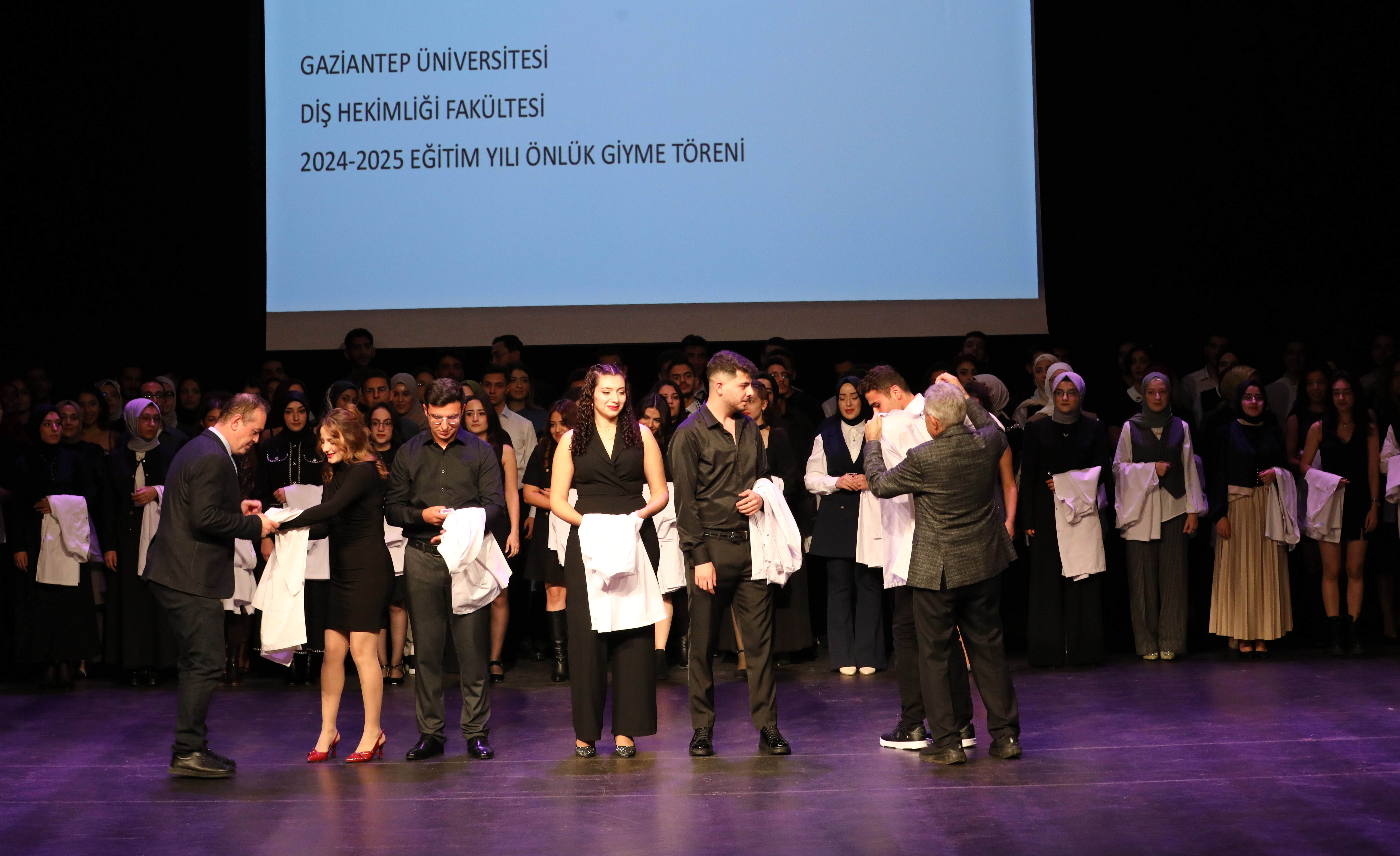 Gaziantep Üniversitesi (GAÜN) Diş Hekimliği Fakültesi öğrencileri mesleğe ilk adımlarını beyaz önlük giyerek attı. GAÜN Atatürk Kültür Sahnesi’nde gerçekleşen törende, 136 öğrenci beyaz önlüklerini giymenin gururunu yaşadı.